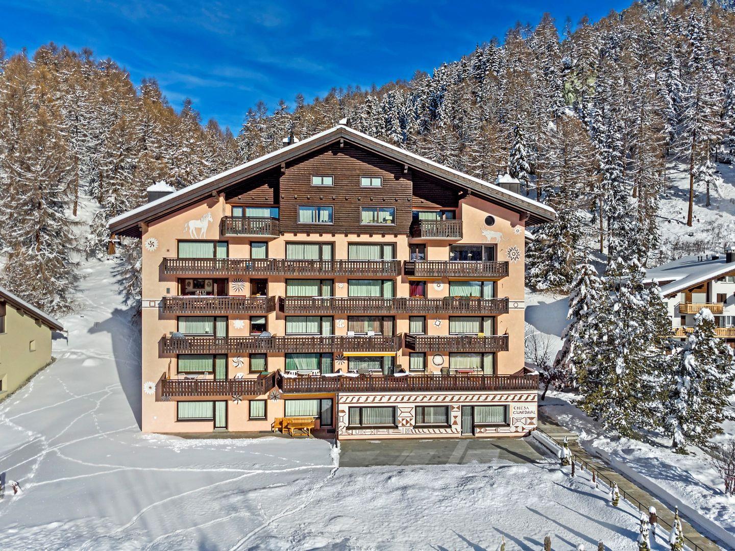 Die Chesa Guardaval befindet sich an ruhiger Lage hinter dem Skiservice Corvatsch. Der öffentliche Verkehr sowie die Skilifte sind in wenigen Schritten zu erreichen. Restaurants und Einkaufsmöglichkeiten befinden sich einen kurzen Spaziergang entfernt.