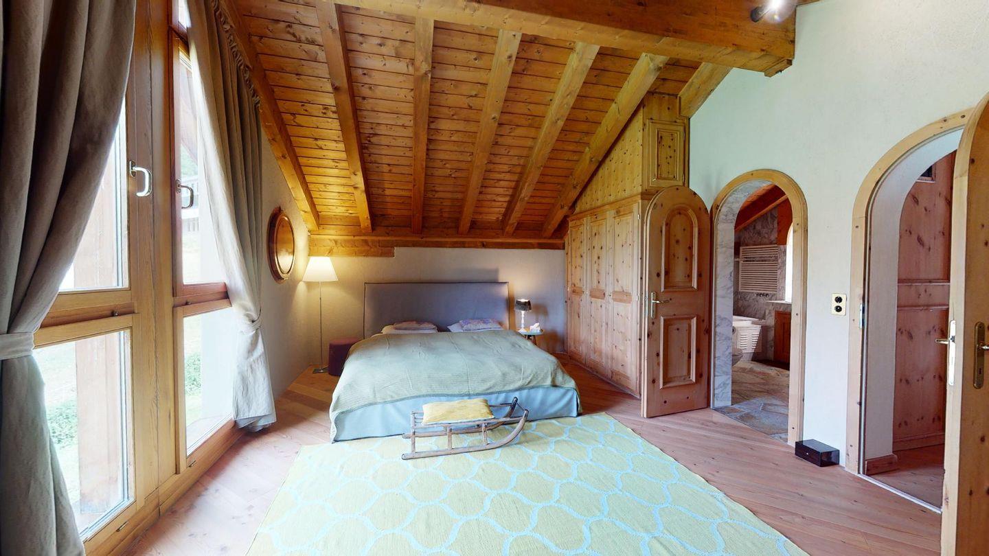 Ebenso separat zugänglich befinden sich im oberen Stockwerk weitere 2 Doppelzimmer (zweites Doppelzimmer nur via dem ersten zugänglich) mit grosszügigen Einbauschränken und einem Badezimmer mit Whirlpool-Badewanne, Doppelwaschbecken und WC/Bidet.