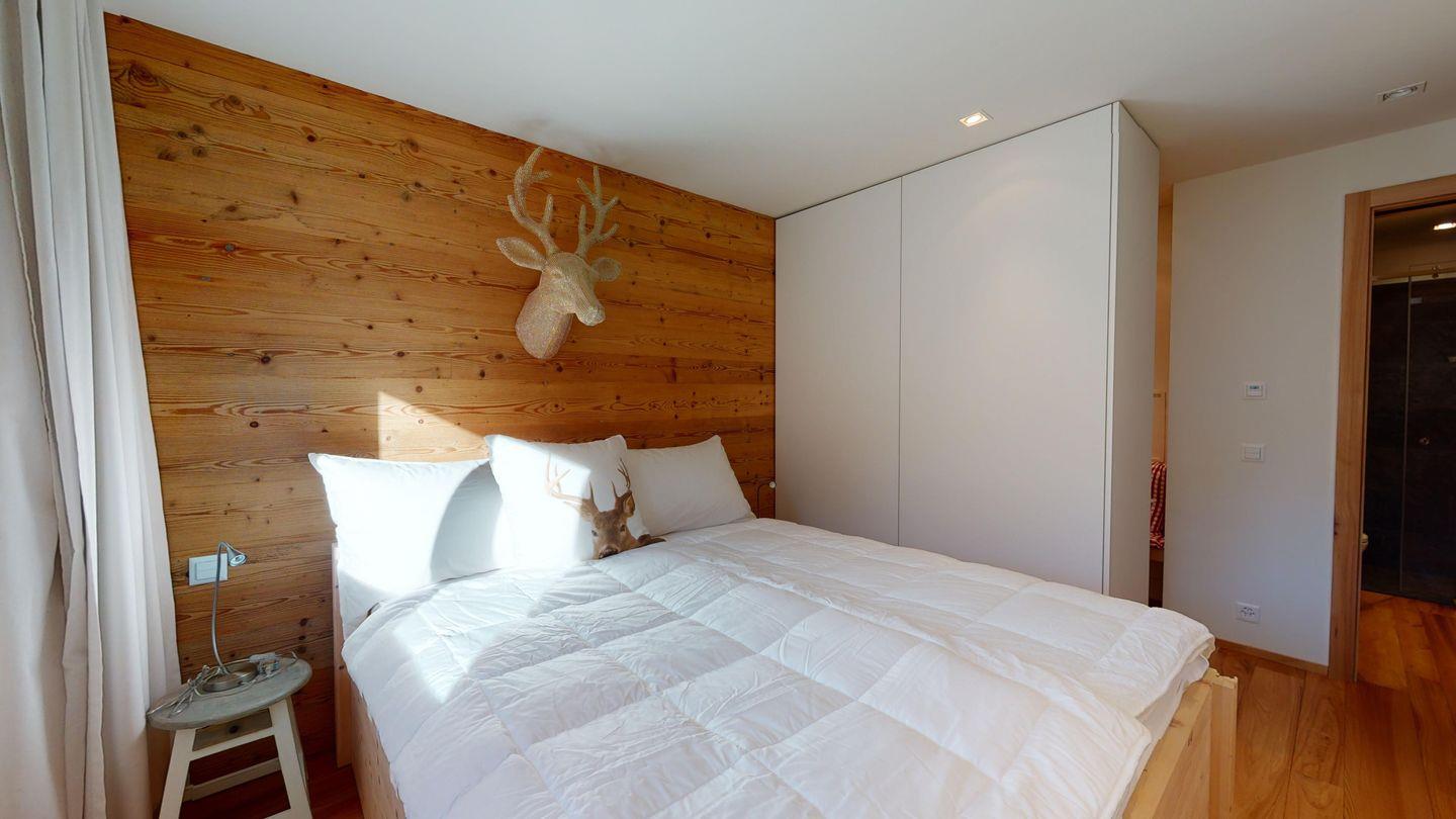 Im Wohnraum befinden sich ein grosszügiger Esstisch sowie eine gemütliche Sofa-Sitzecke mit TV (Swisscom-TV). Offenen, modern ausgestattete Küche und Zugangstür zur Terrasse mit Blick auf den Champfèrsee.