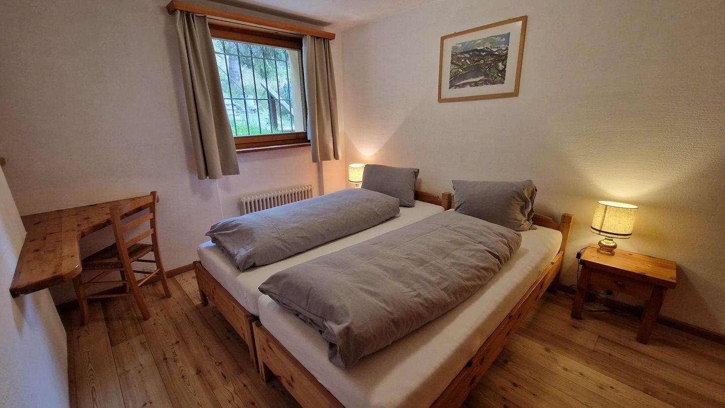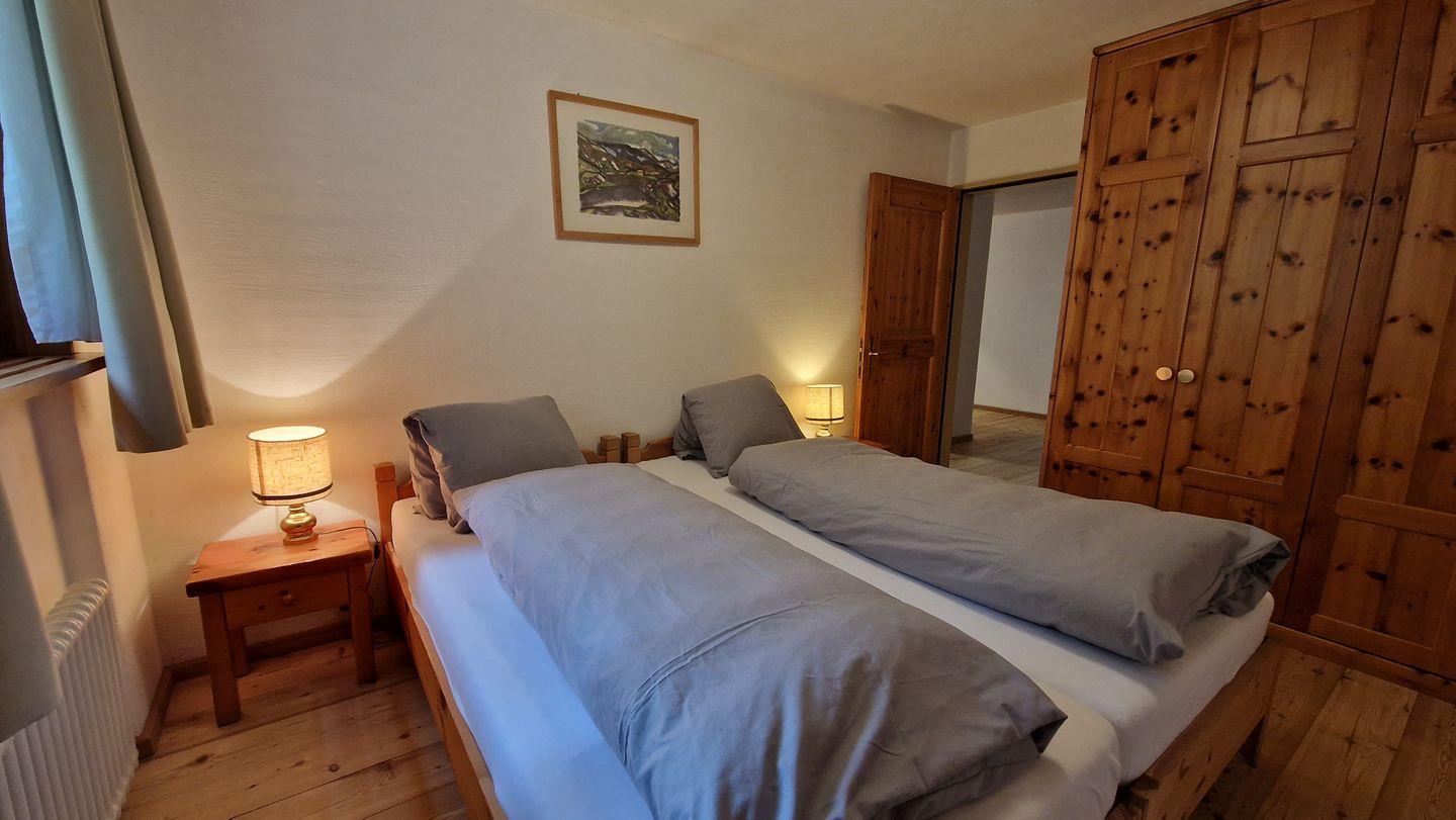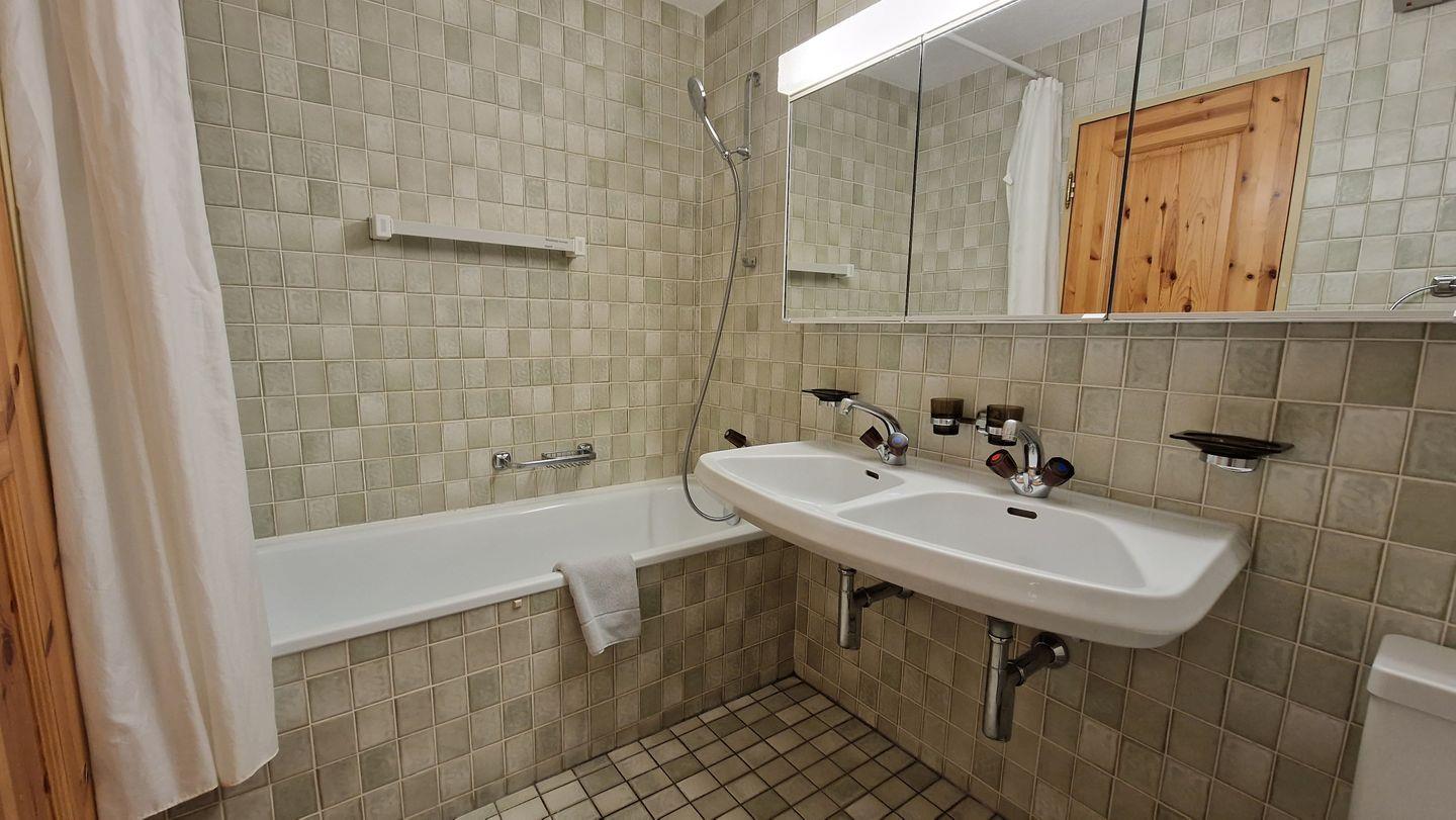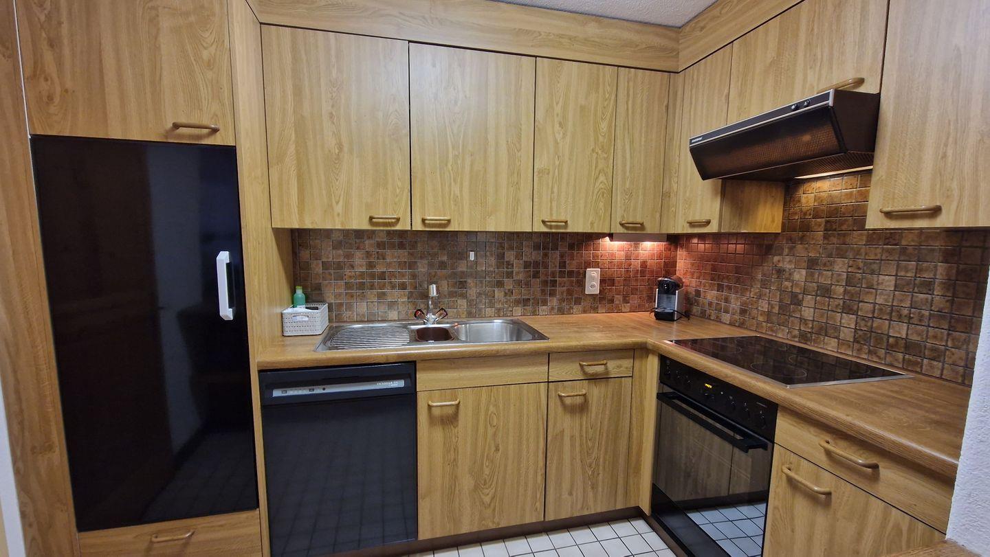2 1/2-Zimmerwohnung im Haus Chamuotsch, Parterre, 75 m2. Die nach Süden ausgerichtete Terrasse mit direktem Zugang zu Spielplatz und Grillstelle offenbart eine wunderbare Berg- und Seesicht. Die Wohnung bietet ein offenes Wohn-/Esszimmer mit zwei Schrankbetten (90x200), Cheminée und Fernseher, ein Schlafzimmer mit Doppelbett, ein Bad/WC mit Doppellavabo und eine offene Küche mit Backofen, Geschirrspüler, Nespresso-Kaffeemaschine, Toaster und Wasserkocher. Nichtraucherwohnung.