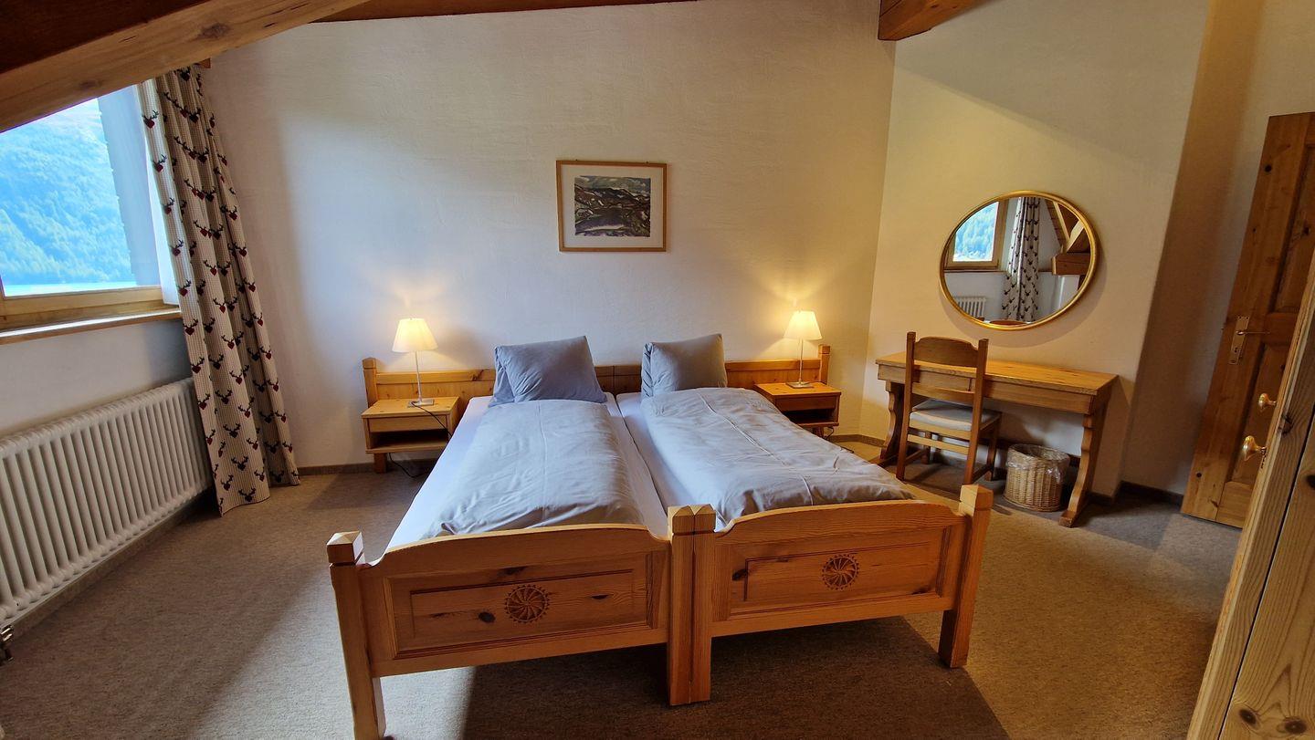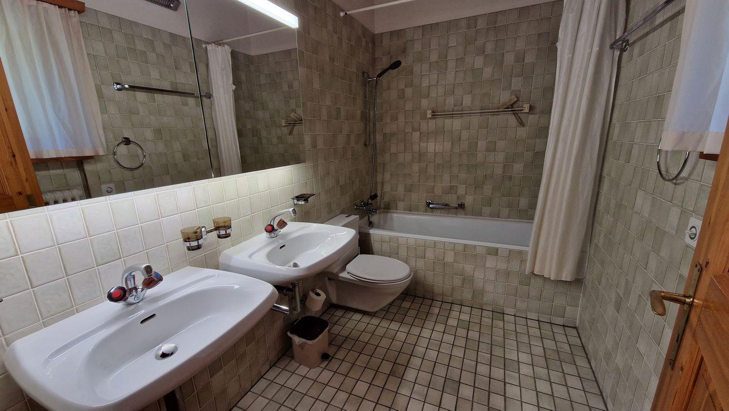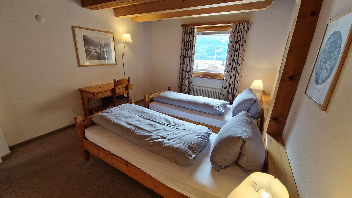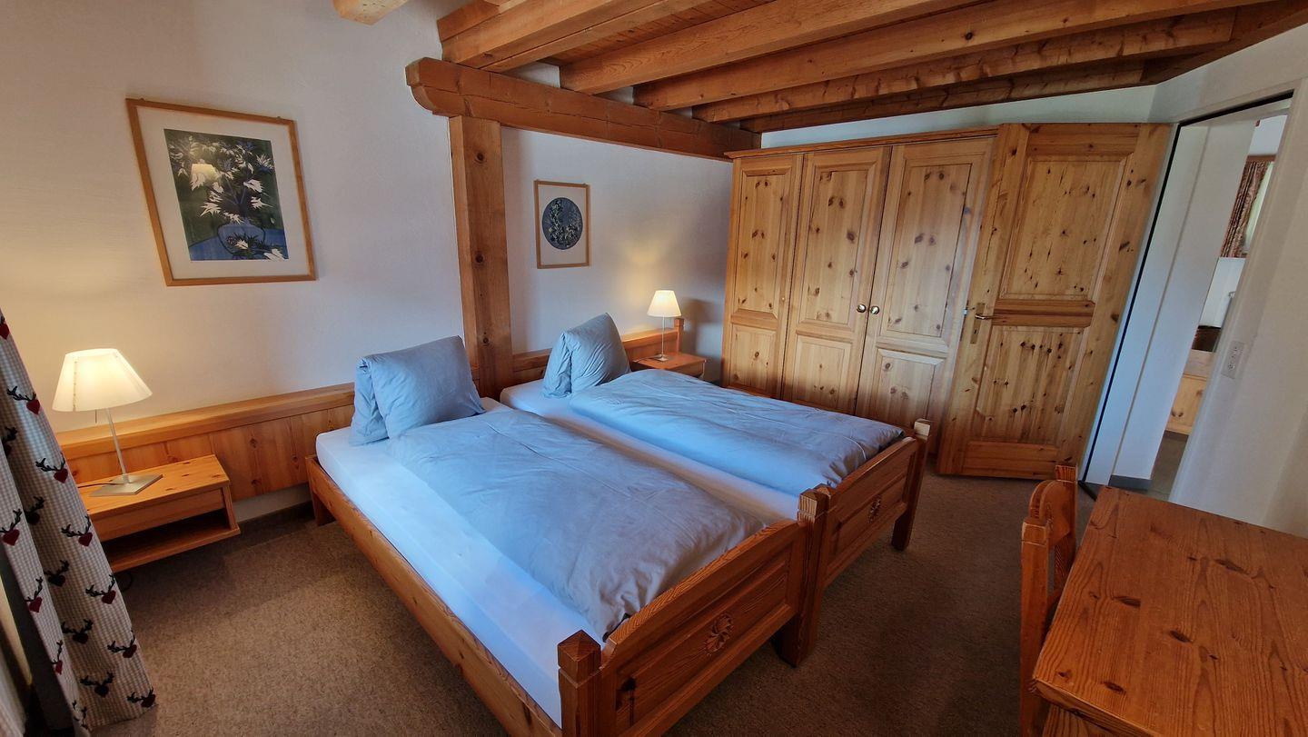 3 1/2-Zimmerwohnung im Haus Rizza, Dachgeschoss, 140 m2. Zur geräumigen Maisonettwohnung gehört ein grosses Wohn-/Esszimmer mit Cheminée, ein Schlafzimmer mit Doppelbett und eigener Dusche/WC, ein Schlafzimmer mit zwei Einzelbetten, eine Galerie mit grossem, konfortabelm Schlafsofa (180x200), ein Bad/WC mit Doppellavabo, eine Küche mit Backofen, Geschirrspüler, Nesspresso-Kapselmaschine und Wasserkocher. Der nach Süden ausgerichtete sonnige Balkon bietet eine prächtige Berg- und Seesicht. Nichtraucherwohnung.
