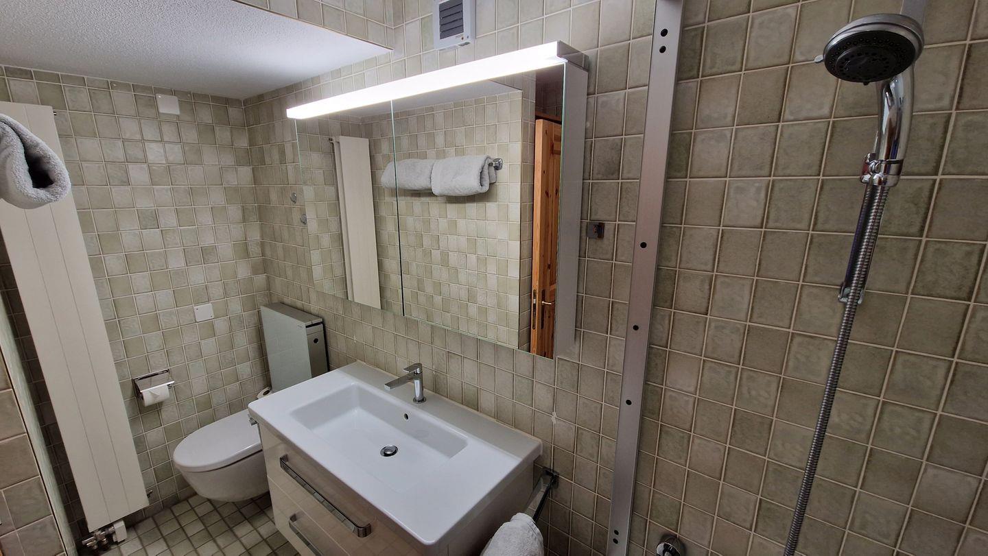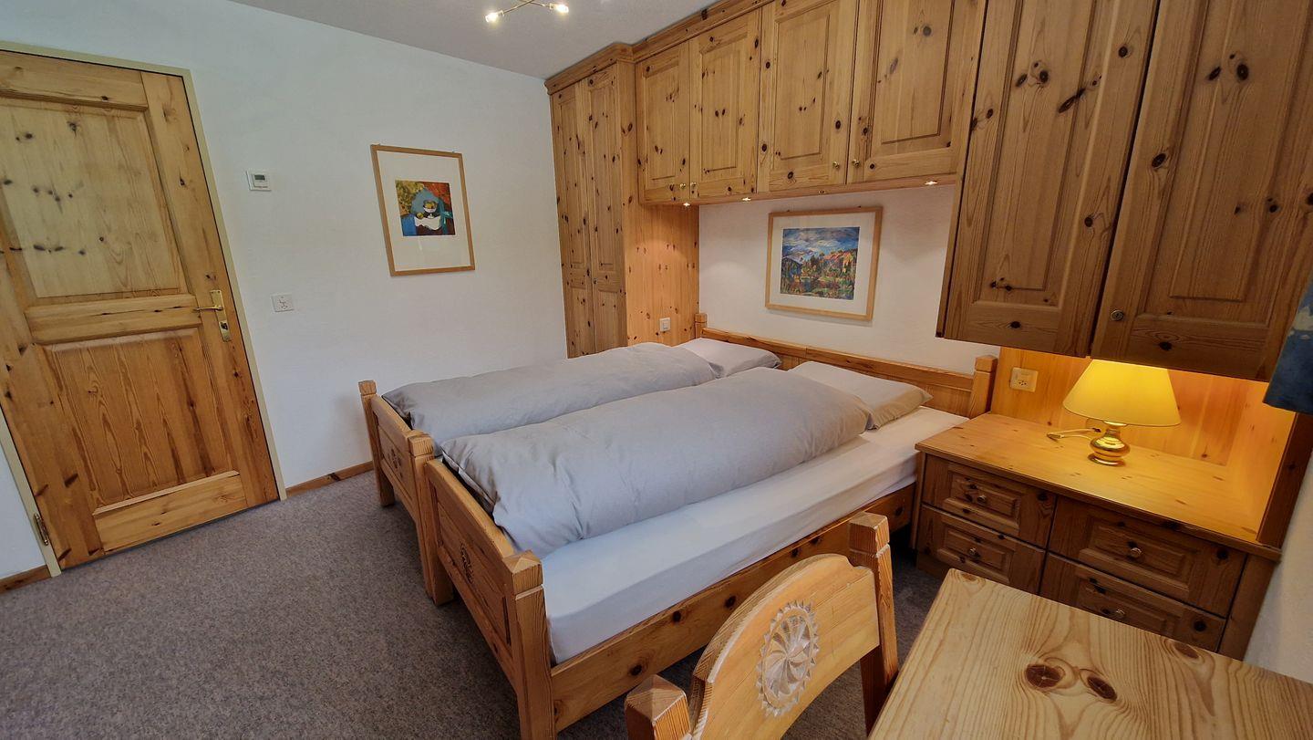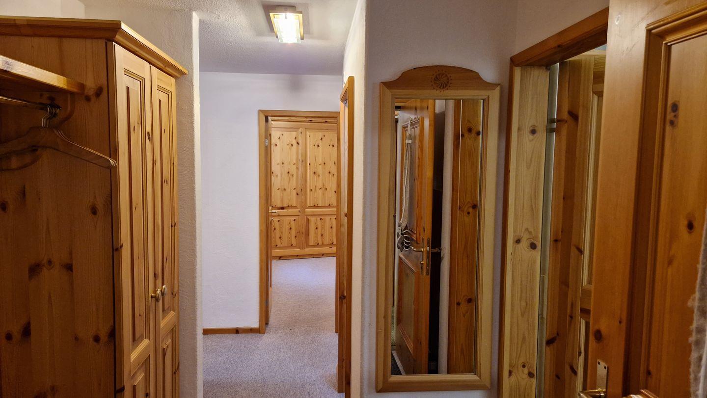 3-Zimmerwohnung im Haus la Vuolp, 2. Stock, 90 m2. Die mit Arvenmöbel ausgestattete Wohnung verfügt über ein helles Wohn-/Esszimmer mit offener Küche und Fernseher, ein Schlafzimmer mit Doppelbett und ein kleines Schlafzimmer mit Schrankbett (140x200), ein Bad/WC und ein separates WC sowie eine Küche, welche mit Backofen, Geschirrspüler, Nesspresso-Kapselmaschine und Wasserkocher ausgerüstet ist. Der gedeckte Balkon bietet einen Ausblick auf das Corvatschgebiet. Nichtraucherwohnung.