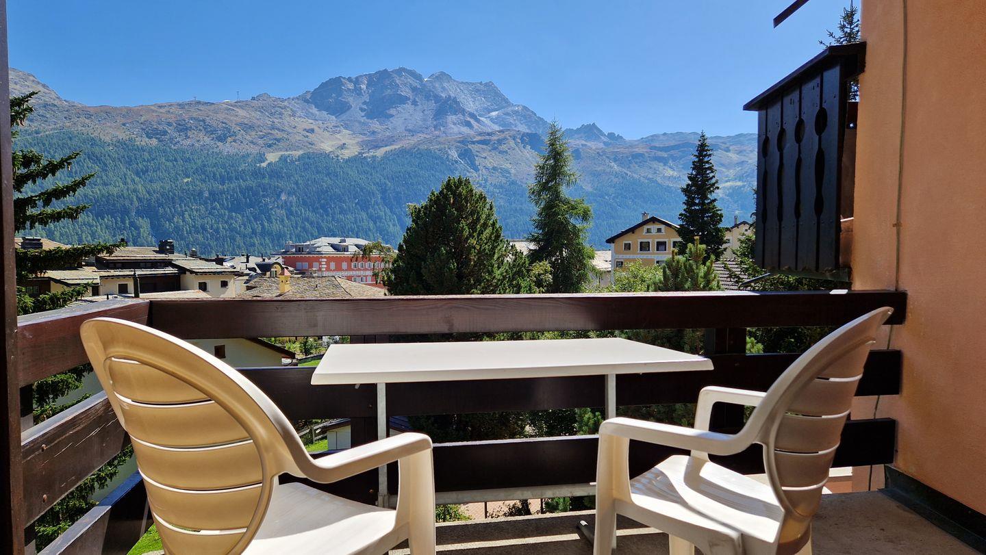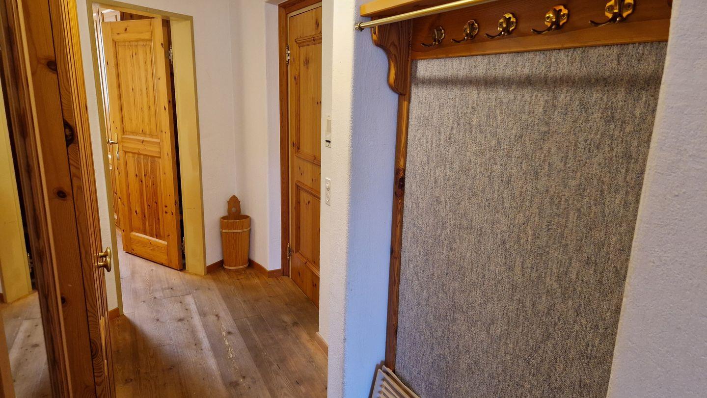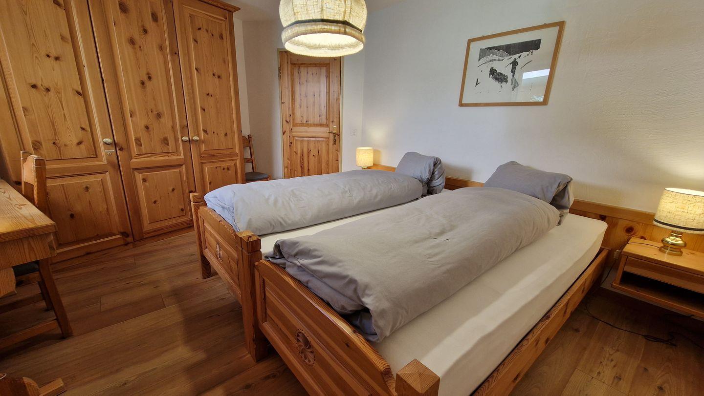 2 1/2-Zimmerwohnung im Haus la Vuolp, 2. Stock, 74 m2. Die Wohnung verfügt über ein Wohn-/Esszimmer mit zwei Schrankbetten (90x200), Fernseher und einer Leseecke, ein Schlafzimmer mit Doppelbett, ein Bad mit Regendusche und WC sowie eine Küche mit Durchreiche, Backofen, Geschirrspüler, Nesspresso-Kapselmaschine und Wasserkocher. Der gedeckte und geschützte Balkon bietet einen Ausblick in die Bergwelt.