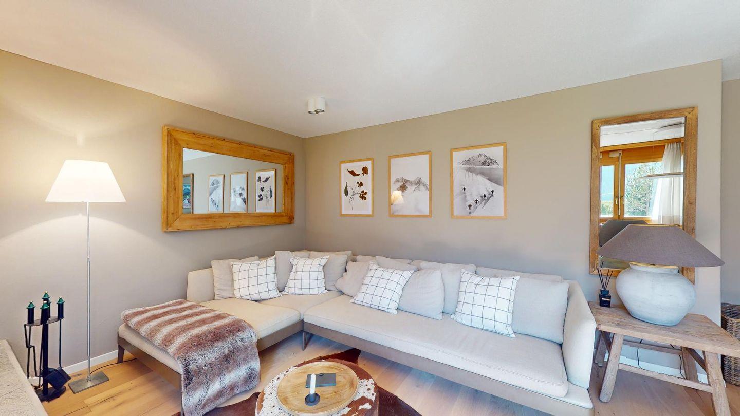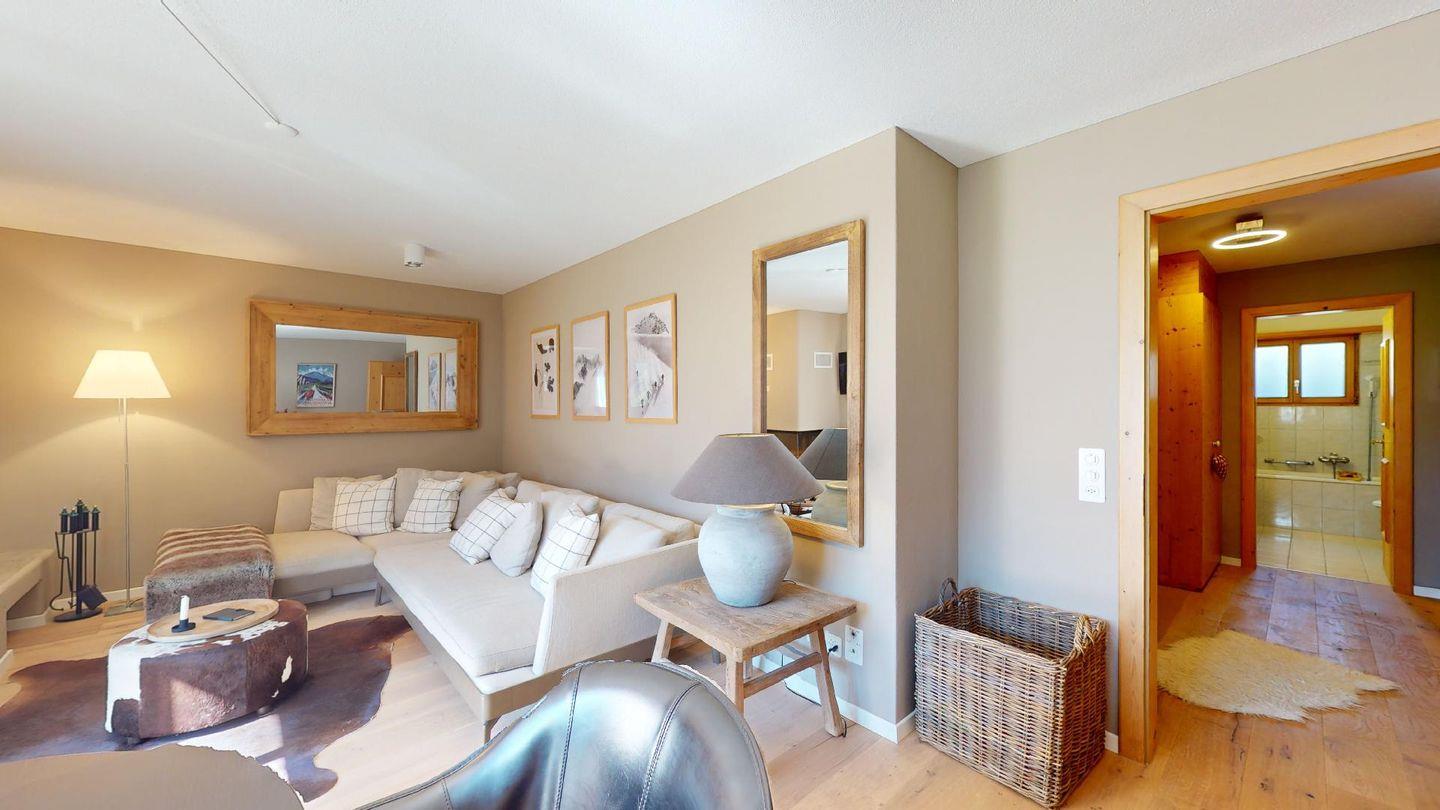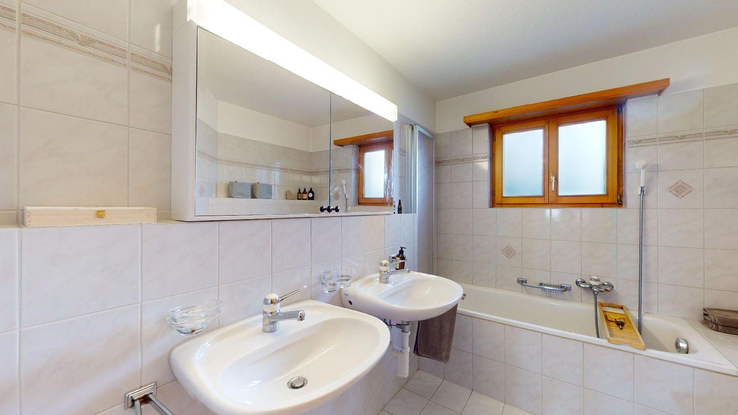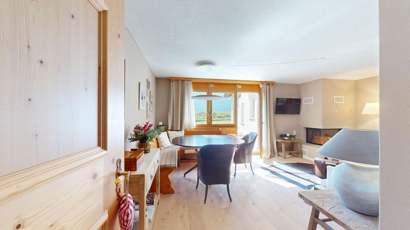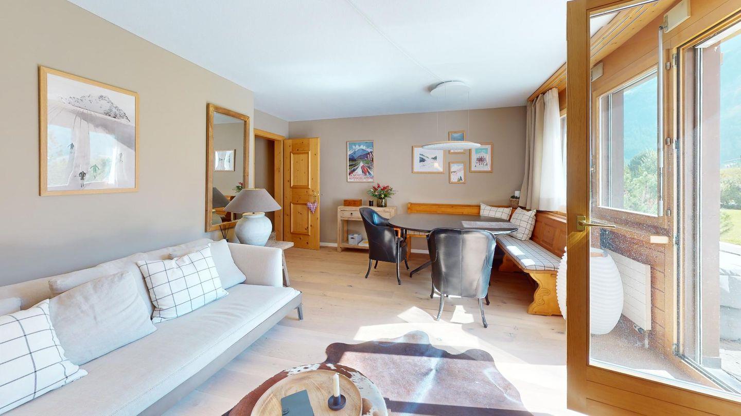 Hübsche 2½-Zimmerwohnung im Erdgeschoss, ca. 60 m², an sonniger Süd-Lage. Wohn-/ Esszimmer mit Cheminée und Ausgang zum Gartensitzplatz. TV, Internet. Geschlossene Küche mit Steinabdeckung, Geschirrspüler und Backofen. Kaffeemaschine. Doppelzimmer mit Doppelbett (180x200) und viel Stauraum. Badezimmer mit Wanne, WC und Doppellavabo. Neue, komfortable und moderne Einrichtung. Waschküche und Skiraum zur Mitbenützung. Garagenplatz. Haustiere sind nicht erlaubt.