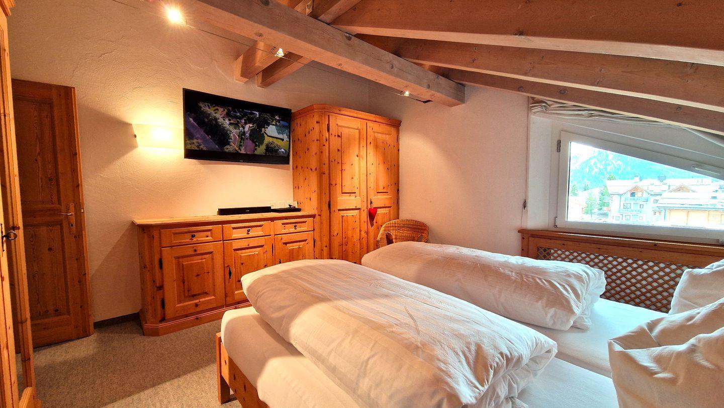5 1/2-Zimmer-Dachwohnung im Haus Leivra, 4. Stock, 150 m2. Die helle und gemütliche Wohnung ist zweistöckig angelegt. Im unteren Stock befindet sich die Küche mit Geschirrspüler, der Essbereich mit Balkon sowie ein Badezimmer mit Dusche; im oberen Stock sind die drei Schlafzimmer, das Wohnzimmer mit Fernseher und ein Badezimmer mit Badewanne. Der nach Süden ausgerichtete Balkon offenbart eine prächtigen Blick auf das Corvatschgebiet und den Silvaplanersee. Nichtraucherwohnung.