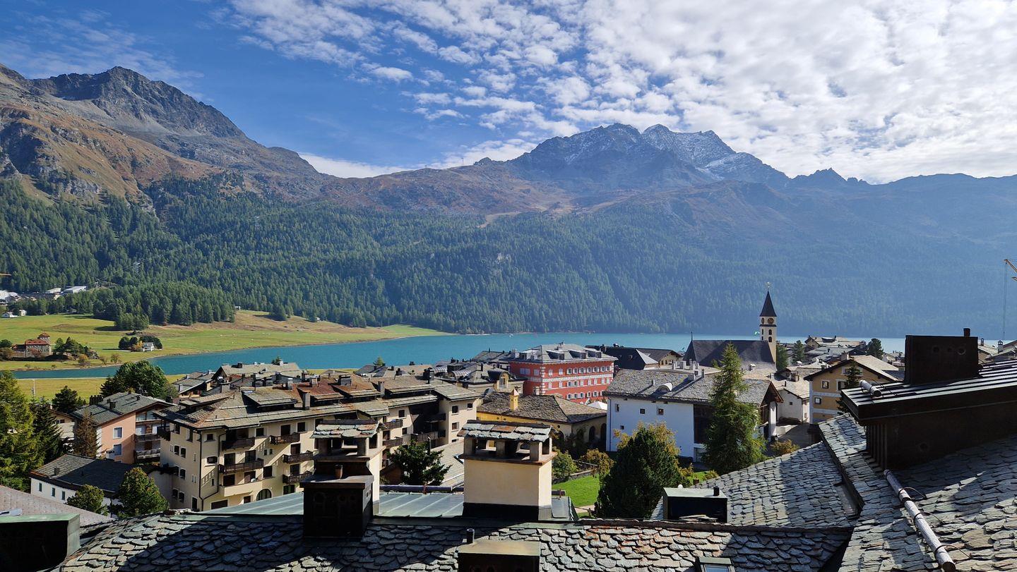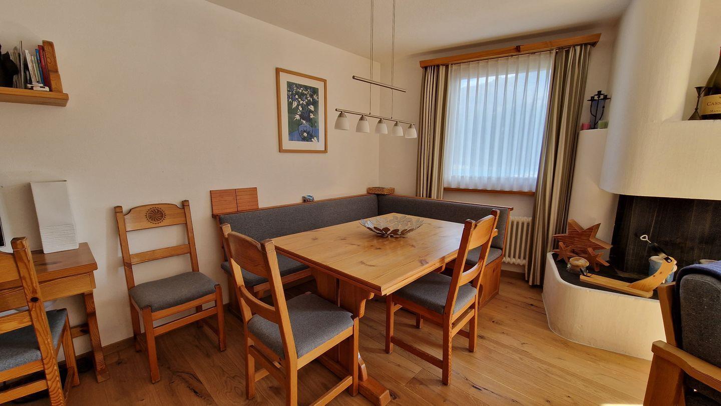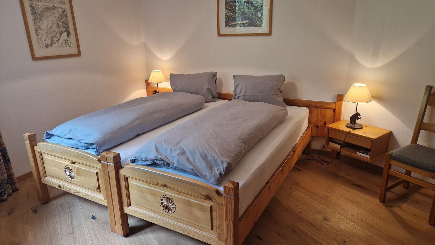 4 1/2-Zimmerwohnung im Haus Rizza, 4. Stock, 120 m2. Die Wohnung bietet ein gemütliches Wohn-/Esszimmer, ein Schlafzimmer mit Doppelbett, ein Schlafzimmer in der Dachschräge mit WC, ein Schlafzimmer mit Kajütenbett, ein Bad/WC mit Regendusche und eine offene Küche mit Backofen, Geschirrspüler, Nesspresso-Kapselmaschine, Toaster und Wasserkocher. Der nach Süden ausgerichtete Balkon offenbart eine prächtige Berg- und Seesicht. Nichtraucherwohnung.