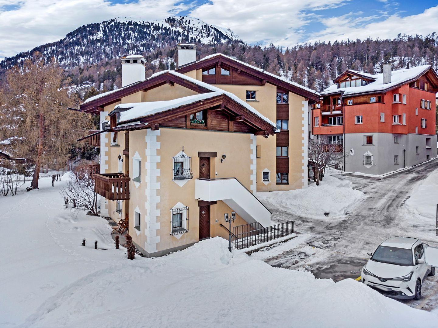 Chesa Ils Battafös (die Feuerschläger) ist im Engadinerstil gebaut und wurde im März 1987 fertiggestellt. Das Haus liegt am Rande des Dorfkerns in Richtung Sils-Maloja an ruhiger und sonniger Lage. Langlaufloipen und Wanderwege befinden sich in unmittelbarer Umgebung. Der Corvatsch, im Winter Skigebiet und im Sommer Ausgangspunkt vieler Wanderungen, befindet sich auf der rechten Seeseite im Dorfteil Surlej, ca. 700 m entfernt. Der Sportbus fährt im Winter jede halbe Stunde in alle Richtungen.
