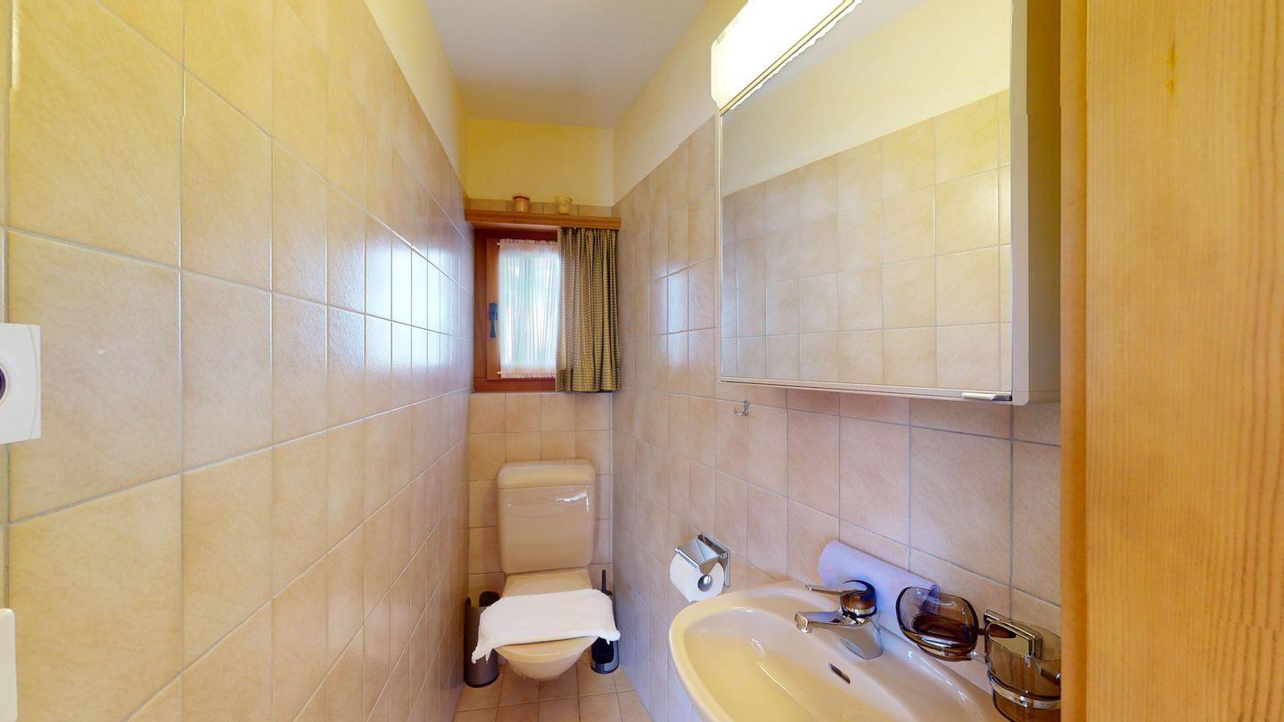 3½-Zimmerwohnung im Dachgeschoss, ca. 90 m², mit separatem Eingang. Wohn-/ Esszimmer mit Kamin und Balkon. Radio und TV. Ruhige Lage mit See- und Bergsicht. Kleine Küche mit Geschirrspüler und Backofen. Chicco d'Oro Kaffeemaschine. Doppelzimmer (2x90x195). Kinderzimmer mit 2x Einzelbetten (2x85x190). Bad/WC/Badewanne. Garagenplatz Nr. 15B. Waschküche und Skiraum zur Mitbenützung. Haustiere sind nicht erlaubt.