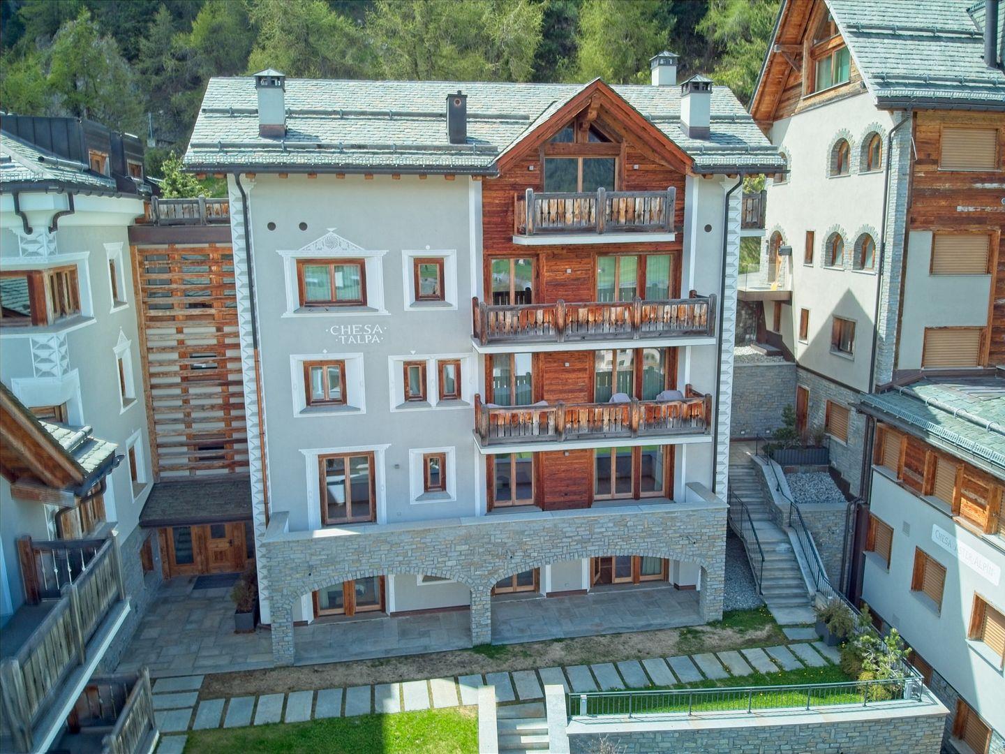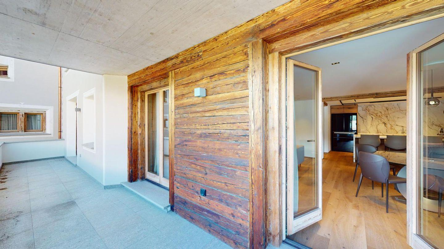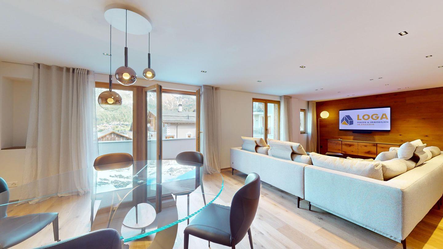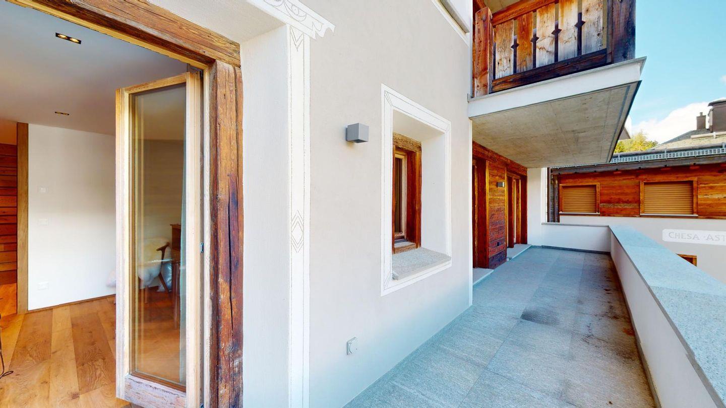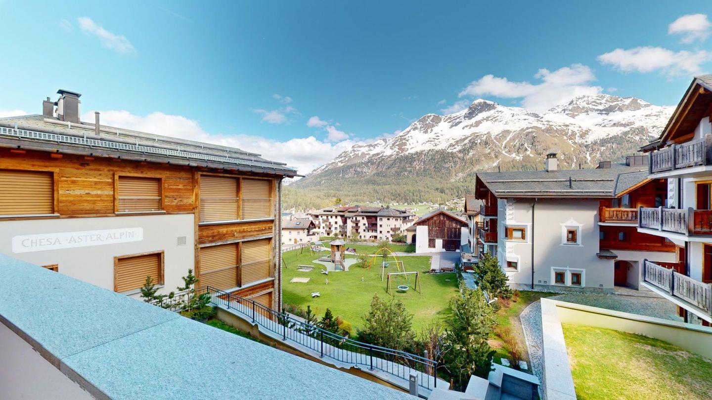 Das 2014 erbaute Mehrfamilienhaus befindet sich am Ortsausgang von Silvaplana Richtung alter Julierstrasse.