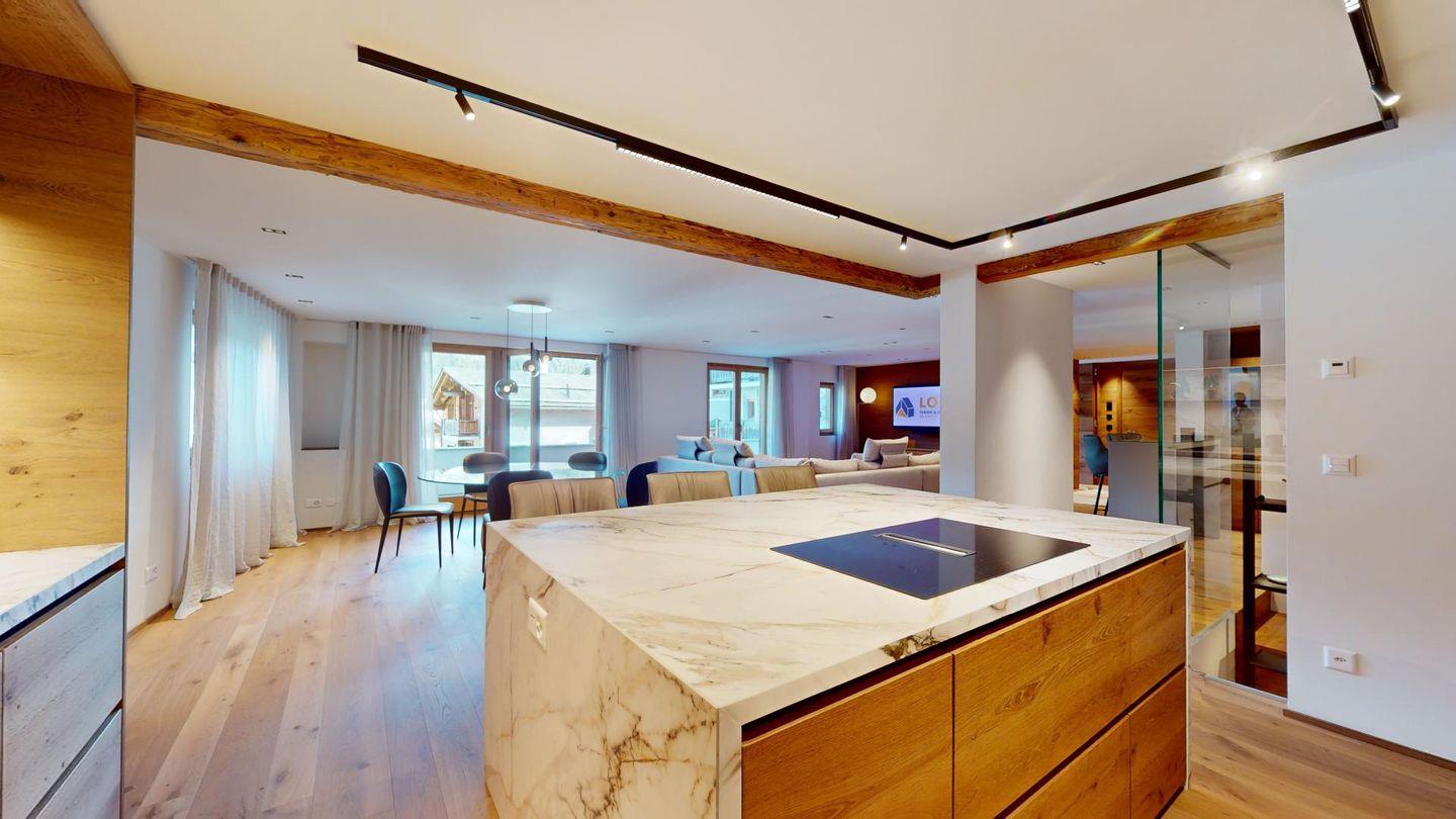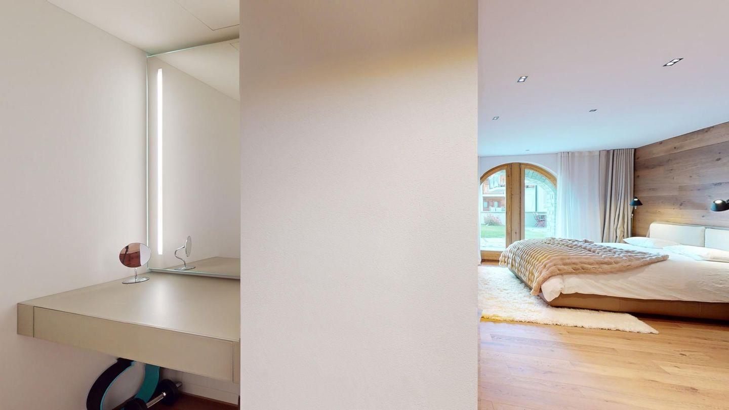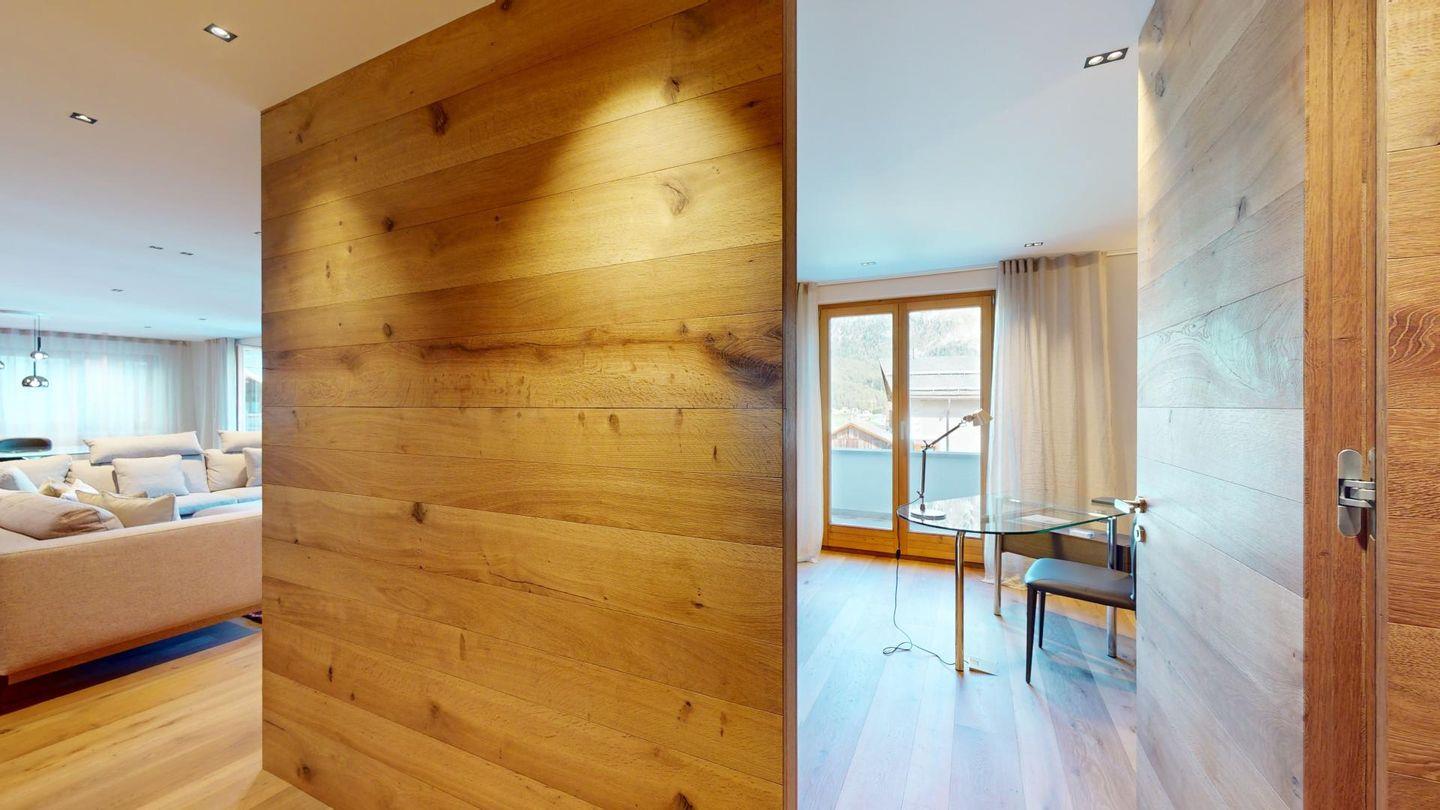 Sehr grosszügige und geschmackvoll eingerichtete 5-Zimmer-Maisonettewohnung mit grosser überdachter Terrasse im Erdgeschoss, und Balkon im 1. Obergeschoss, welche eine imposante Sicht auf die Bergwelt bieten.
