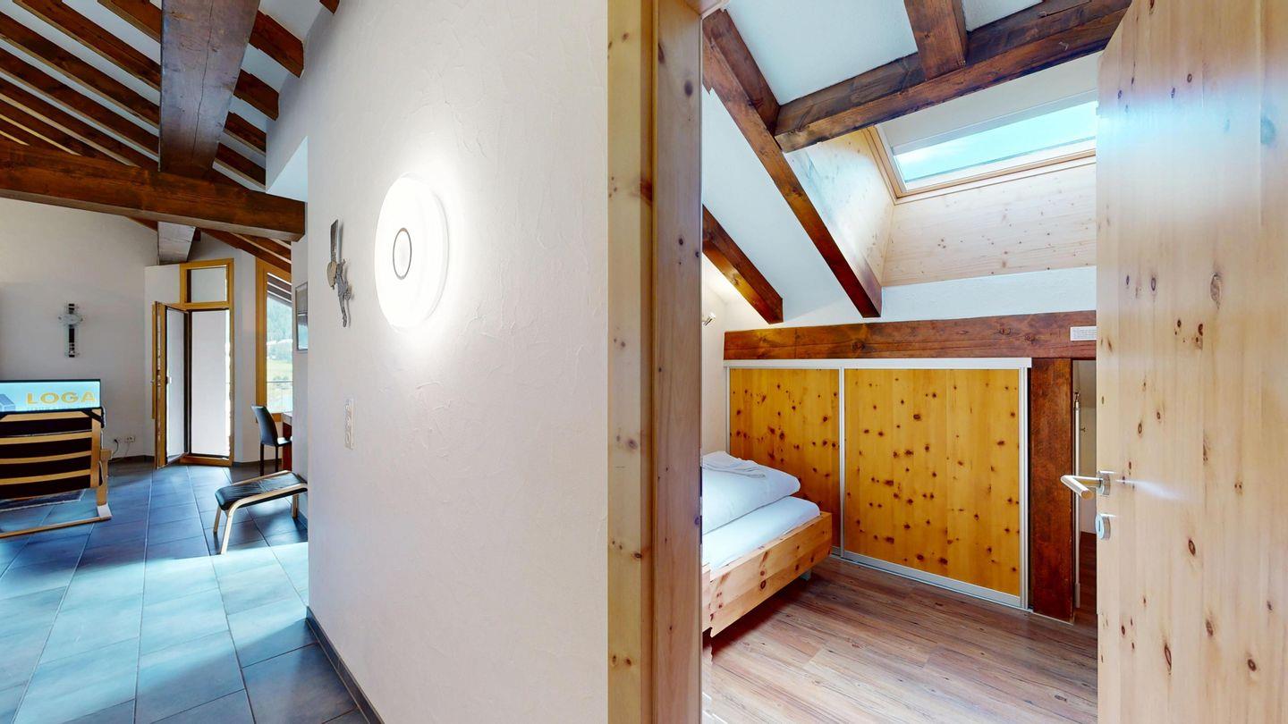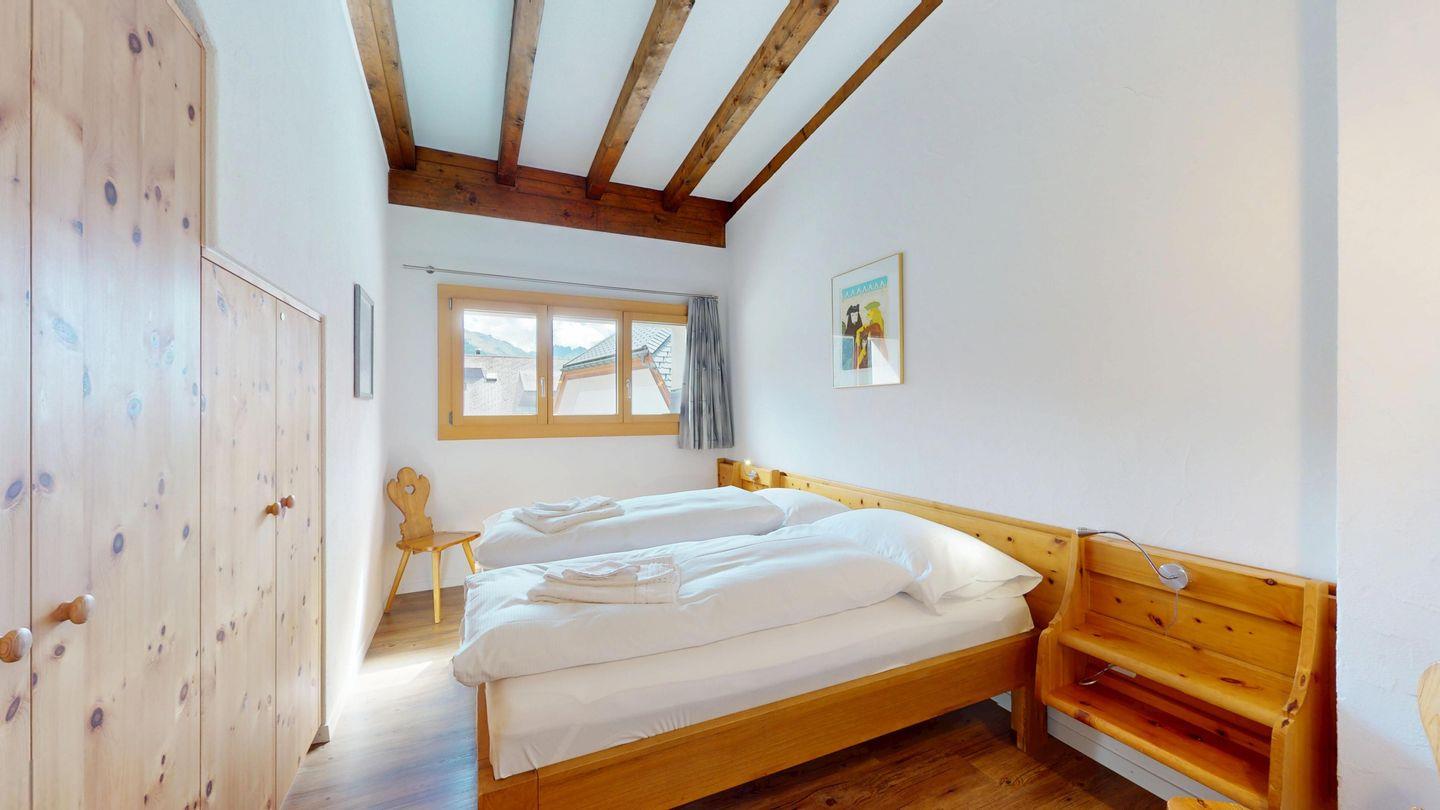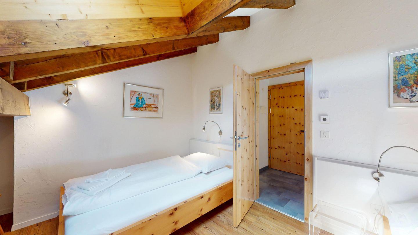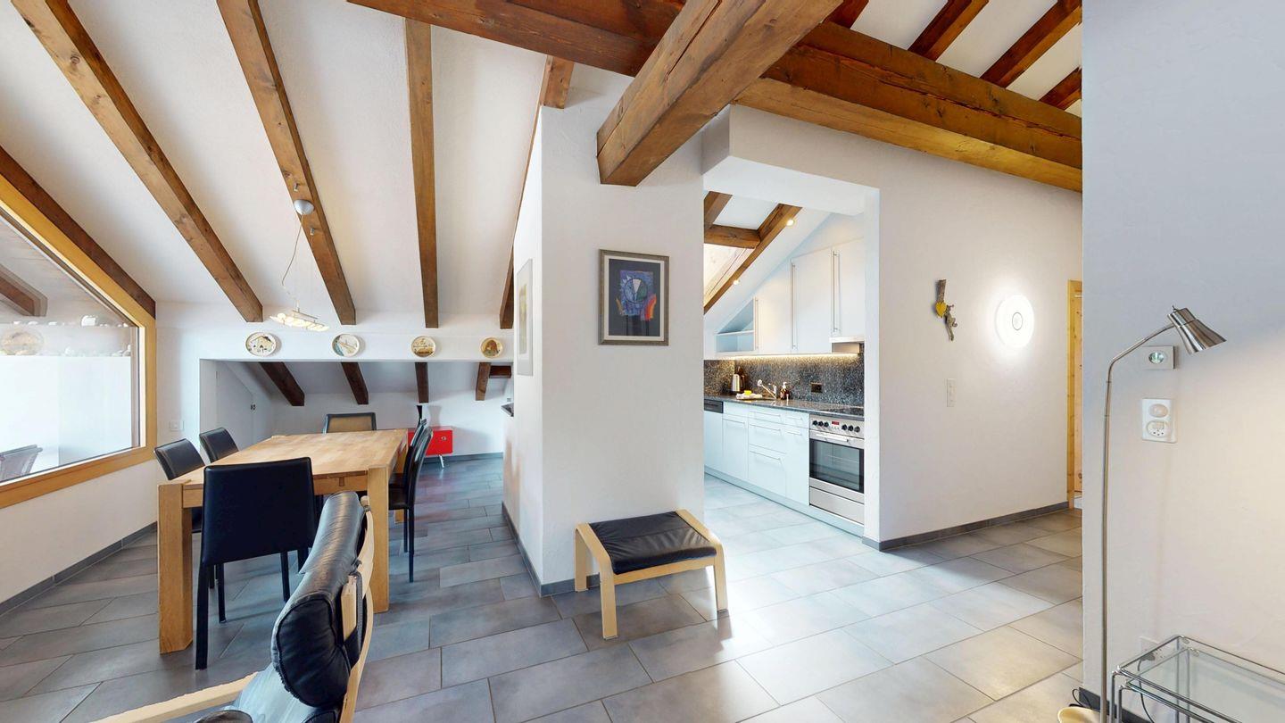 3-Zimmer-Dachwohnung, abgeschrägt, im 3. Stock, 87 m2. Wohnzimmer mit 2 Schlafmöglichkeiten und Balkon. Radio, Fernseher. Küche offen gegen das Wohnzimmer mit Backofen, Geschirrspüler und Kühlschrank mit separatem Tiefkühlfach. CHICCO D'ORO Kaffeemaschine. Ein Zweibettzimmer. Dusche/WC/Lavabo. Separater Schlafteil mit Garderobe, ein Doppelzimmer, Bad/WC/Lavabo. Der Spabereich des Hotels Albana kann zum Preis von CHF 25.00 pro Person und Tag genutzt werden, Anmeldung und Zahlung direkt im Hotel. 1 Garagenplatz und 1 Aussenparkplatz. Skiraum zur Mitbenützung. Haustiere sind nicht erlaubt.