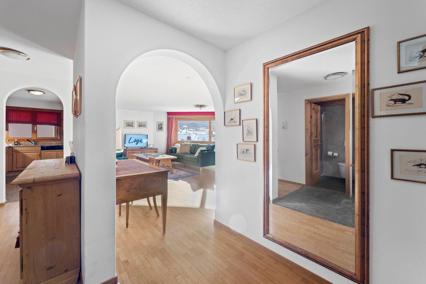 Die Chesa Corvatsch (Haus 1, Baujahr 1990) befindet sich im Dorfkern von Silvaplana, Richtung Sils-Maloja. Lebensmittelgeschäfte, Post, Bank, Kurverein sowie verschiedene Restaurants sind in 5-10 Gehminuten erreichbar. Langlaufloipen und Wanderwege gibt es in unmittelbarer Umgebung. Der Sportbus fährt im Winter jede halbe Stunde in alle Richtungen.