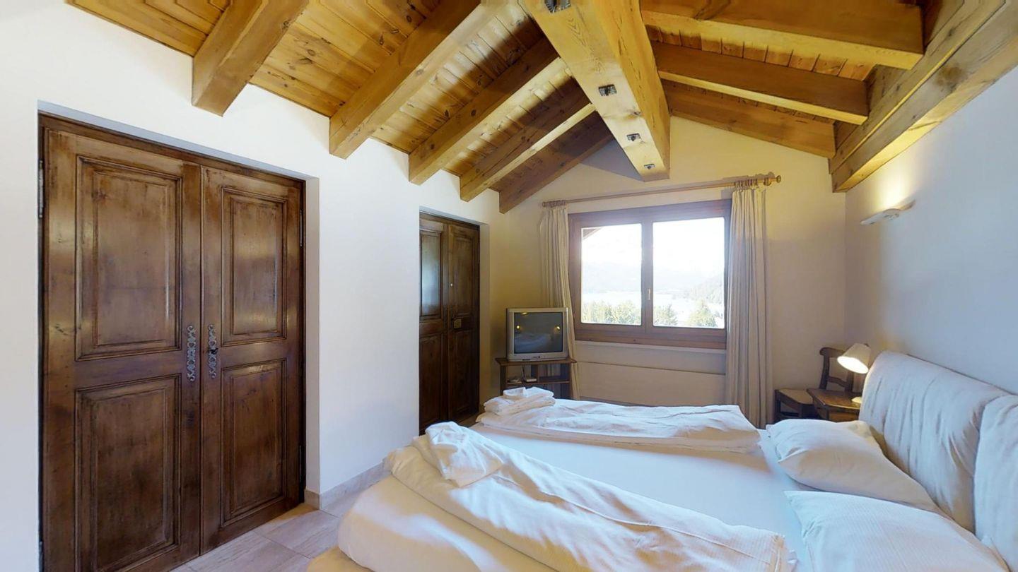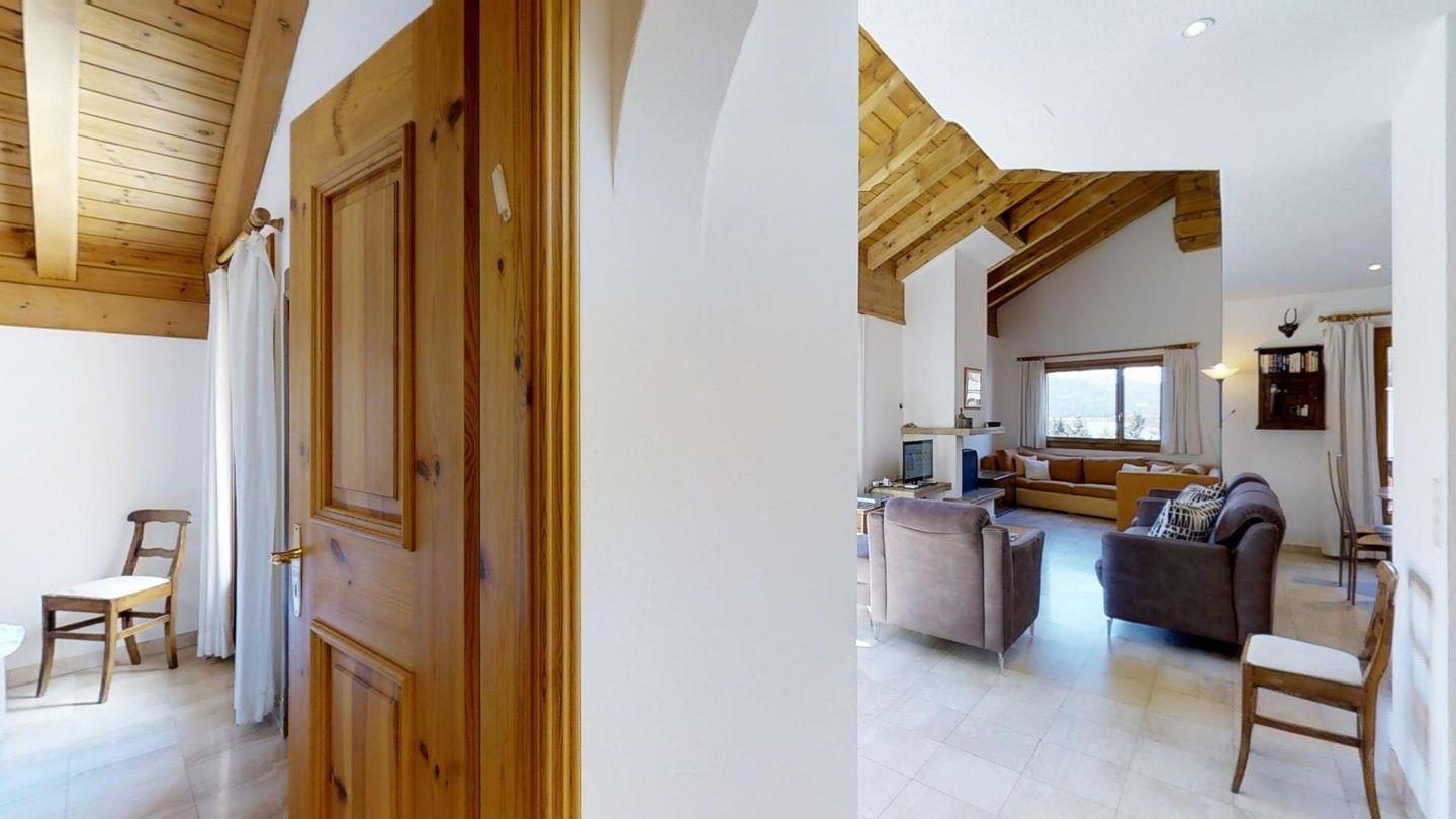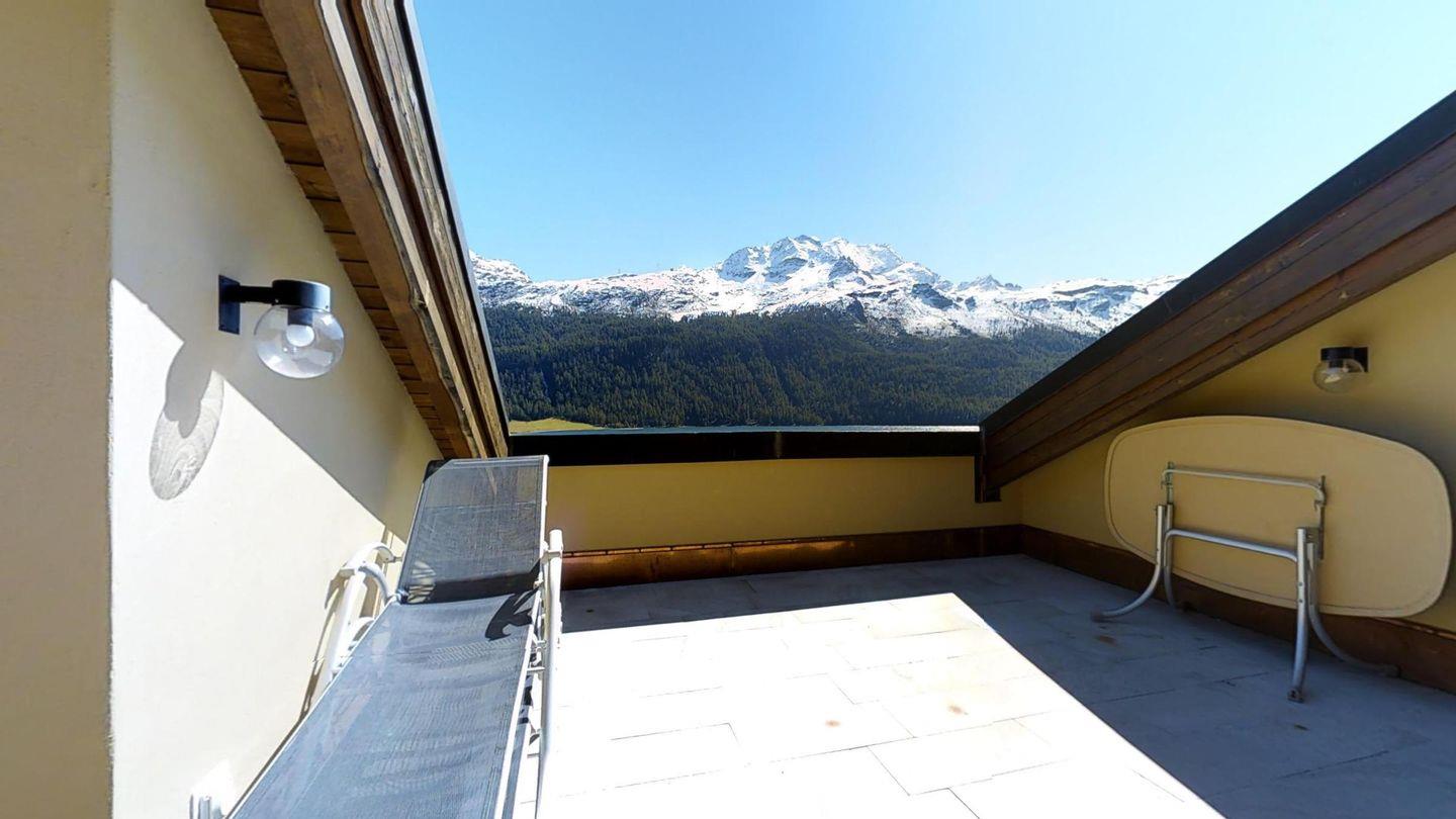 Grosszügige, helle 3½ - Zimmer-Duplexwohnung im 3. OG/DG mit Galerie, 113 m2, an ruhiger Südwest-Lage mit schöner See- und Bergsicht. Helles Wohn- und Esszimmer mit Dachterrasse und Sicht auf den Corvatsch (Balkonmöbel vorhanden) und einem kleinen Balkon mit Sicht Richtung Maloja. Kamin. TV, Radio und Telefon mit Zähler. Offene Küche mit Geschirrspüler und Backofen. Kaffeemaschine Chicco d'Oro. Ein Doppelzimmer (Doppelbett mit zwei Matratzen), Dusche/WC/Lavabo, Ausgang zur Dachterrasse. Galerie: abgeschlossenes Doppelzimmer mit wunderschöner Aussicht Richtung Maloja, Bad/WC/Lavabo/Bidet. Französisches Bett auf der offenen Galerie. Komfortable Einrichtung mit verschiedenen Einbauschränken. Marmorböden. 1 Garagenplatz. Waschküche und Skiraum zur Mitbenützung. Haustiere sind nicht erlaubt.