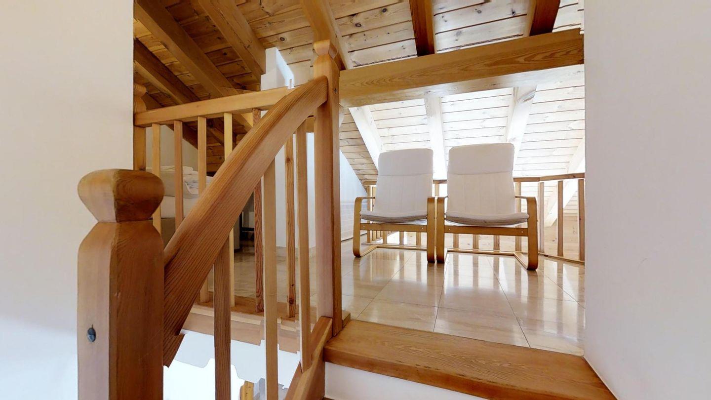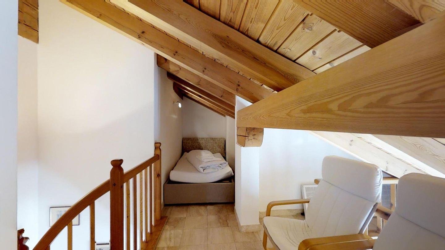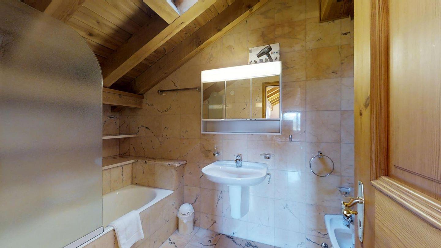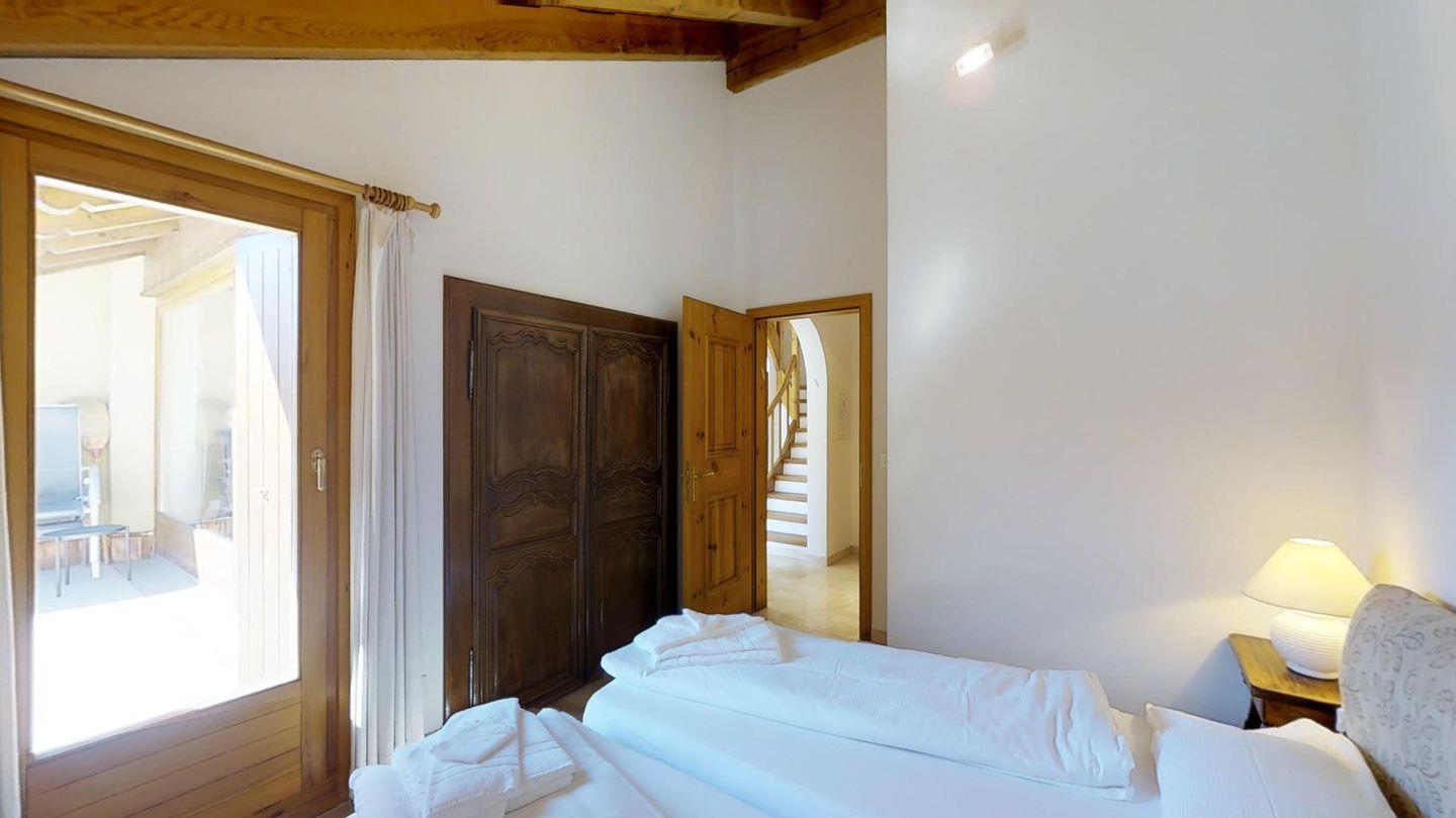 Grosszügige, helle 3½ - Zimmer-Duplexwohnung im 3. OG/DG mit Galerie, 113 m2, an ruhiger Südwest-Lage mit schöner See- und Bergsicht. Helles Wohn- und Esszimmer mit Dachterrasse und Sicht auf den Corvatsch (Balkonmöbel vorhanden) und einem kleinen Balkon mit Sicht Richtung Maloja. Kamin. TV, Radio und Telefon mit Zähler. Offene Küche mit Geschirrspüler und Backofen. Kaffeemaschine Chicco d'Oro. Ein Doppelzimmer (Doppelbett mit zwei Matratzen), Dusche/WC/Lavabo, Ausgang zur Dachterrasse. Galerie: abgeschlossenes Doppelzimmer mit wunderschöner Aussicht Richtung Maloja, Bad/WC/Lavabo/Bidet. Französisches Bett auf der offenen Galerie. Komfortable Einrichtung mit verschiedenen Einbauschränken. Marmorböden. 1 Garagenplatz. Waschküche und Skiraum zur Mitbenützung. Haustiere sind nicht erlaubt.