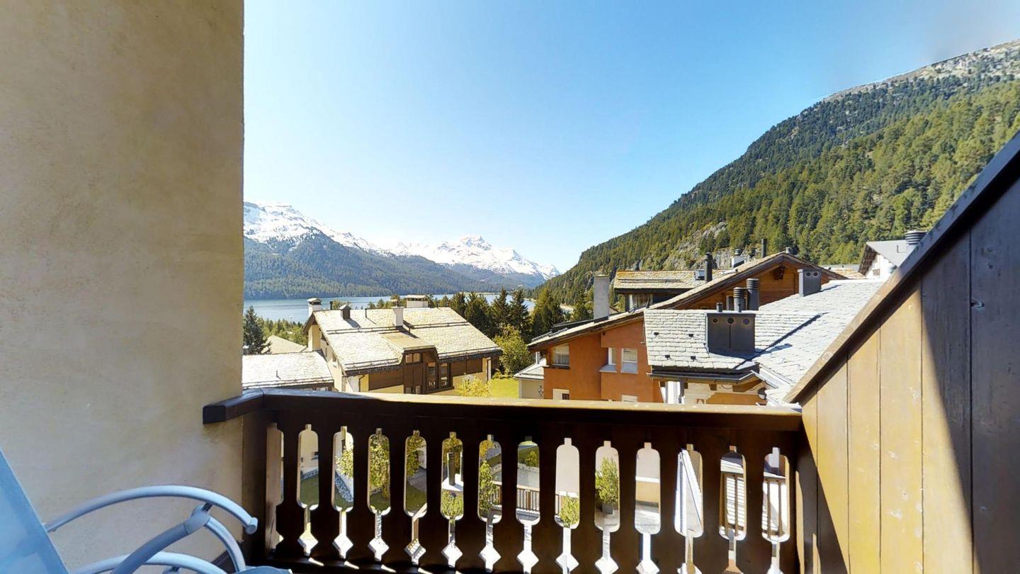 Grosszügige, helle 3½ - Zimmer-Duplexwohnung im 3. OG/DG mit Galerie, 113 m2, an ruhiger Südwest-Lage mit schöner See- und Bergsicht. Helles Wohn- und Esszimmer mit Dachterrasse und Sicht auf den Corvatsch (Balkonmöbel vorhanden) und einem kleinen Balkon mit Sicht Richtung Maloja. Kamin. TV, Radio und Telefon mit Zähler. Offene Küche mit Geschirrspüler und Backofen. Kaffeemaschine Chicco d'Oro. Ein Doppelzimmer (Doppelbett mit zwei Matratzen), Dusche/WC/Lavabo, Ausgang zur Dachterrasse. Galerie: abgeschlossenes Doppelzimmer mit wunderschöner Aussicht Richtung Maloja, Bad/WC/Lavabo/Bidet. Französisches Bett auf der offenen Galerie. Komfortable Einrichtung mit verschiedenen Einbauschränken. Marmorböden. Garagenplatz. Waschküche und Skiraum zur Mitbenützung. Haustiere sind nicht erlaubt.
