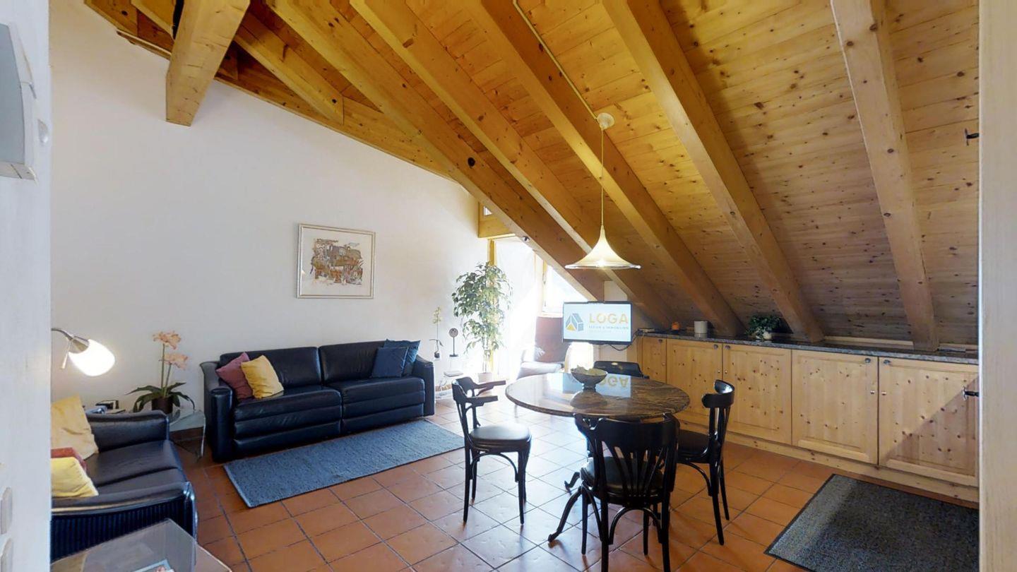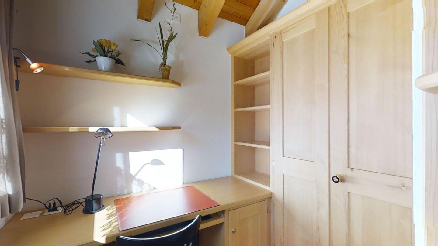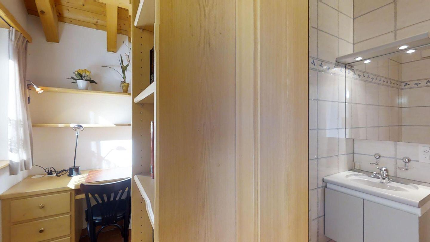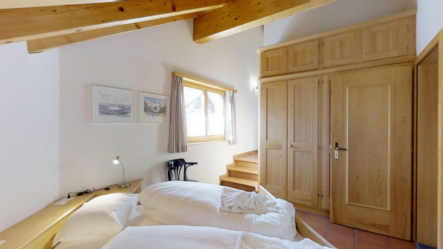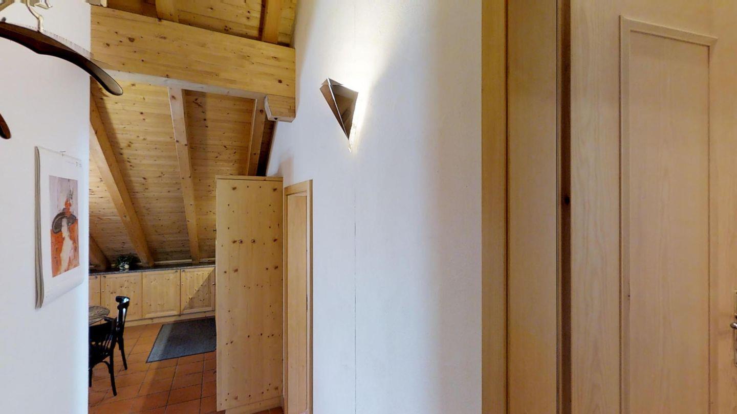 Abgeschrägte 2½-Zimmer-Dachwohnung im 2. Stock, 64m2. Wohn-/ Esszimmer mit zwei Schlafmöglichkeiten (2 Schlafsofas 90x200). Radio, Fernseher und Telefon. Gratis WLAN-Anschluss. Offene Küche mit Backofen und Geschirrspüler, Abdeckung in Naturstein. Nespresso Kaffeemaschine. Käsefondue-Geschirr vorhanden. 1 Doppelzimmer (Doppelbett mit zwei Einzelmatratzen 2x90x200). Kleines Arbeitszimmer (Büro). Kleine Dusche/WC/Lavabo. Neue, komfortable Einrichtung. Garagenplatz. Skiraum und Waschküche zur Mitbenützung. Haustiere sind nicht erlaubt.