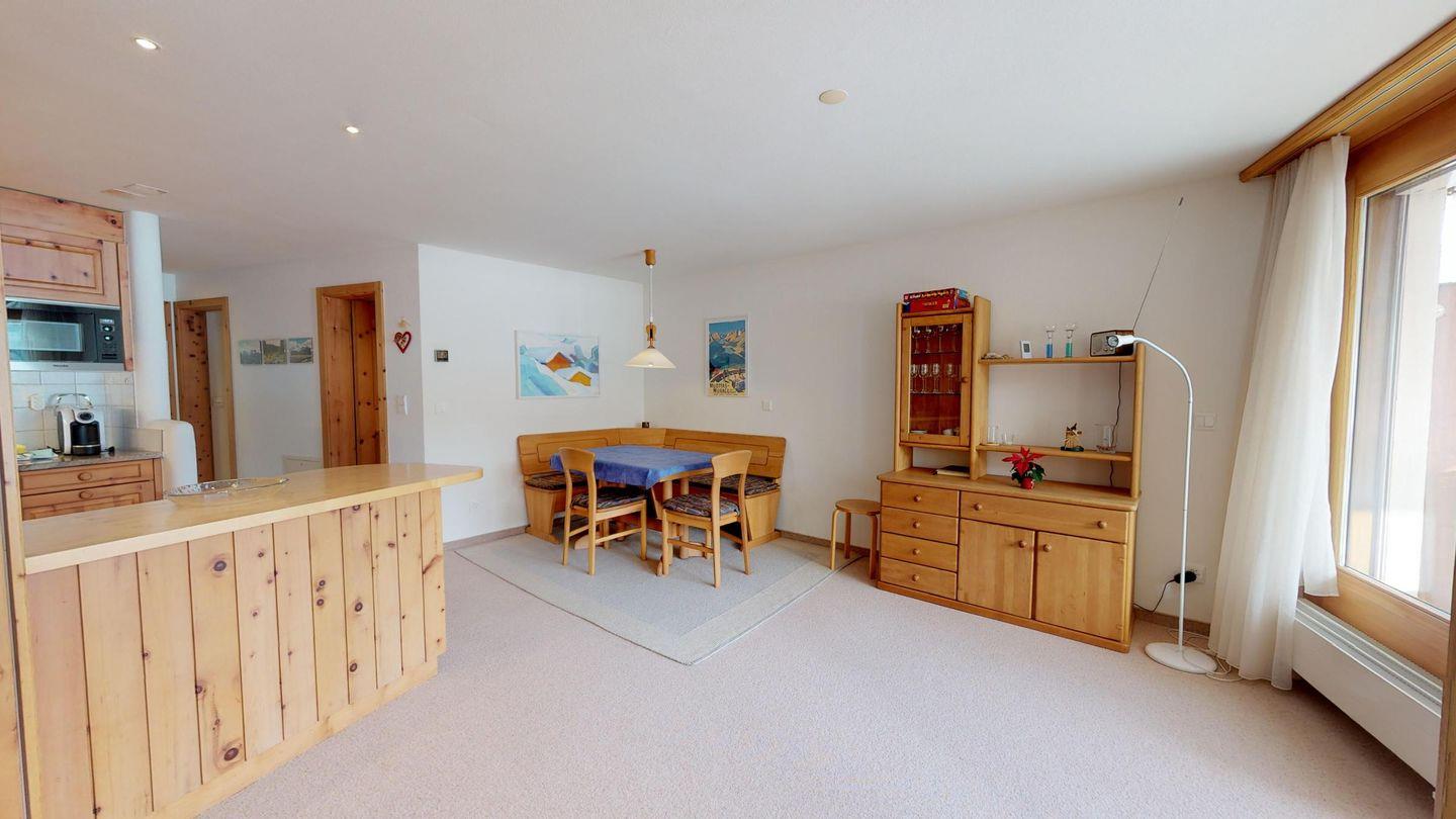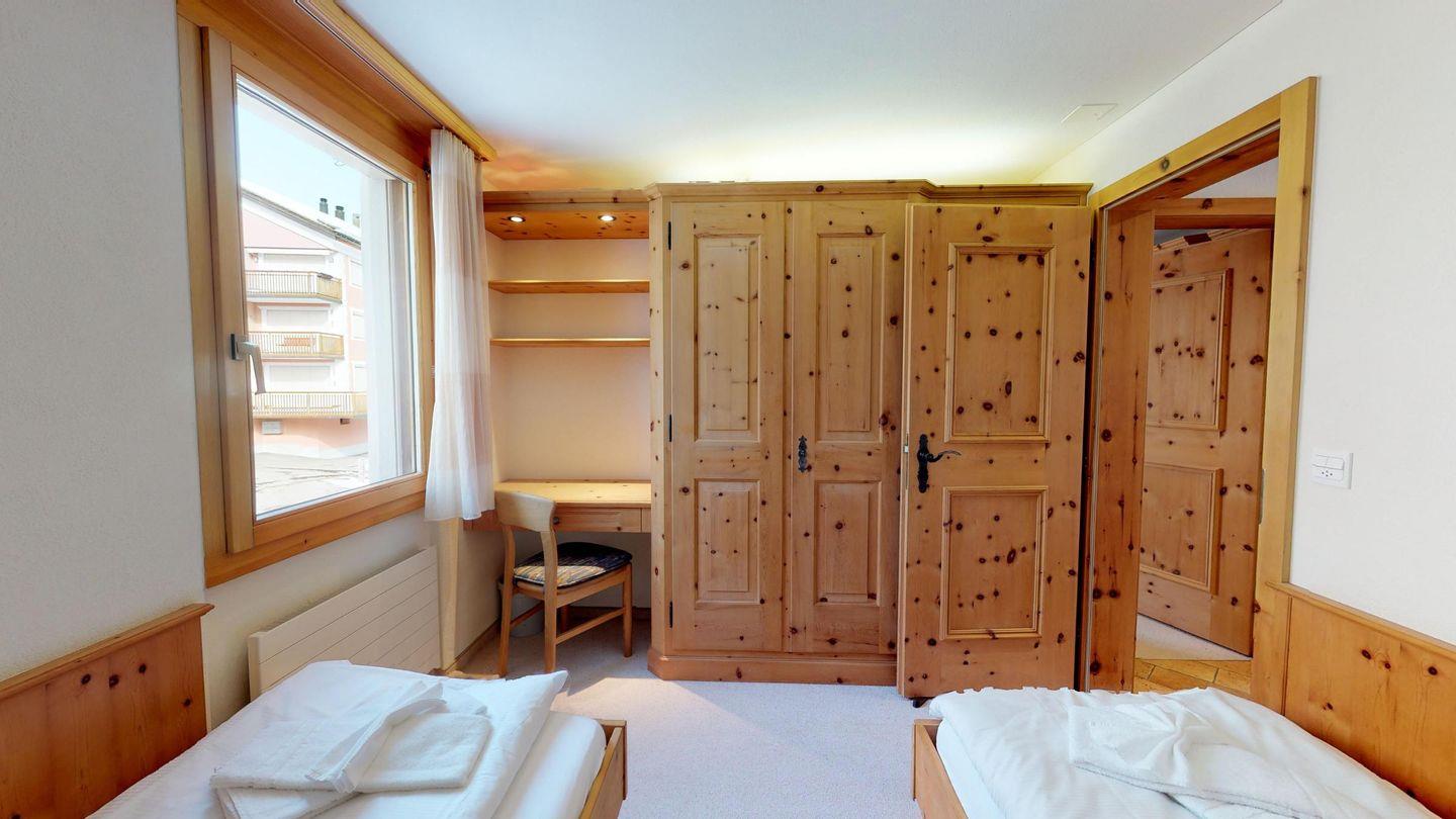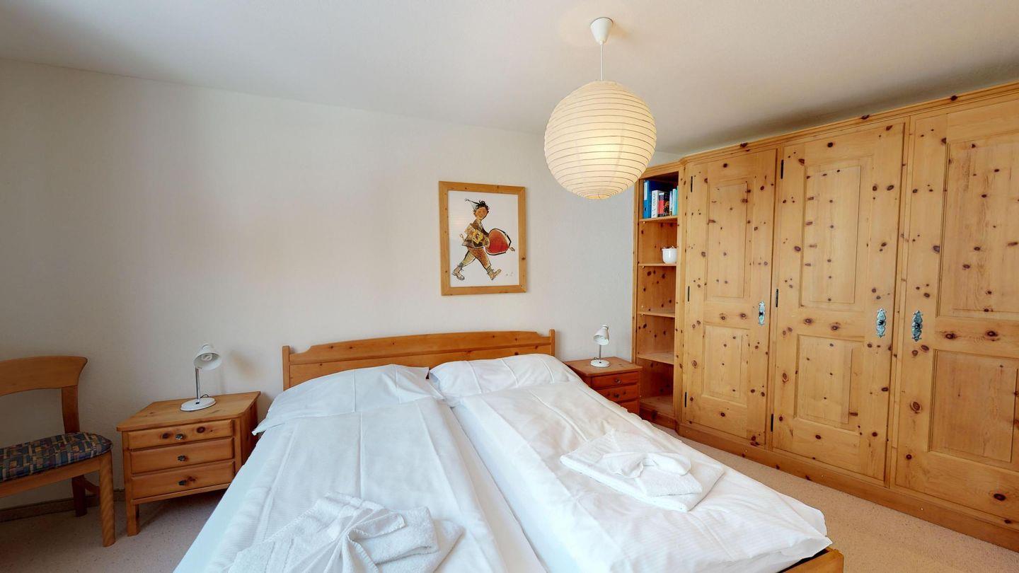 Ansprechende und helle 3-Zimmerwohnung mit wunderschöner Berg- und Seesicht. Ca. 85 m² im 2. Stock. Eingang mit Garderobe. Ganze Wohnung mit Teppichboden. Helles und grosszügiges Wohn-/Esszimmer mit offener Küche (Mikrowelle und Raclette-Ofen) und Ausgang auf den Balkon (südliche Ausrichtung). Badezimmer mit Dusche, Lavabo und WC. Doppelschlafzimmer (2 Einzelmatratzen 90x200) mit kleinem Schreibtisch in schönem Holzausbau. Zweibettzimmer (2x90x200) mit Schreibnische ebenfalls in Holz. 1 Garage. Haustiere sind nicht erlaubt. Nichtraucher.