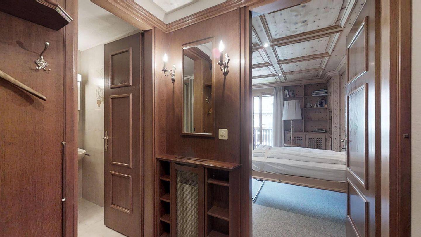 1-Zimmerwohnung im 2. Stock, ca. 38 m2, an ruhiger, sonniger Nordlage. Entree mit Kochnische, Kühlschrank und Backofen. Hübsches Wohn-/ Esszimmer mit zwei getrennten Schrankbetten (Arvenholz-Ausbauten). Balkon mit Sitzgelegenheit. Radio, Fernseher und Telefon. Bad/WC/Lavabo. Komfortable Einrichtung. Garagenplatz (Höhe max. 180 cm). Waschküche und Skiraum zur Mitbenützung. Haustiere sind nicht erlaubt.