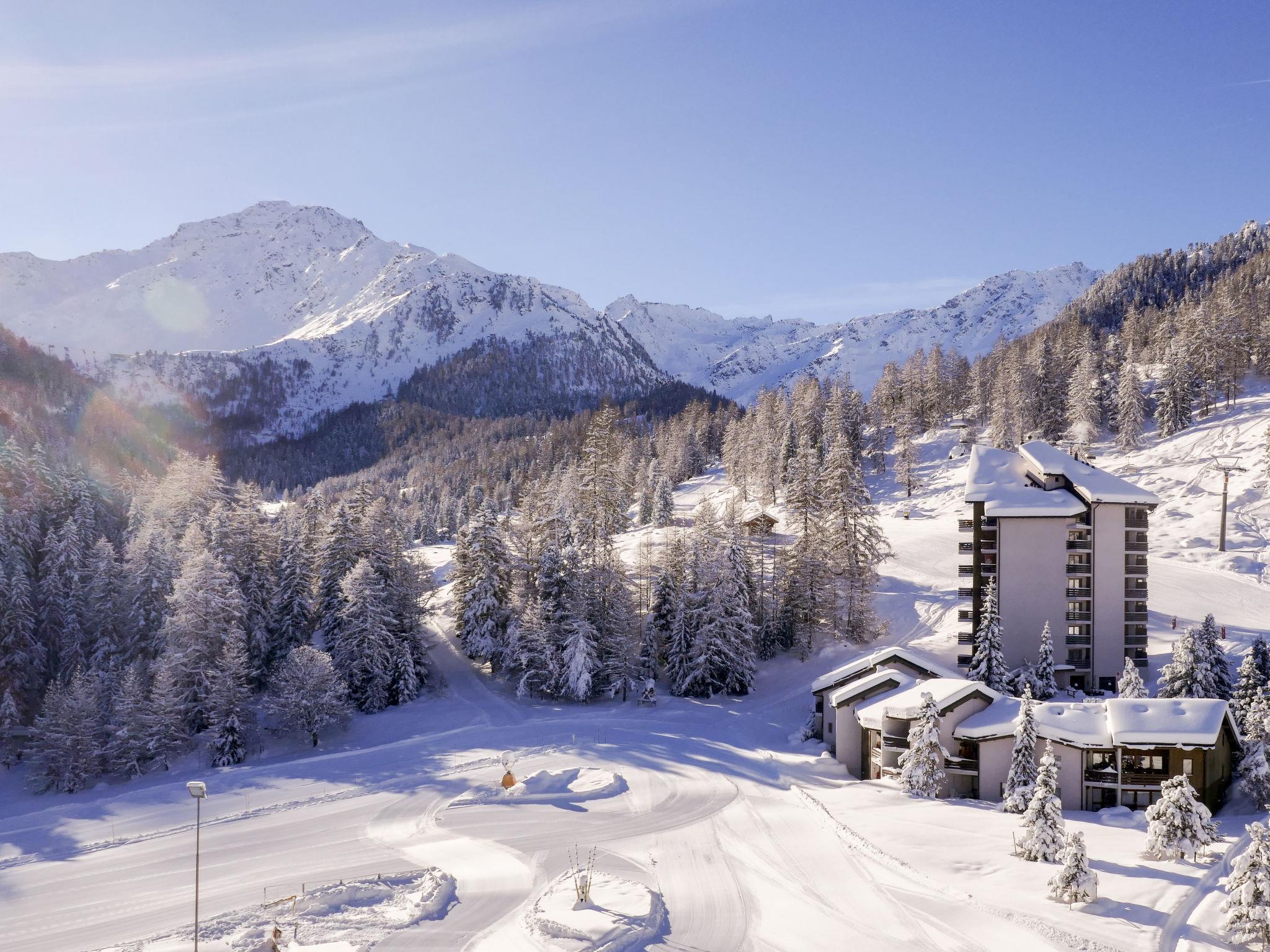 Large resort "Rosablanche", 8 storeys, built in 1972. 10 m from the skiing area. For shared use: lawn for sunbathing, pond. Tennis (01.Jul. - 15.Sep.), basketball, children's playground. In the complex: restaurant, lift, storage room for skis, central heating system, washing machine (extra), tumble dryer (for shared use, extra). Motor access to the house. Parking (limited number of spaces) at the house, public parking 100 m extra. Shop 10 m, bus stop "Haute-Nendaz, station/poste" 7.7 km, railway station "Sion" 20.5 km. Golf course (18 hole) 25 km, tennis 7 km, skisport facilities 10 m, ski bus stop 100 m, ski school, children's ski school 10 m, ski-kindergarten 7 km, sled run 100 m, ice rink 7 km, children's playground 10 m. Well-known ski regions can easily be reached: 4 Vallées 10 m. Hiking paths: Barrage de Cleuson 5 km, Bisse de Chervé 5 km, Bisse de Saxon 200 m. Please note: Additional accommodations can be booked. Sports shop / ski rental. Heating in winter only. A cash deposit is requested for the key of the parking gate and the parking card (CHF 200.- or EUR 200.-). If you are leaving early morning, you may collect your deposit the evening before departure and will have to pay the parking for the last night.