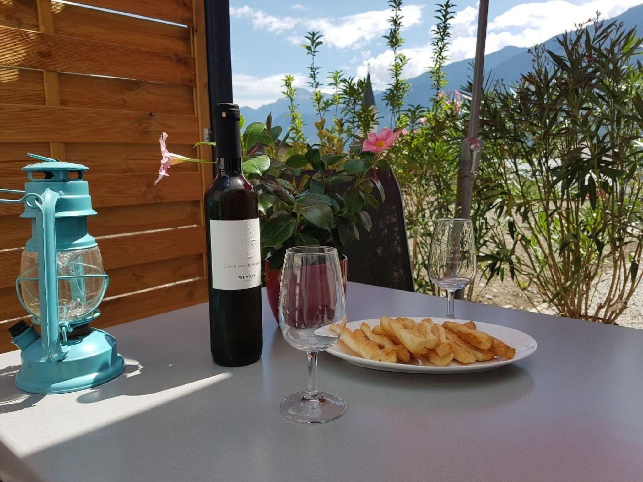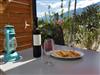 Studio of 22m2, for one or two persons, independent entrance, free parking, WC/shower, bath and bed linen included, kitchenette with oven/microwave, 1 induction hob, extractor hood, outdoor grill, fridge, kettle, plates, glasses and services, free coffee and tea, flat screen TV 250 channels, free high speed internet, view on the mountain and the vineyard, sunny terrace with parasol, barbecue, electric awning, simple breakfast on demand