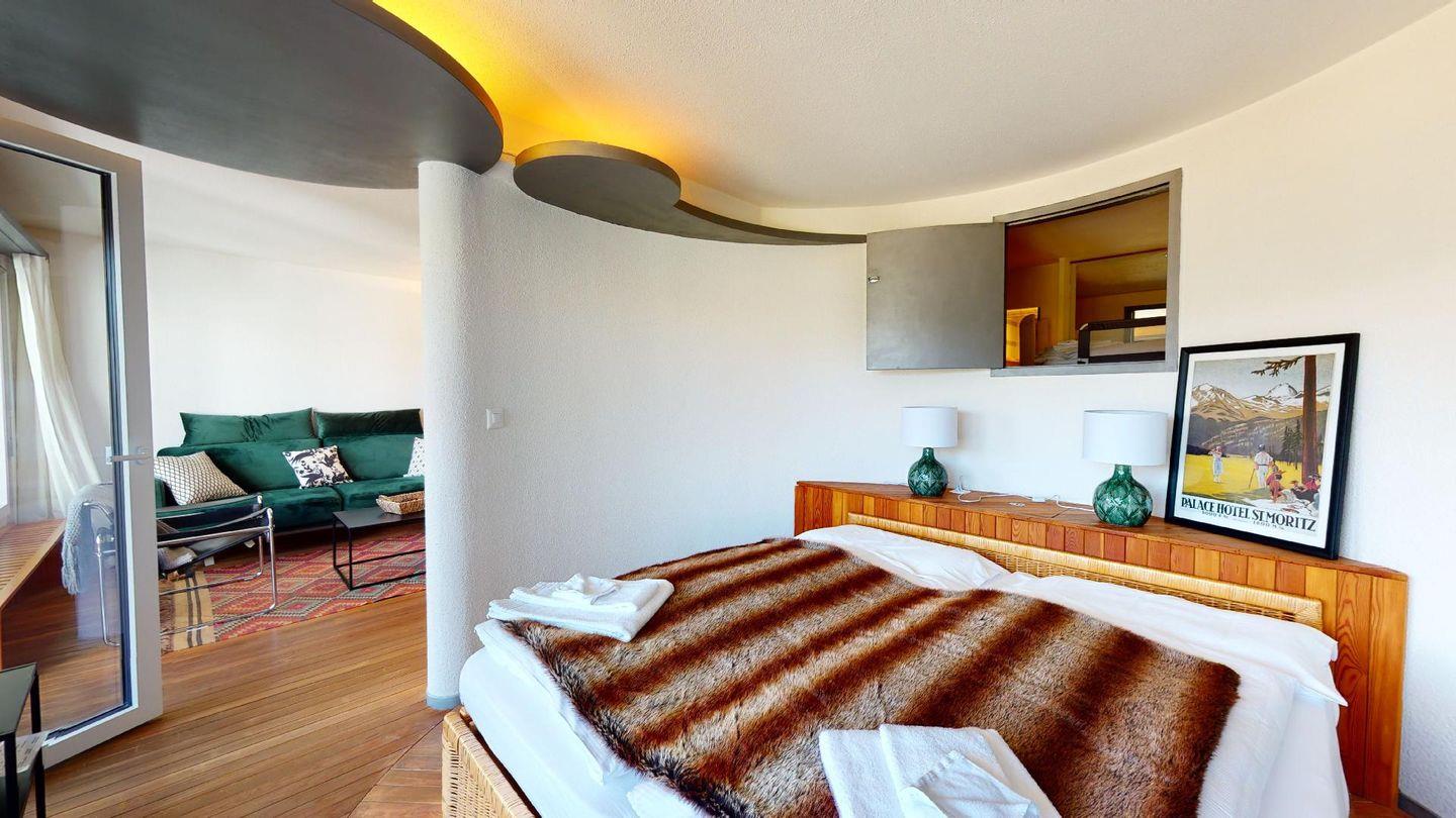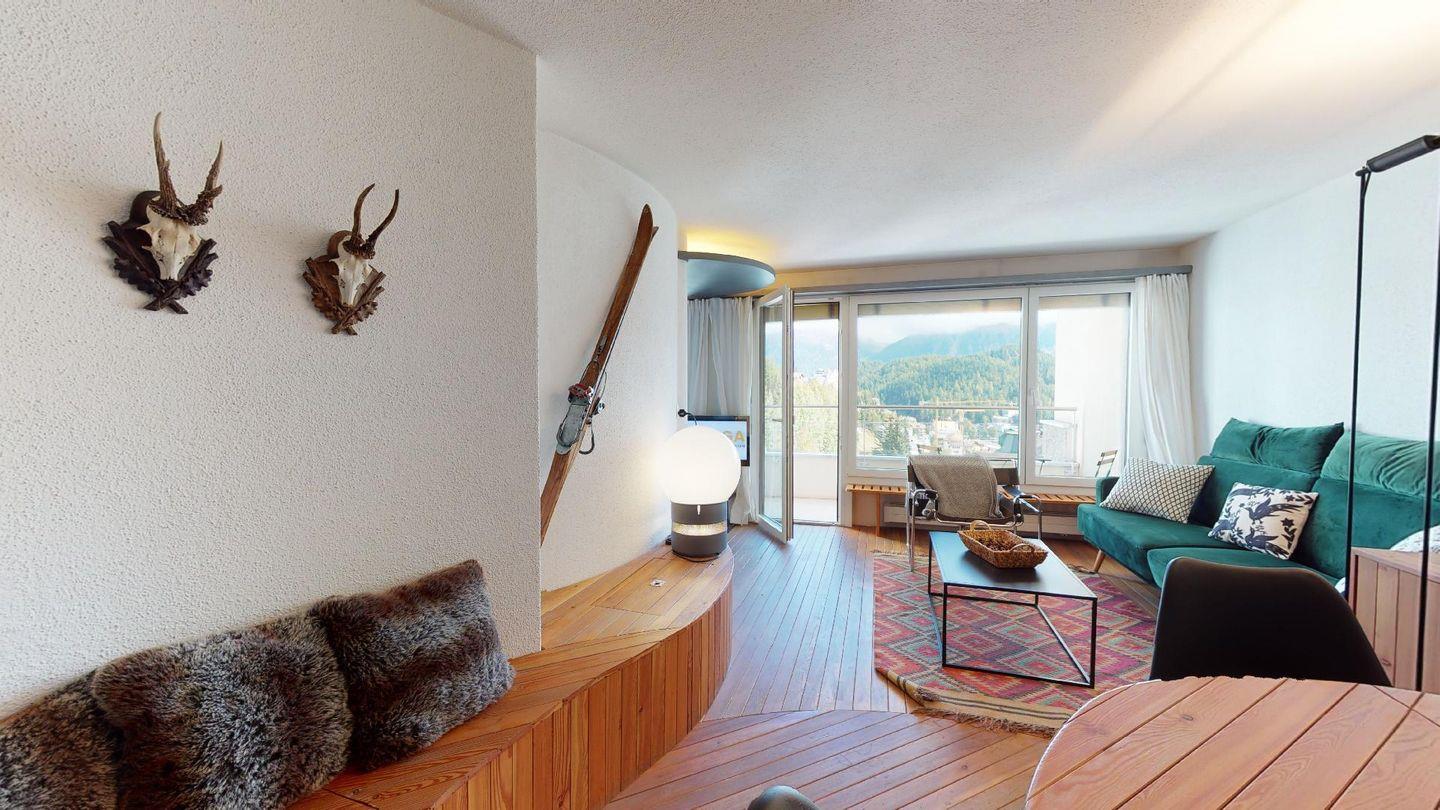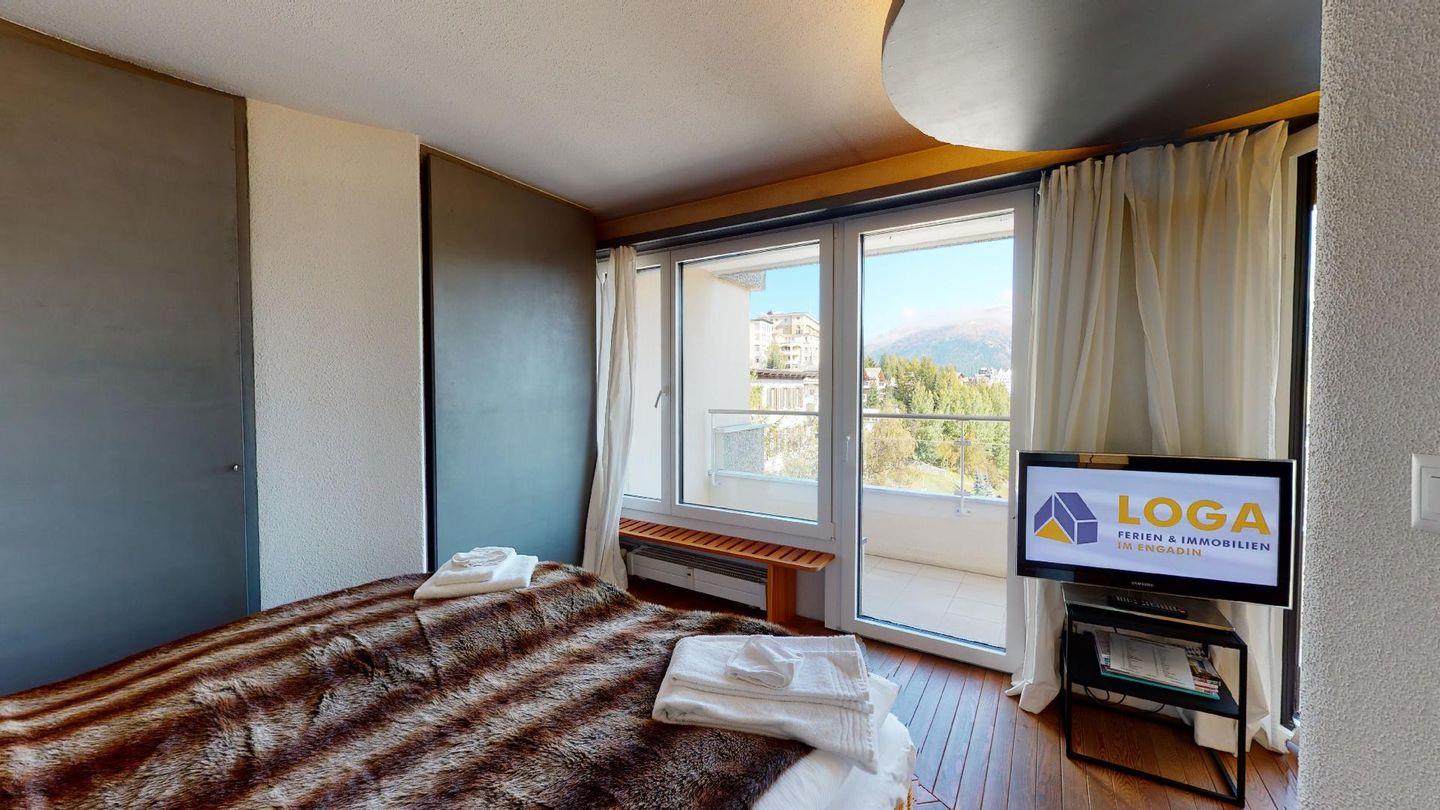 3 ½ Zimmerwohnung, ca. 70m2, im 4. Stock mit Blick zur Muottas Muragl. Wohnzimmer mit TV, Essecke und Balkon. Geschlossene Küche mit Backofen, Kühlschrank mit Gefrierfach und Geschirrspüler. Doppelzimmer, offen zum Wohnzimmer, mit Zugang zum Balkon. Badezimmer mit Wanne, WC, Bidet und Lavabo. Ein Schlafzimmer mit Etagenbett, Fenster zum Doppelzimmer und eigenem Bad mit Dusche, WC und Lavabo. Holzböden in der gesamten Wohnung. Parkplatz in der Garage (Höhe max. 210cm, nicht für breite Wagen geeignet).
