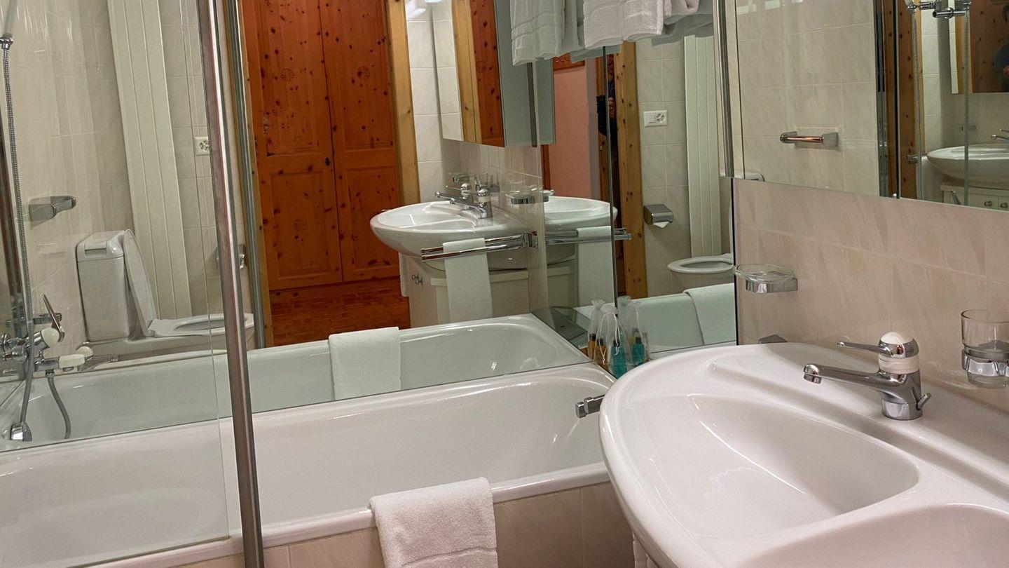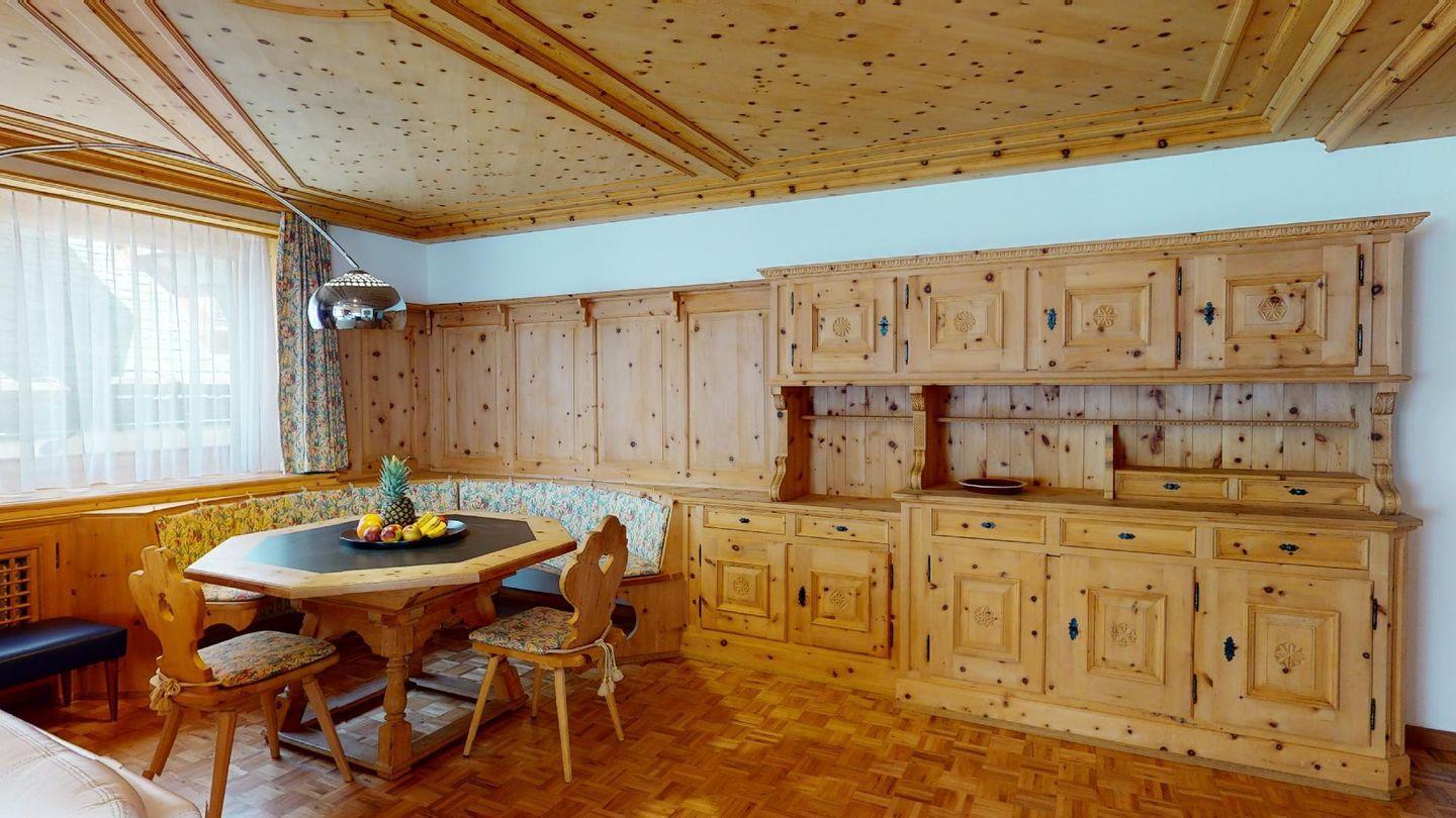 Geräumige mit gut riechendem Arvenholz ausgebaute 5-Zimmer Ferienwohnung im 1. Obergeschoss. Eingang mit generöser Garderobe und Gäste/WC. Wohnbereich mit Balkon Richtung Süden. Grosszügige Küche mit entsprechender Durchreiche ins Wohnzimmer. Elternschlafzimmer aus Arve. 1 Doppelschlafzimmer. 1 Bad/Dusche. 1 Schlafzimmer mit Etagenbetten und Dusche. 1 Einzelzimmer. Lift. Waschküche. 1 Garagenparkplatz im Parkhaus "Quadrellas" 4 Gehminuten entfernt von der Wohnung inklusive. Weitere Parkplätze gegen Gebühr möglich.
