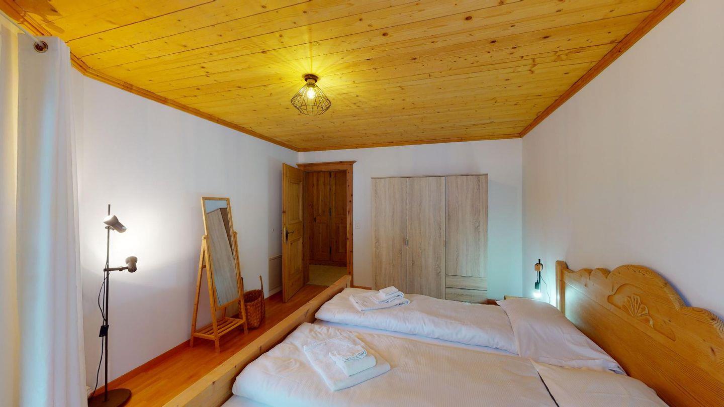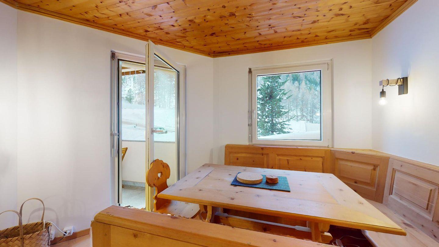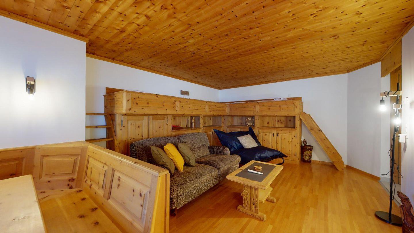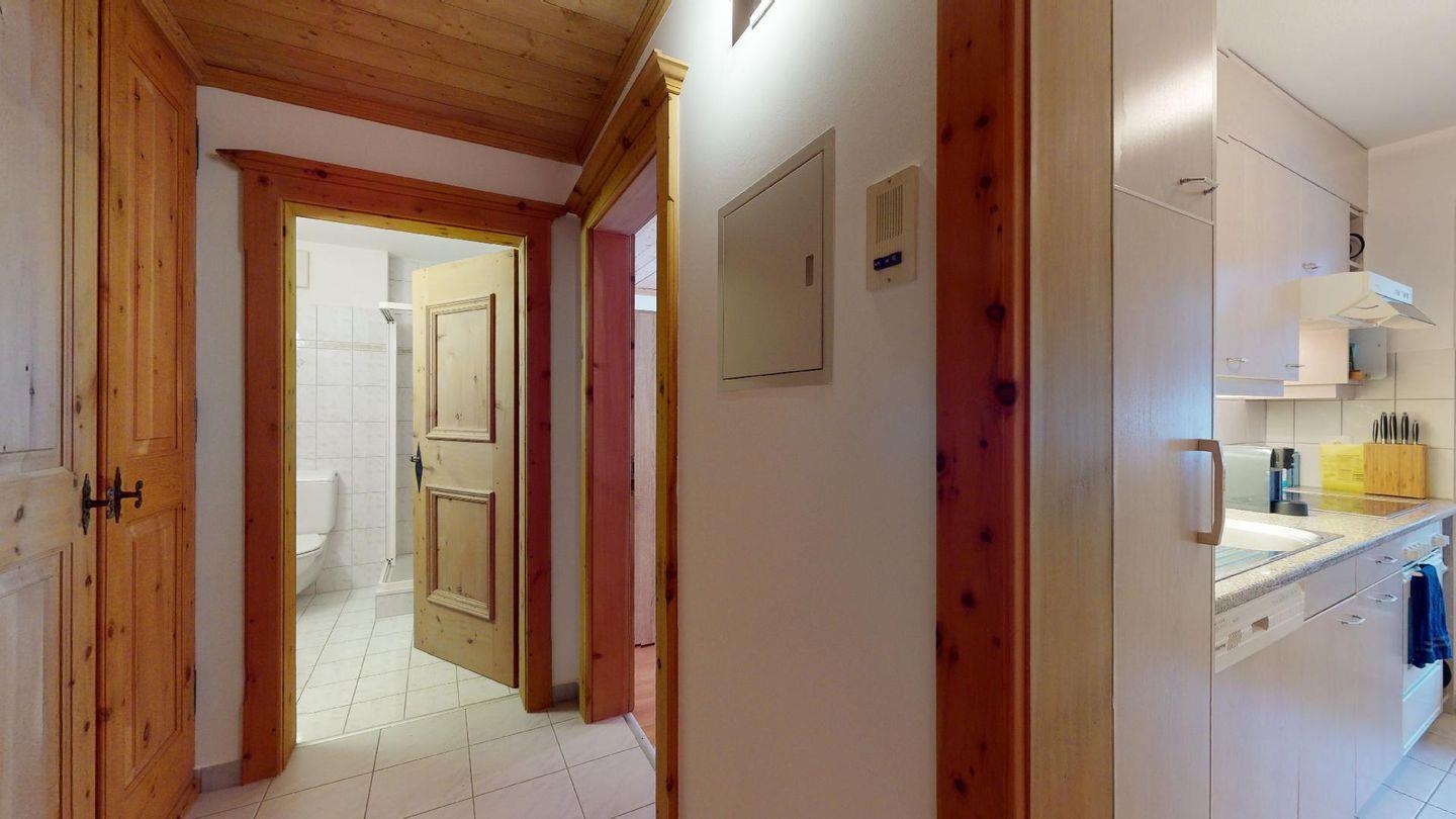 2 ½ Zimmerwohnung im 1. Obergeschoss. Entrée mit Garderobe. Wohn-/Esszimmer mit 3 eingebauten Hochbetten und Ausgang auf den Balkon. Geschlossene Küche mit Ausgang auf den Balkon. Ein Doppelschlafzimmer mit Ausgang auf den Balkon. Dusche/WC/Lavabo. Garagenplatz. Gemeinschaftliche Waschküche.