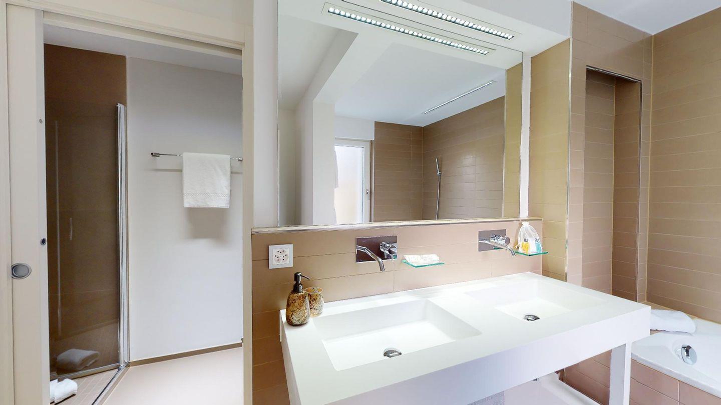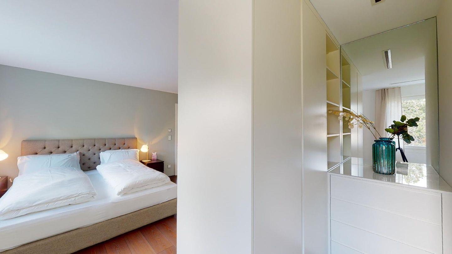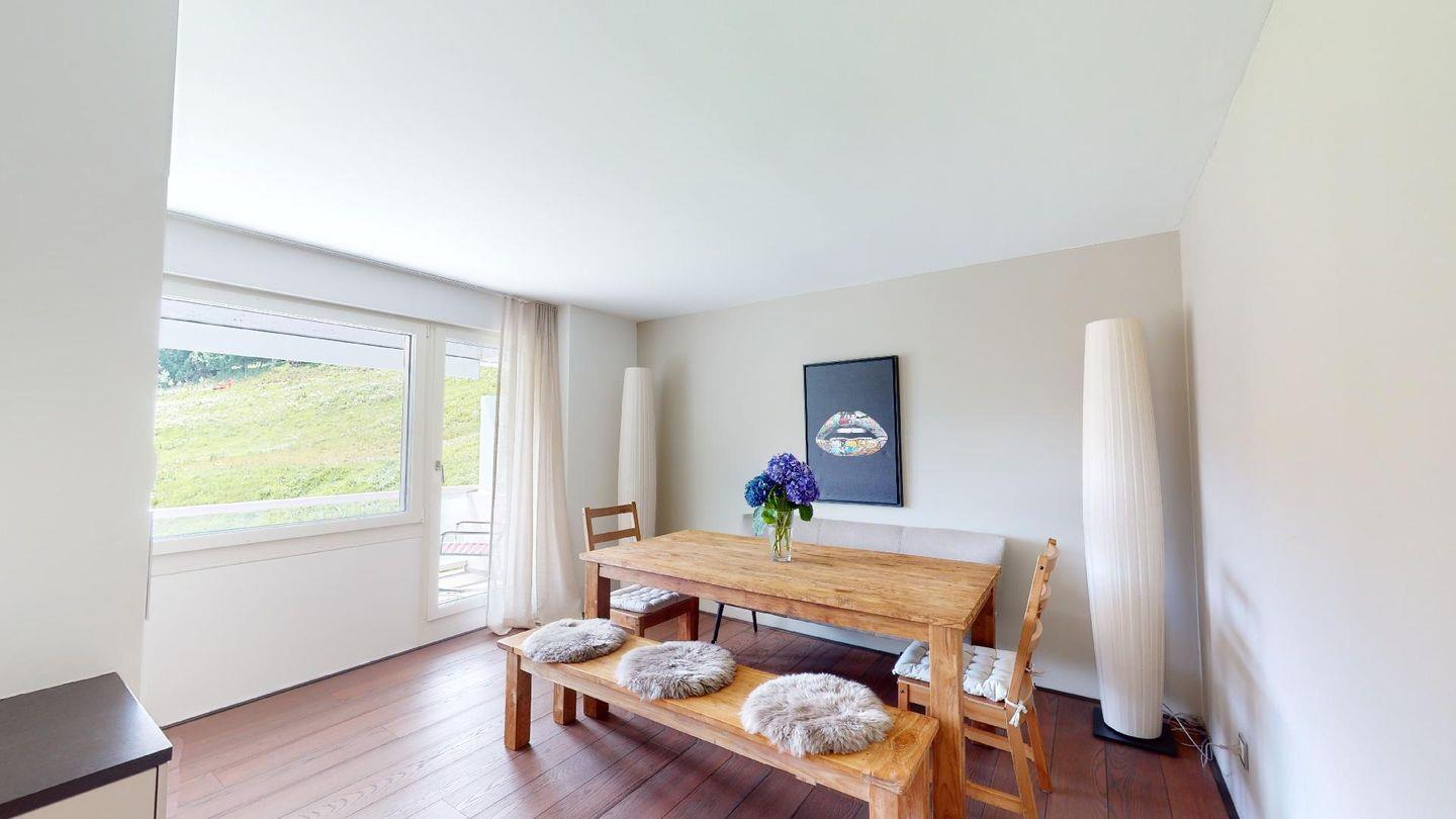 Luxuriöses, stilvolles 4.5-Zimmer-Ferienappartement im 3. Stock. Harmonisch eingerichtet, widerspiegelt es modernen Design, Luxus und komfortablen Wohnraum für Ihren wohlverdienten Urlaub. Der offene Wohn- und Essbereich ist schön gestaltet und bietet viel Platz zum Entspannen. 3 Doppelschlafzimmer, zwei davon mit ensuite Badezimmer. 1 Dusche/WC und ein Gäste WC mit Waschmaschine/Tumbler. Balkon mit Traumsicht. Lift. 2 Garagenparkplätze und Skiraum.