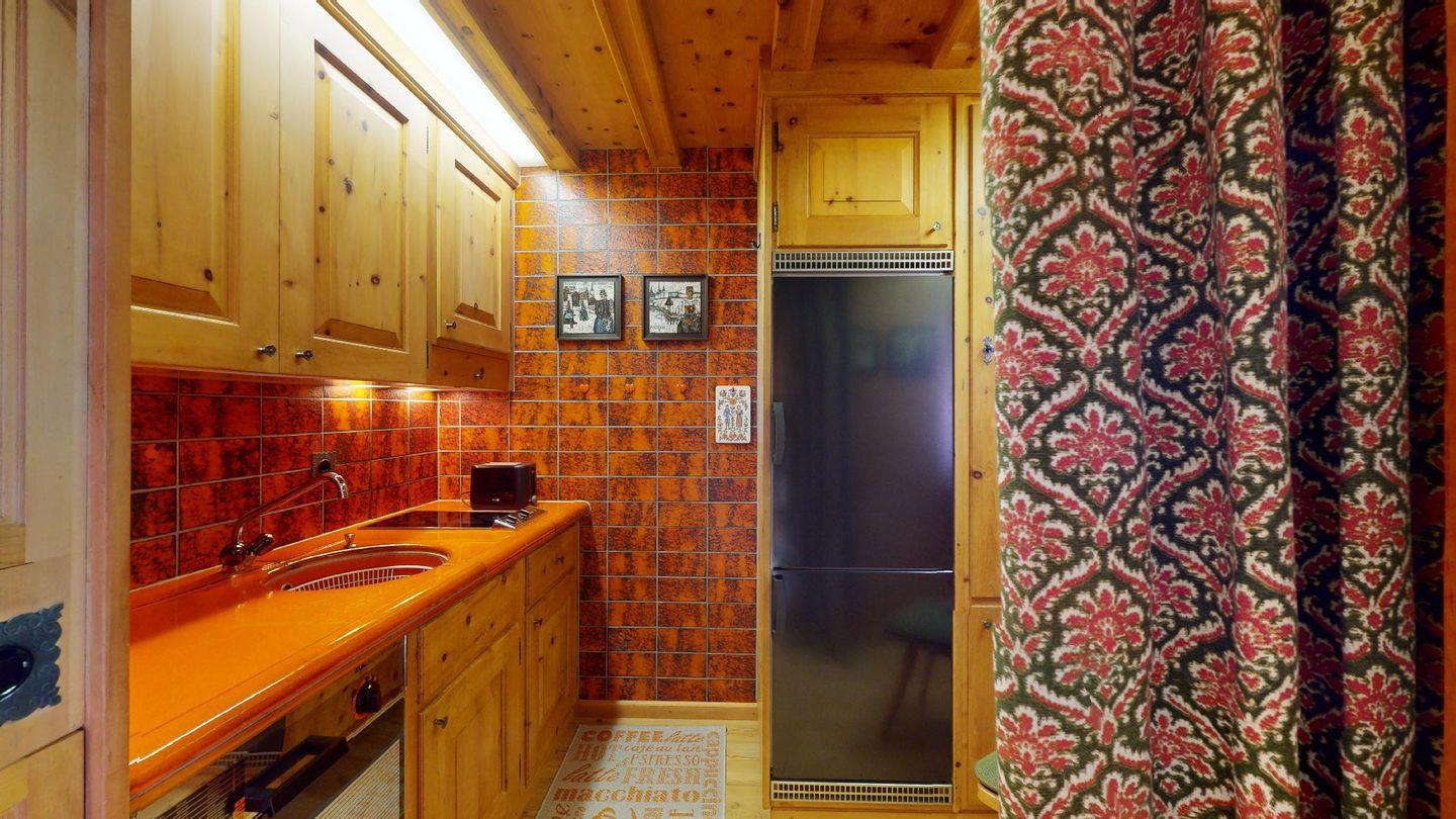 Hochwertig mit Holz verkleidete 1-Zimmerwohnung im 2. Stock für 2 Personen. Eingang mit Garderobe. Wohnzimmer mit Wohn- und Essbereich mit Ausgang auf den Balkon. 2 Schrankbetten. Geschlossene Küche mit 2-Platten Kochfeld, Geschirrspüler, Kaffeemaschine, Kühlschrank. Separates Badezimmer mit Dusche/WC/Lavabo. Radio, TV und Internet. Aussenparkplatz. Haustiere sind nicht erlaubt. Nichtraucherwohnung.
