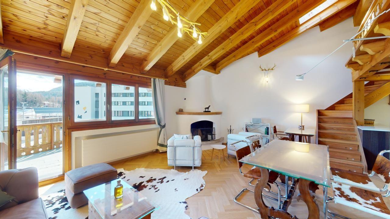 Gemütliche renovierte 3.5 Zimmer Dachgeschossferienwohnung mit schöner Seesicht auf den St. Moritzersee sowie Aussicht auf Muottas Muragl. Wohn- /Esszimmer mit offener Küche und sonnigem Balkon. Flatscreen TV. Masterschlafzimmer mit direktem Zugang zum Bad/WC mit Badewanne. 1 separate Dusche/WC. Galerie mit zwei Einzelbetten. 1 Garagenparkplatz, Lift. Gratis WLAN.