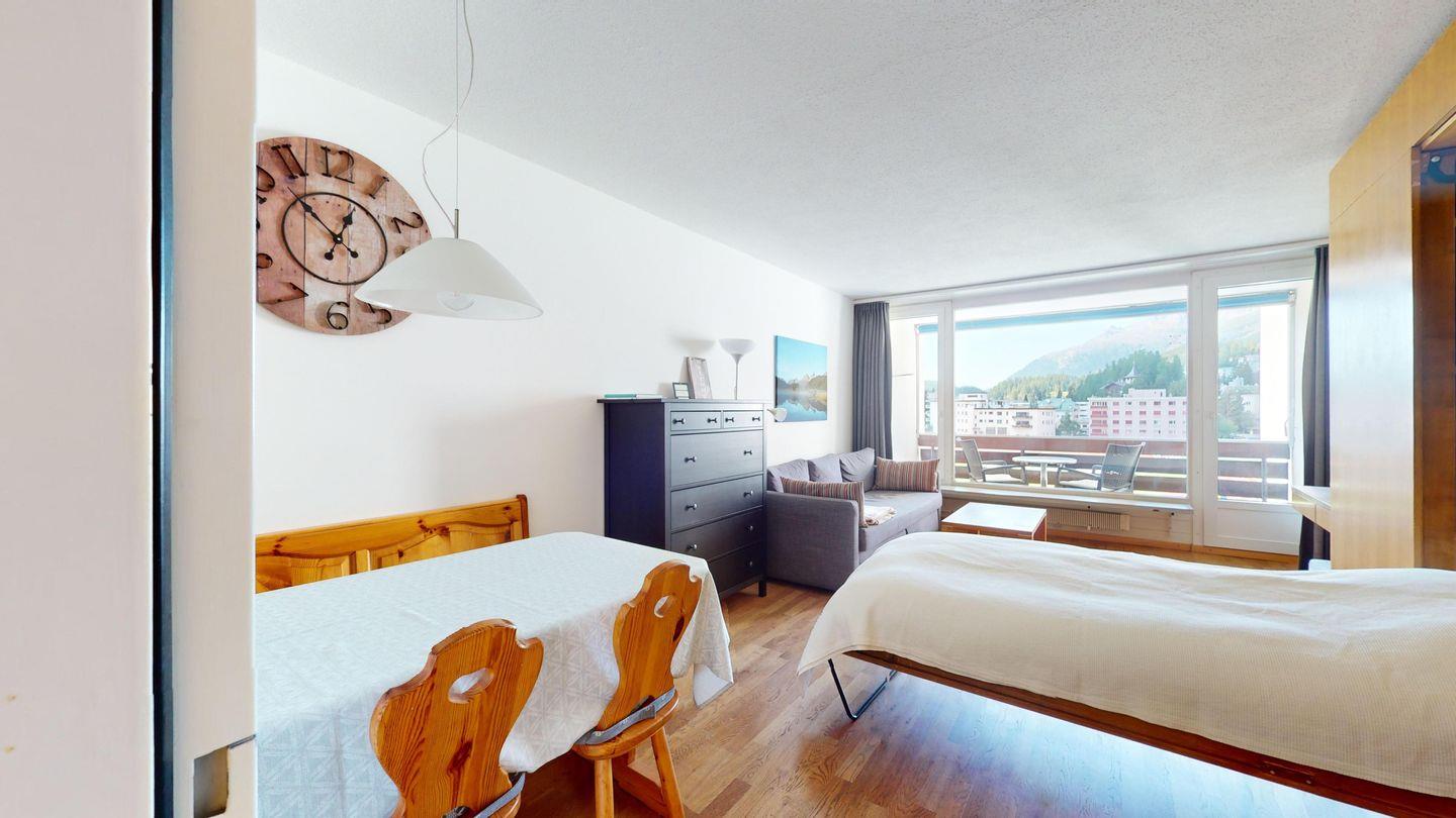 Das Apartmenthaus Residenz am See befindet sich an ruhiger Lage in St. Moritz-Bad direkt neben dem See. Der öffentliche Verkehr sowie Einkaufsmöglichkeiten, Restaurants und Freizeitbeschäftigung befinden sich in unmittelbarer Nähe. Während Ihres Aufenthaltes steht Ihnen ein Fitnessraum im Untergeschoss, der sich im Haus befindet, zu freien Verfügung. Bike- und Skikeller im Untergeschoss können auch gratis genutzt werden.