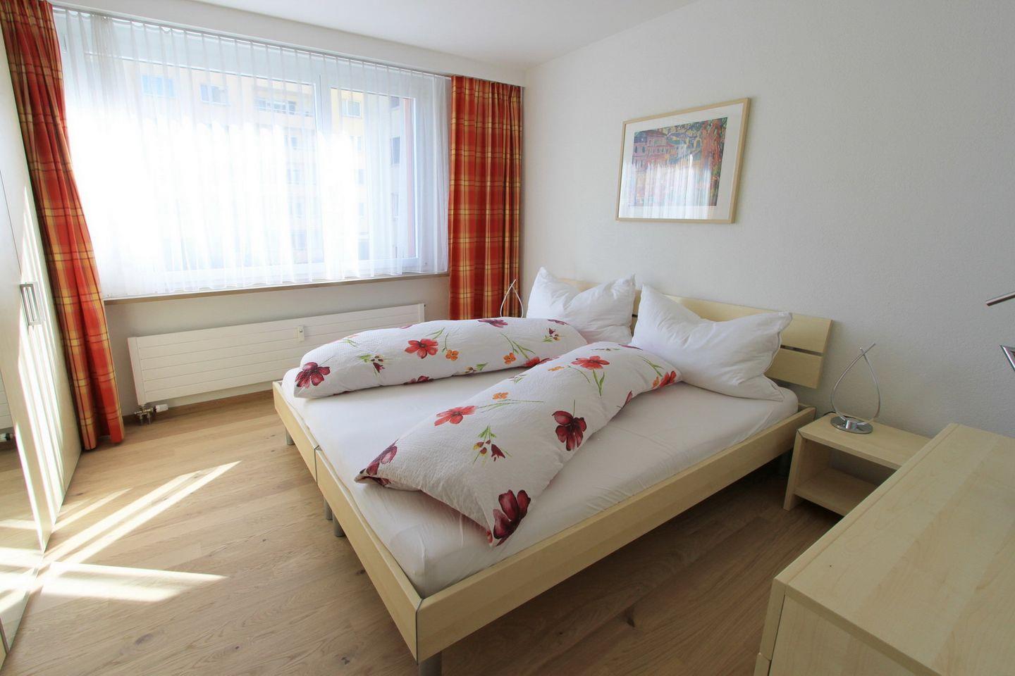 Die Wohnung besticht durch ihren hochwertigen Parkettboden sowie die moderne Küche und das stilvolle Badezimmer. Das Mehrfamilienhaus verfügt über einen Lift und ein gemeinschaftliches Hallenbad (geschlossen im Mai und November).