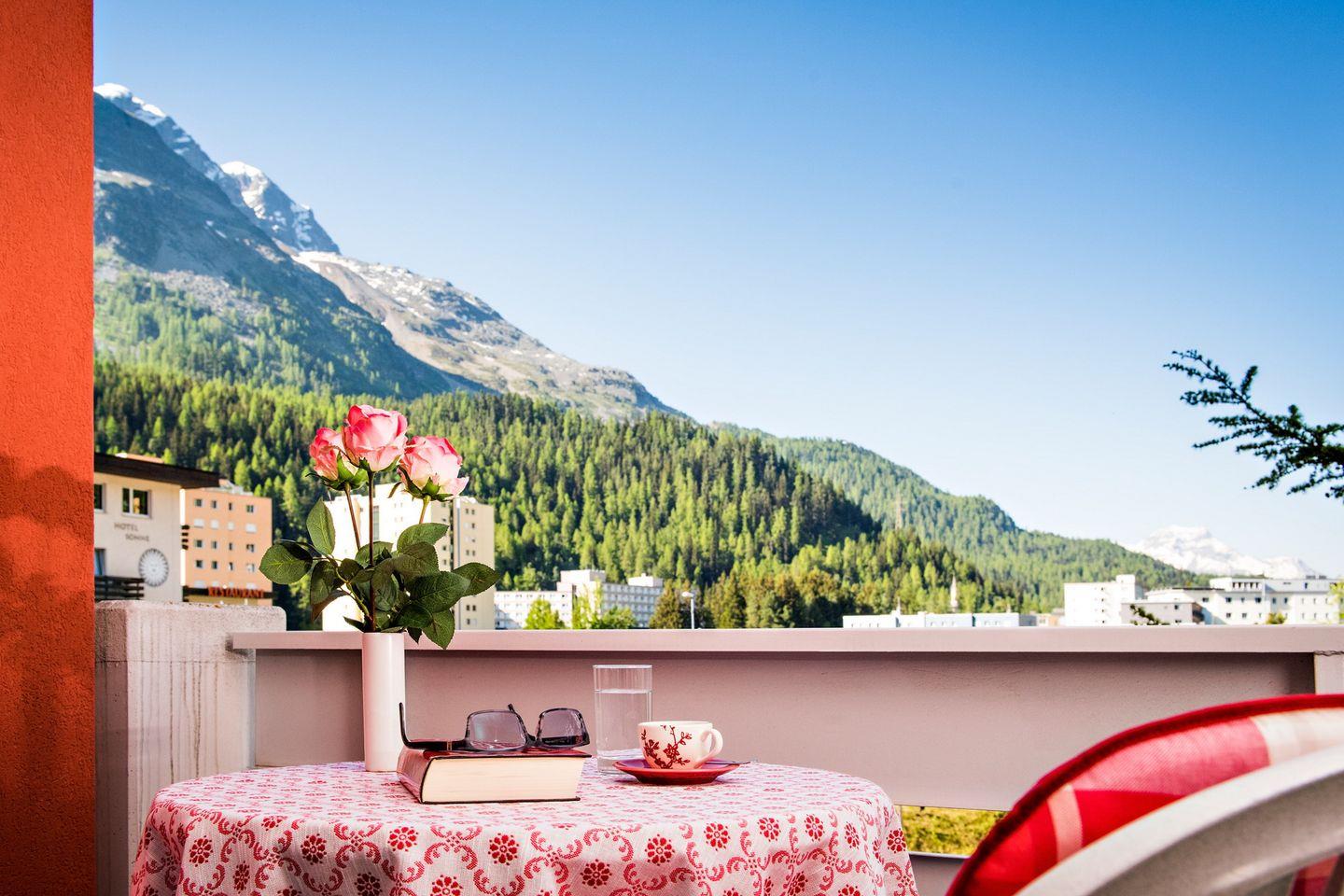 Das Skyline House liegt direkt neben dem St. Moritzersee an zentraler Lage in St. Moritz Bad. Bushaltestellen, Restaurants und Einkaufsmöglichkeiten sind in wenigen Gehminuten erreichbar.