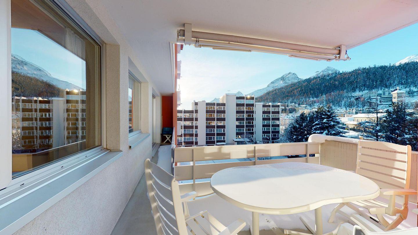 3.5 Zimmer-Wohnung mit Balkon und schönem Blick auf den St. Moritzersee, St. Moritz Dorf sowie auf das Skigebiet Corviglia.