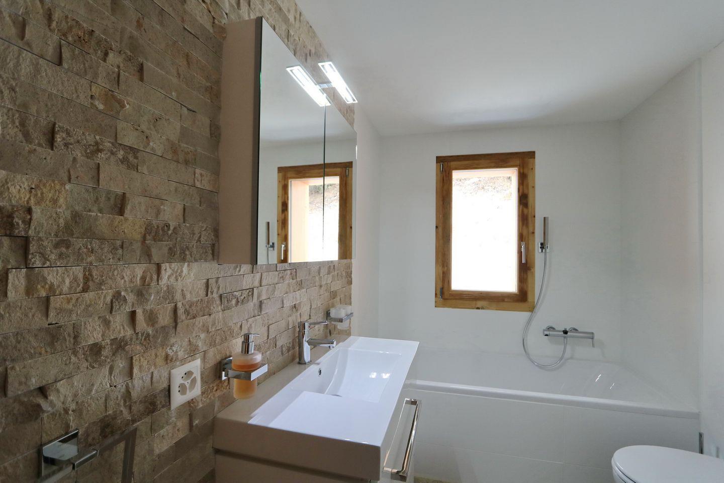 Das Schlafzimmer verfügt über ein komfortables Doppelbett, während das geräumige Badezimmer mit Badewanne und separater Dusche für Entspannung sorgt. Die voll ausgestattete, moderne Küche lädt zum Kochen ein, und das gemütliche Wohnzimmer mit Sofa, Kamin und Esstisch bietet ausreichend Platz zum Entspannen. Ein Balkon mit herrlichem Bergblick rundet das Angebot ab.