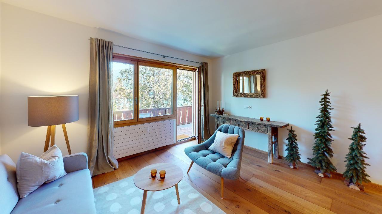 Die im rustikalen und modernen Alpenstil renovierte Wohnung befindet sich an einer zentralen Lage in St. Moritz mit wunderschöner Aussicht.
