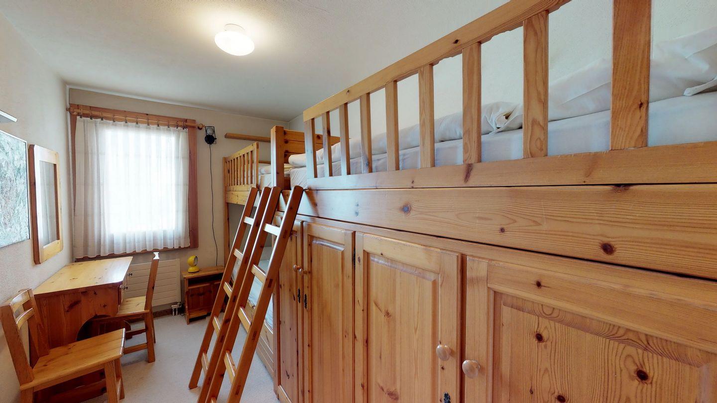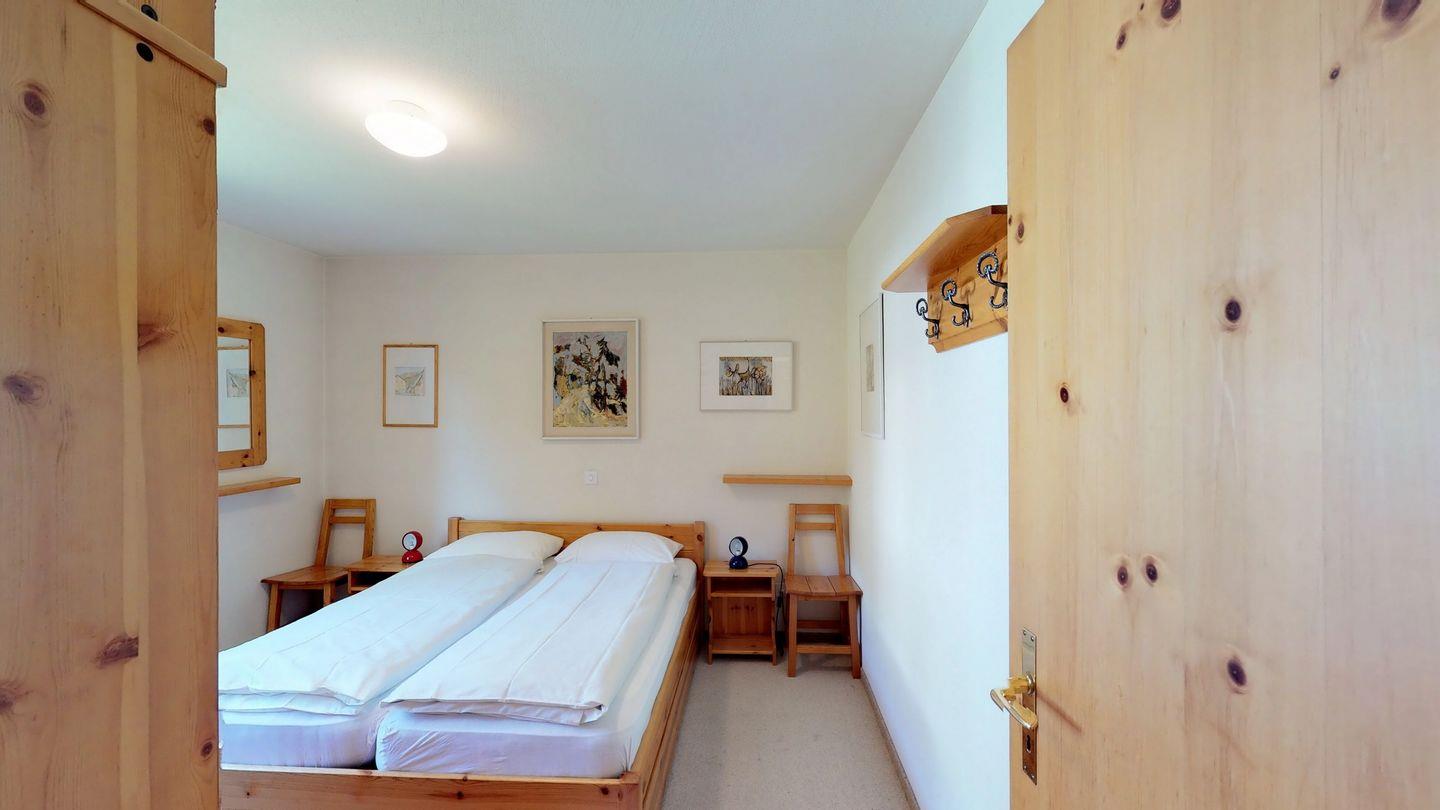 Die attraktive Wohnung hat ein gemütliches Wohnzimmer mit Sofa- und Fernsehecke sowie ein Esstisch. Vom Wohnzimmer gelangen Sie auf den Balkon mit schöner Aussicht sowie Nachmittags- und Abendsonne. Neben dem Wohnzimmer befindet sich die komplett ausgestattete Küche. Ein Schlafzimmer verfügt über ein Doppelbett. Ein weiteres Schlafzimmer hat 3 Etagenbetten. Direkt daneben befinden sich zwei Badezimmer, eines mit Badewanne und eines mit Dusche. Skiraum und Waschküche zur gemeinsamen Nutzung gehören ebenso dazu. Ein Garagenparkplatz kann kostenpflichtig dazu gebucht werden.