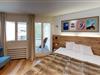 Die Ferienwohnung zeichnet sich durch eine gelungene Mischung von modernen Materialien und Geräten sowie alpinem Stil aus. Das Wohnzimmer verfügt über eine offene und komplett ausgestattete Küche sowie einem Sofa- und TV-Bereich. Von dort hat man direkten Zugang zum Balkon mit Aussicht. Das Master-Schlafzimmer ist mit einem Doppelbett und einem En-Suite Badezimmer mit Dusche ausgestattet. Ein weiteres Schlafzimmer mit Doppelbett sowie ein Kinderzimmer mit Etagenbetten (2 Betten) teilen sich ein Badezimmer mit einer Badewanne. Weiter hat es ein Gäste-WC. Das Master-Schlafzimmer sowie das weitere Doppelschlafzimmer haben jeweils einen Balkon. Ein reservierter Garagenparkplatz steht zur Verfügung. Ebenso gibt es eine Gemeinschaftswaschküche.