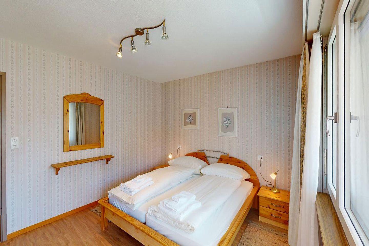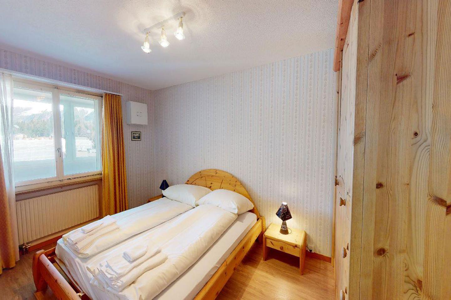 Die Wohnung verfügt über ein grosszügiges Wohnzimmer mit Sitzecke, Fernseher, Internet sowie Esstisch. Die Küche ist komplett ausgestattet. Es gibt zwei Schlafzimmer mit jeweils einem Doppelbett und Schrank. Das Badezimmer hat eine Badewanne. Zudem steht ein weiteres Gäste-WC zur Verfügung. Vom Wohnzimmer sowie von einem Schlafzimmer gelangt man auf den gemütlichen Wintergarten. Trotz dem "Stadt-Feeling" in St. Moritz-Bad, bietet die Wohnung aufgrund der Lage im 7. Stock eine schöne Aussicht auf die Engadiner Bergwelt.
