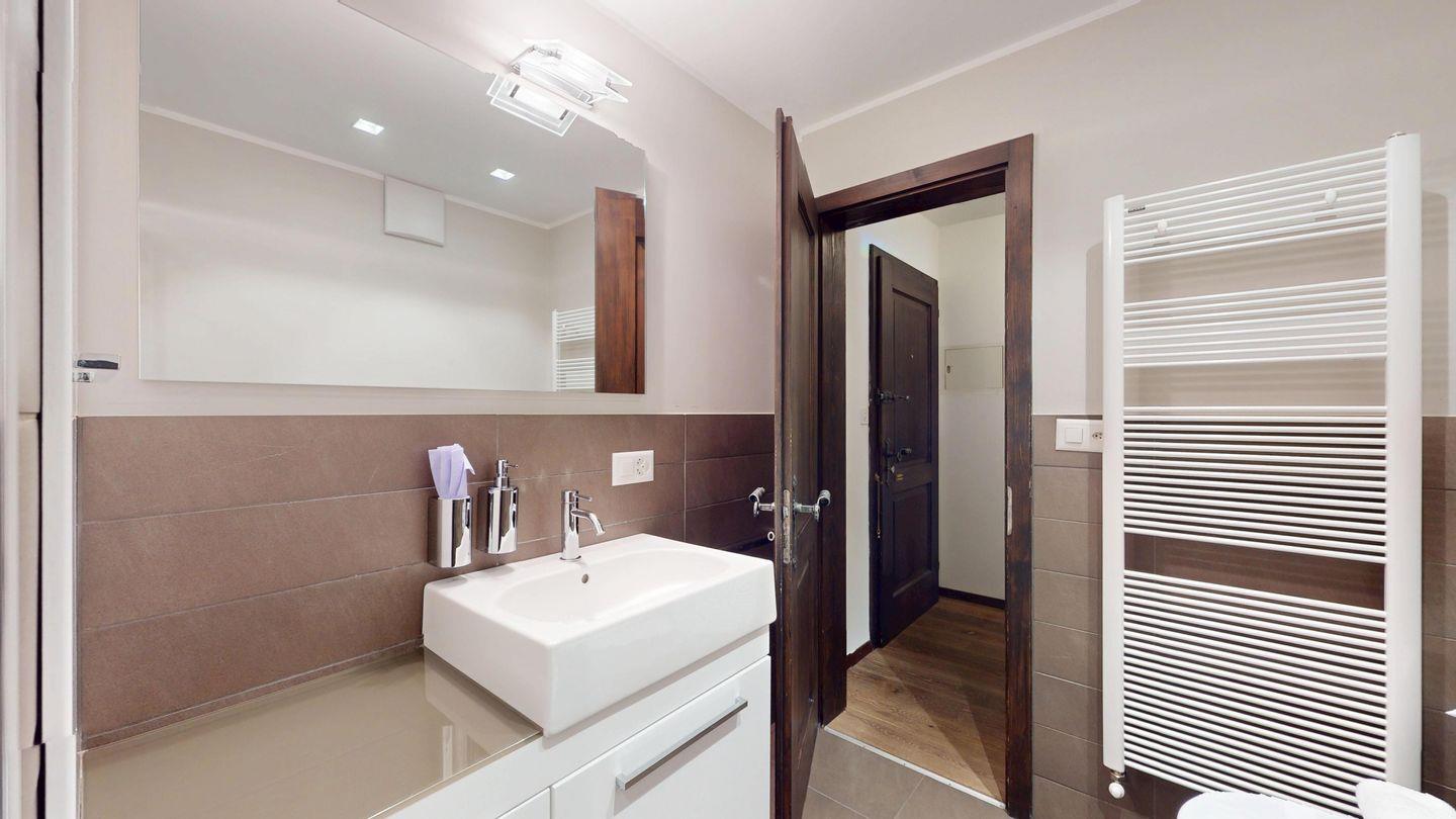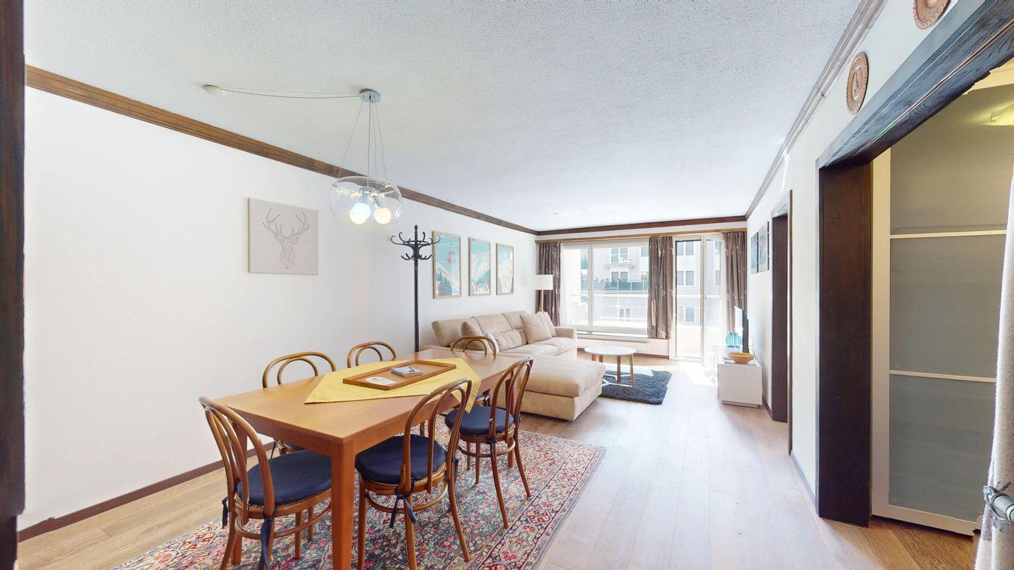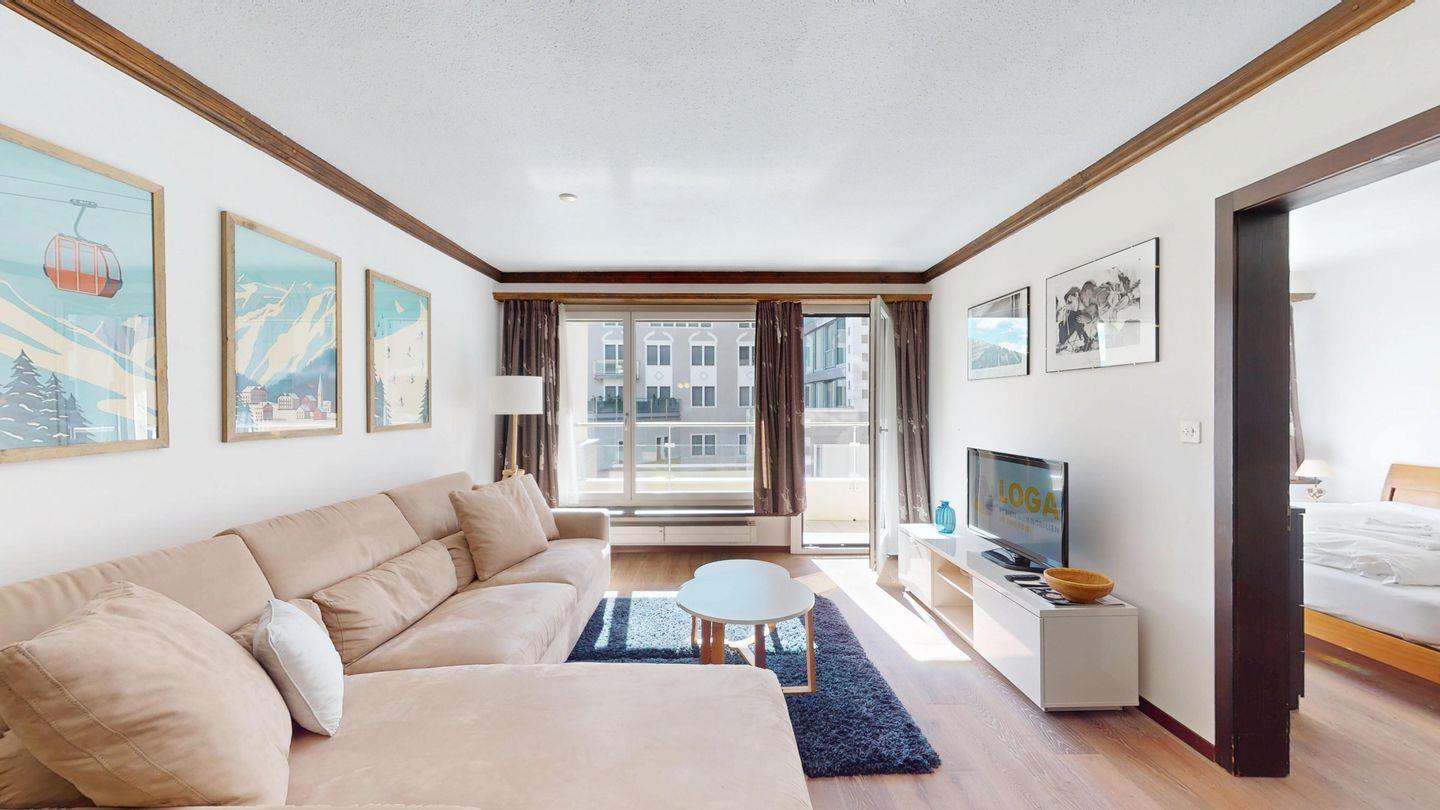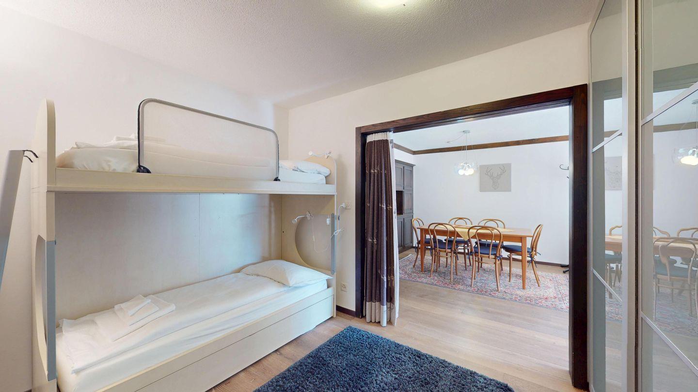 2 ½ Zimmerwohnung, ca. 68m2, im 1. Stock. Wohnzimmer mit TV, Essecke und Balkon. Geschlossene Küche mit Backofen, Kühlschrank mit Gefrierfach und Geschirrspüler. Doppelzimmer mit Zugang zum Balkon. Badezimmer mit Dusche, WC, Bidet und Lavabo. Ein Schlafzimmer mit Etagenbett, vom Wohnzimmer mit einem Vorhang abtrennbar. Parkplatz in der Garage (Höhe max. 210cm, nicht für breite Wagen geeignet). Nichtraucherwohnung. Haustiere sind nicht erlaubt.