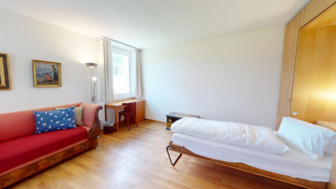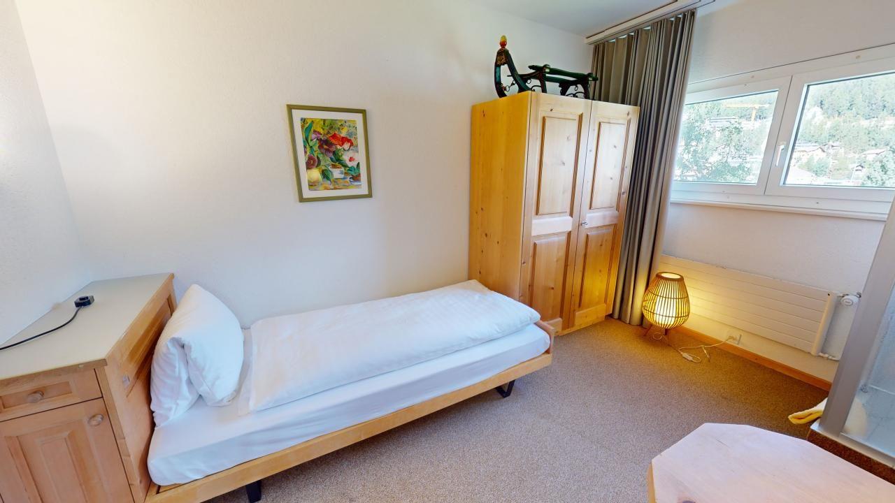 Zweckmässige 4.5 - Zimmer-Ferienwohnung im 3. Obergeschoss. Wohn- /Esszimmer mit Essecke sowie separatem Zimmer mit zwei Schrankbetten. Separate Toilette. Überdachter Balkon. Renovierte, geschlossene Küche. Bad mit Dusche/WC. Separates Doppelschlafzimmer mit Sicht auf St. Moritz. Einzelschlafzimmer mit eigener Dusche. Im Ferienhaus befindet sich ein Lift. Beschränkte Anzahl Aussenparkplätze (max. 1 Auto/Wohnung, nicht reserviert). Fitnessraum zur öffentlichen Nutzung befindet sich im Ferien-Wohnhaus.