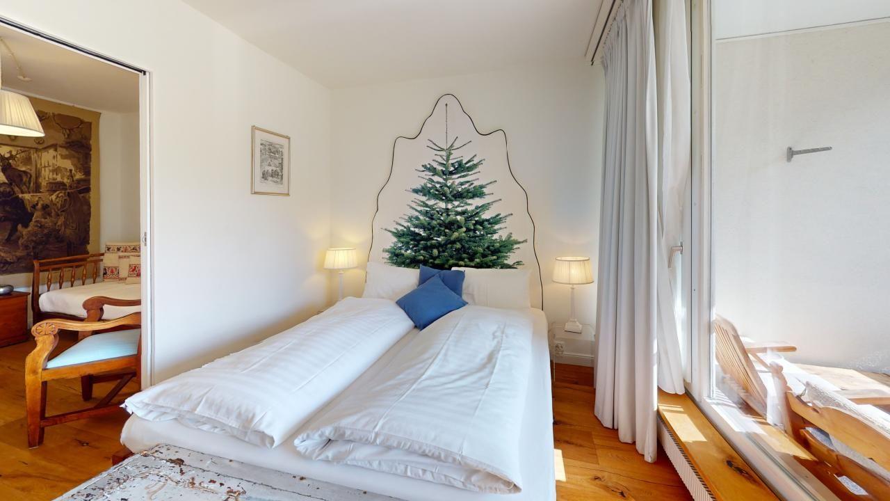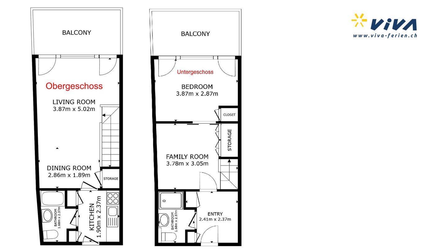 Praktische 2.5 - Zimmer-Duplexwohnung Ferienwohnung im 1. Obergeschoss/Hochparterre. Obergeschoss: Eingang mit Küche. Wohn- /Esszimmer. Sitzbad/Dusche/WC. Überdachter Balkon. Untergeschoss: Schlafzimmer mit Doppelbett und eigenem Balkon. Einzelschlafzimmer mit Badezimmer Dusche/WC sowie ein Sofabett im Zwischengang. Im Ferienhaus befindet sich ein Lift. Beschränkte Anzahl Aussenparkplätze (max. 1 Auto/Wohnung, nicht reserviert). Fitnessraum zur öffentlichen Nutzung befindet sich im Ferien-Wohnhaus.