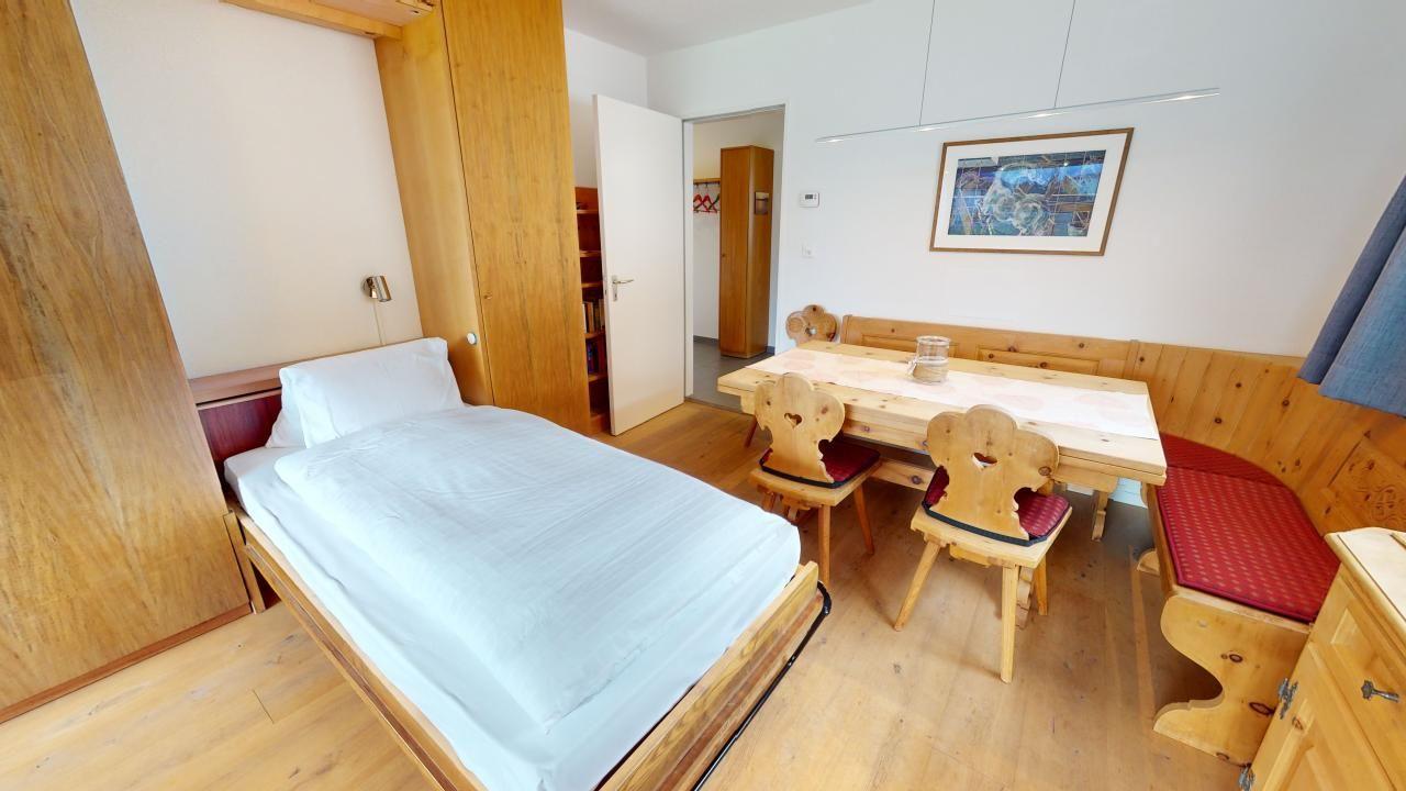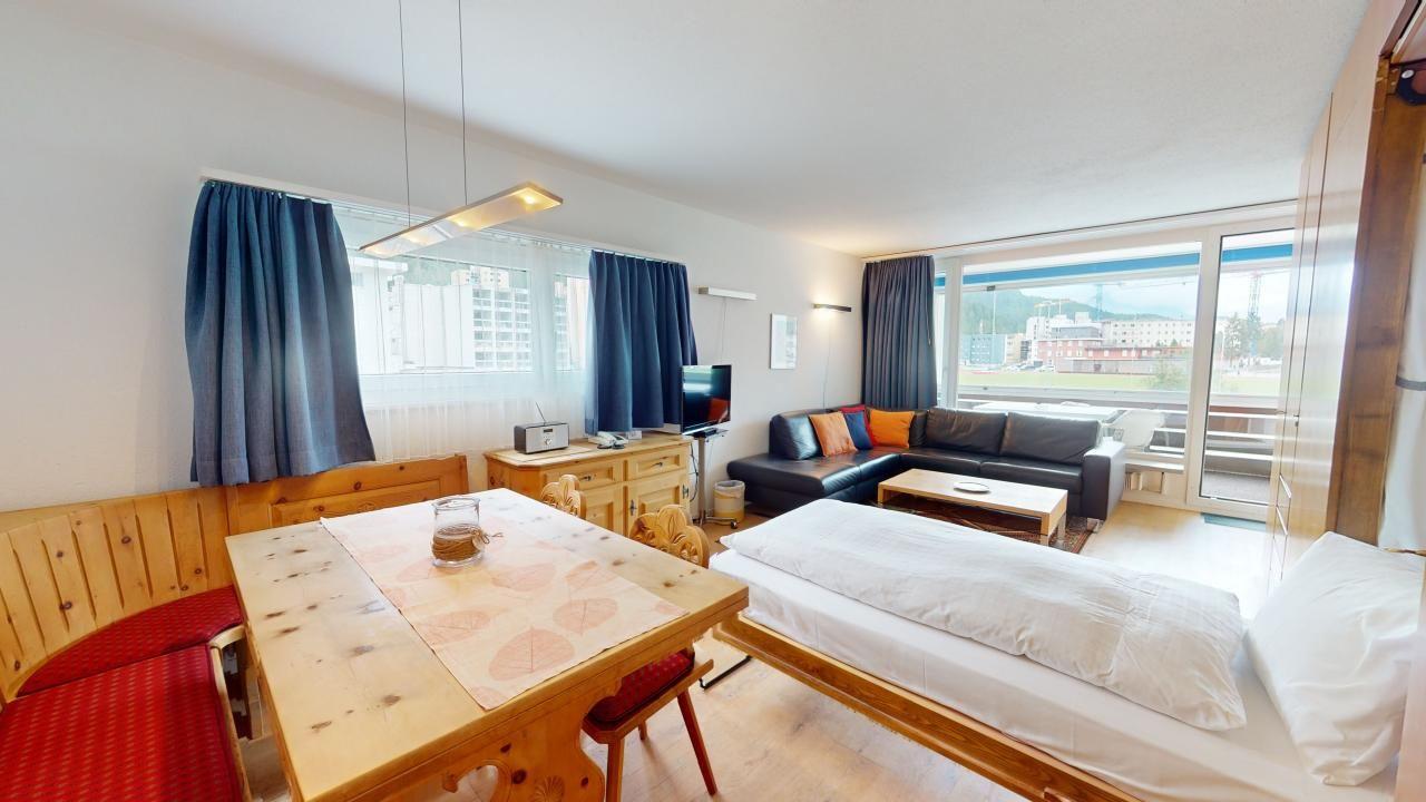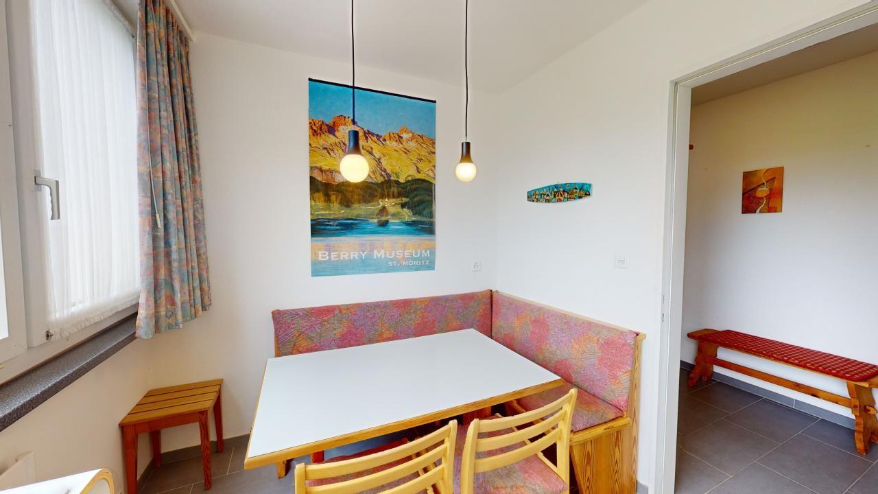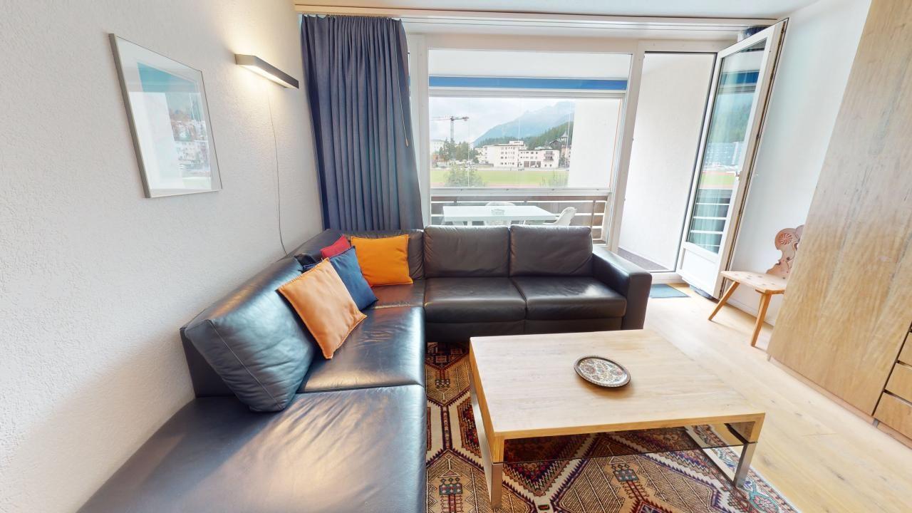 Entdecken Sie diese ansprechende und großzügige 2,5-Zimmer-Ferienwohnung im 1. Stock. Der Eingangsbereich mit Garderobe führt Sie in die separate Küche, die mit einem Esstisch und einem herrlichen Blick auf den St. Moritzersee ausgestattet ist. Das lichtdurchflutete Eckwohnzimmer bietet sowohl einen Wohn- als auch einen Essbereich mit zwei praktischen Klappbetten. Direkt anschliessend gedeckter Balkon mit Verglasung. Die Wohnung verfügt zudem über ein separates Schlafzimmer sowie ein modernes Badezimmer mit Dusche, Lavabo und WC. Ein Lift im Ferienhaus erleichtert den Zugang. Ein Lift im Ferienhaus erleichtert den Zugang, und Sie profitieren von einem Parkplatz in einer Garagenbox. Für aktive Gäste steht ein Fitnessraum zur öffentlichen Nutzung im Ferienhaus zur Verfügung.