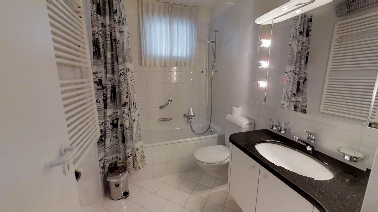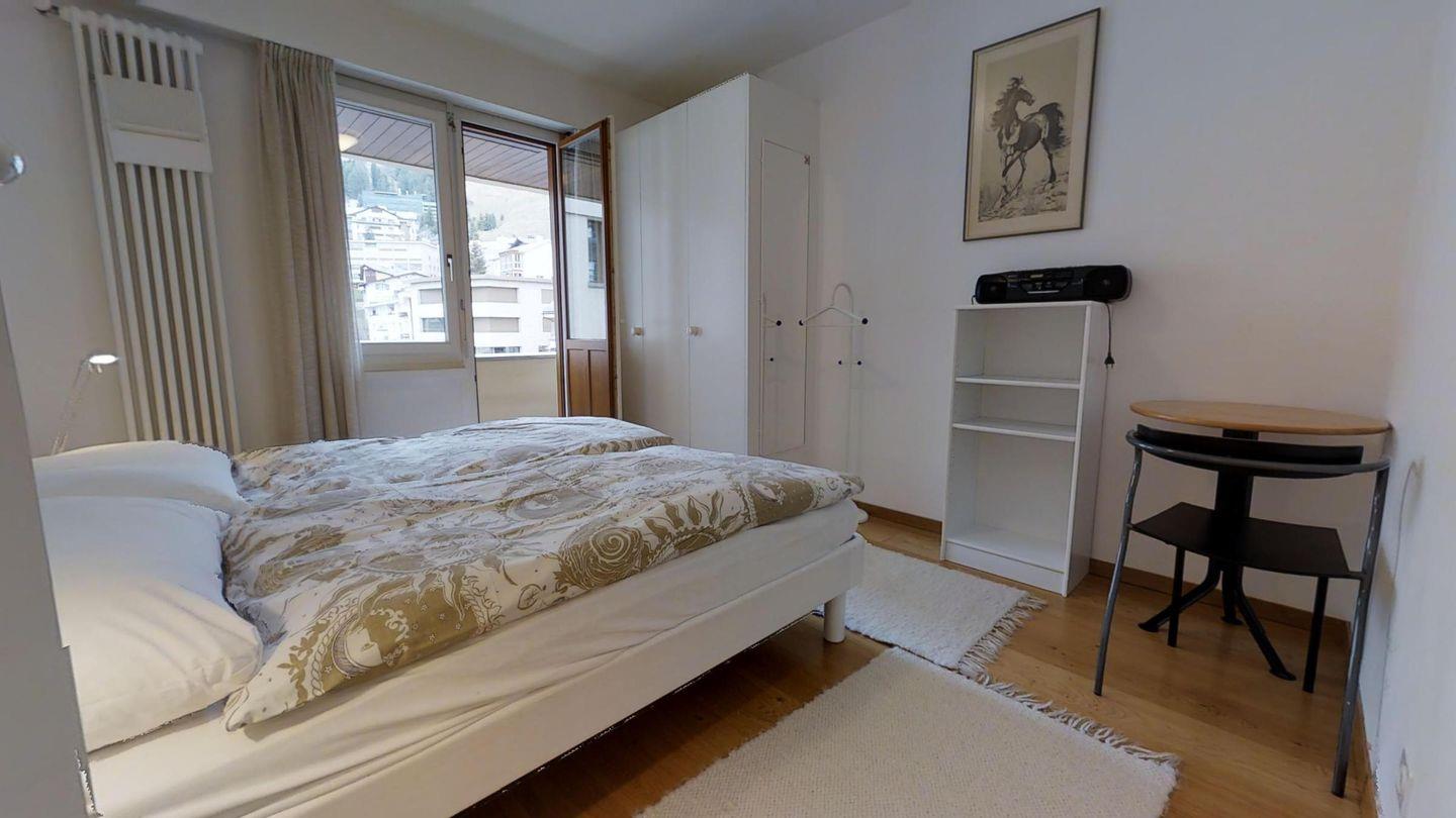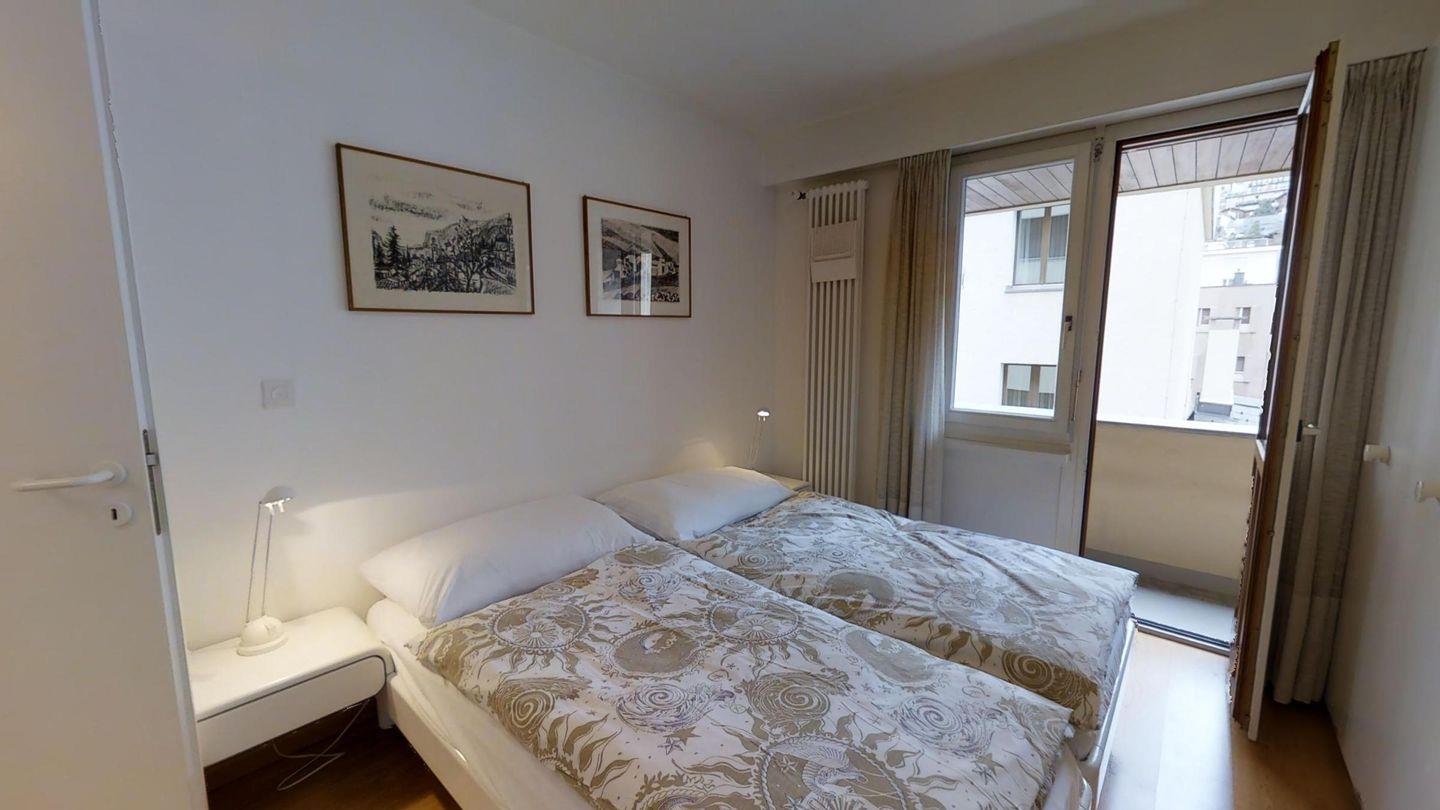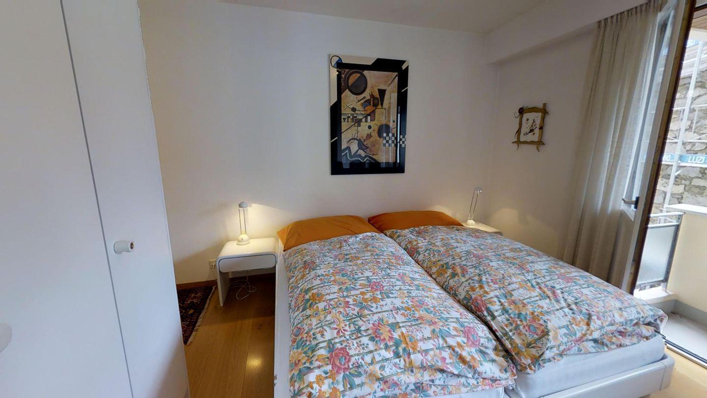 4-½-Zimmerwohnung im 3. Stock, ca. 105 m2. Grosszügiges Wohnzimmer, TV/DVD/Video/Tel./Internet, offene Küche mit Backofen, Nespresso Kaffeemaschine, Geschirrspüler, Kühlschrank mit gr. Tiefkühlfach, Essecken, Gäste-WC /Lavabo, 1 Doppelzimmer + Rundbalkon, Dusche/Bidet/Lavabo/WC, 1 2-Bettzimmer, 1 Doppelzimmer mit Rundbalkon, Bad/WC/Lavabo. Waschküche und Skiraum zur Mitbenützung. Garagenplatz im öffentlichen Parkhaus, ganz in der Nähe. Haustiere sind nicht erlaubt.