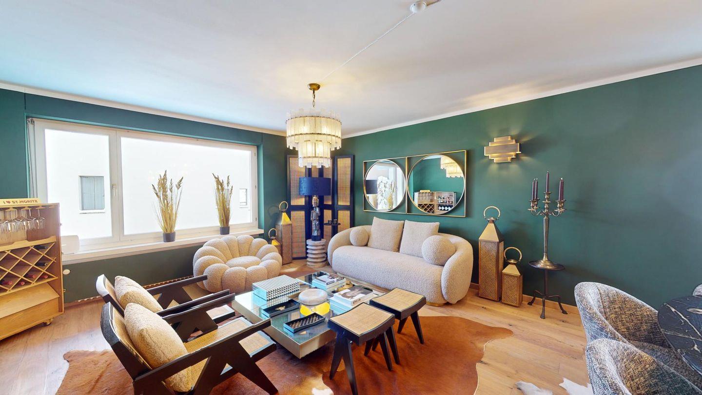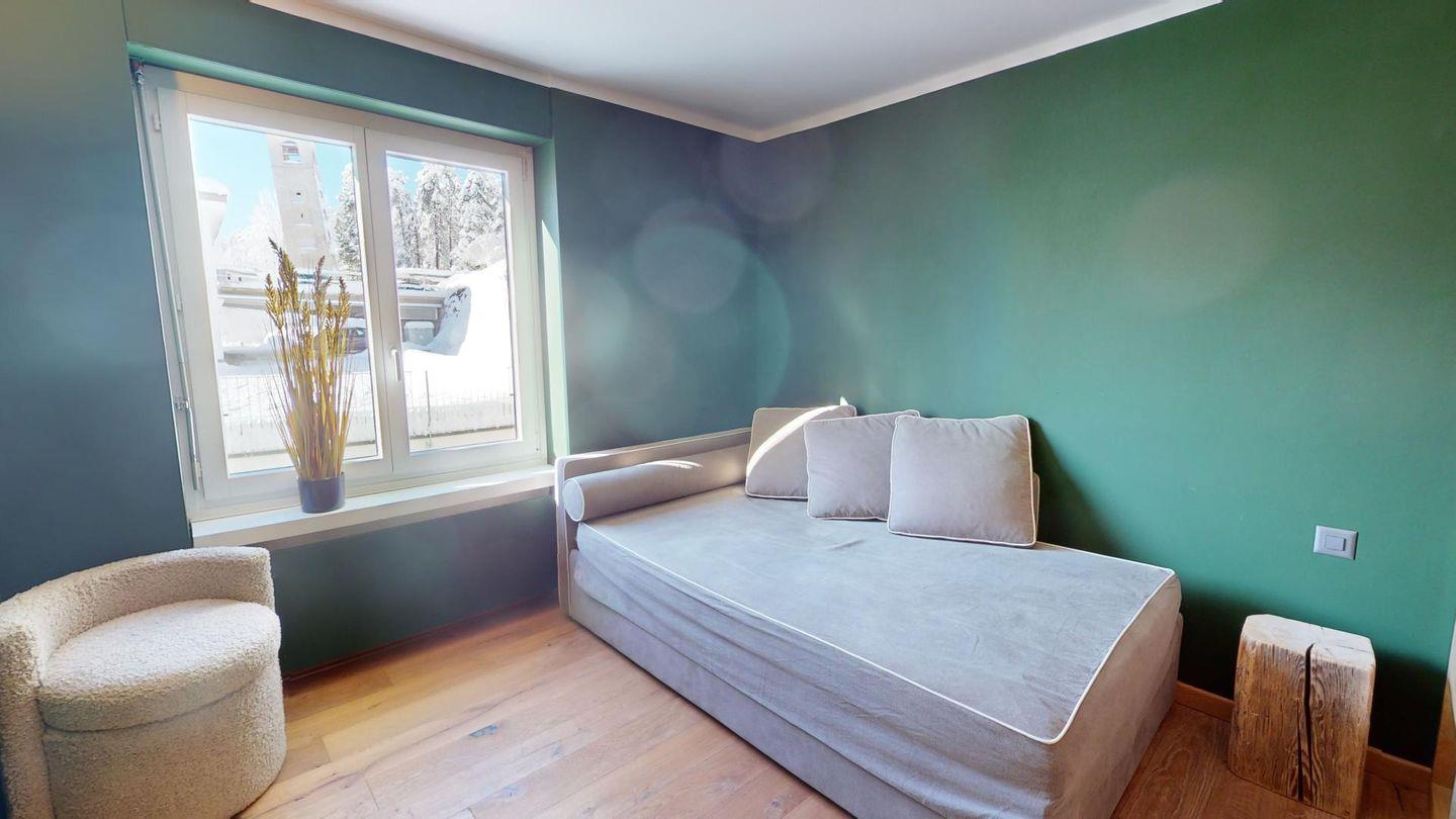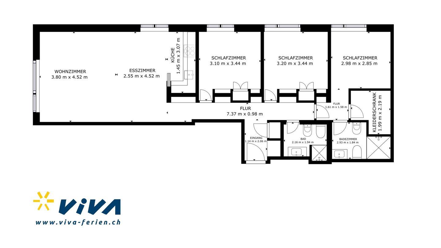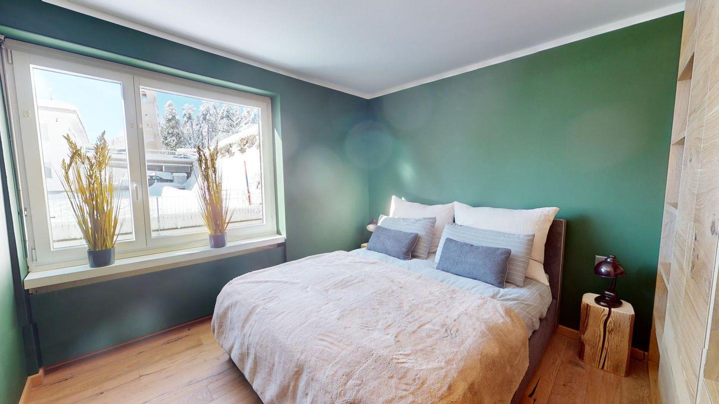Neu renovierte 4.5 Zimmer Ferienwohnung im 1. Stock. Stylisch eingerichteter Wohn-/Essbereich. Offene Küche zum Wohnraum. 1 Schlafzimmer mit Doppelbett, eigenem Bad (Dusche/ WC/Bidet) und begehbarem Schrank, 1 Schlafzimmer mit kleinem Doppelbett und TV, 1 Schlafzimmer mit Doppelbett, weiteres Badezimmer (Dusche/WC). Lift und Garagenplatz.