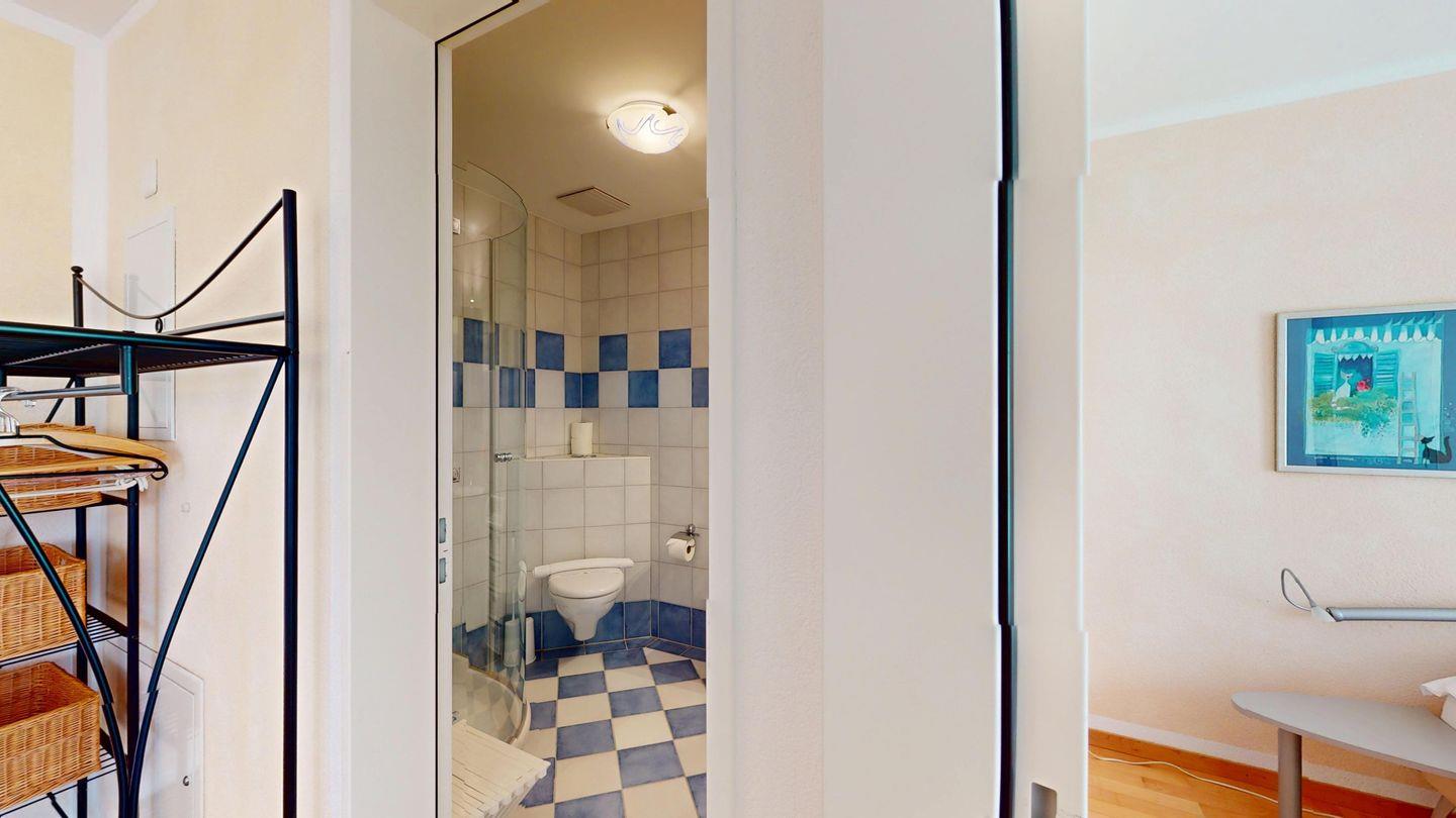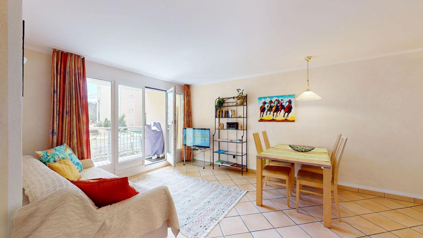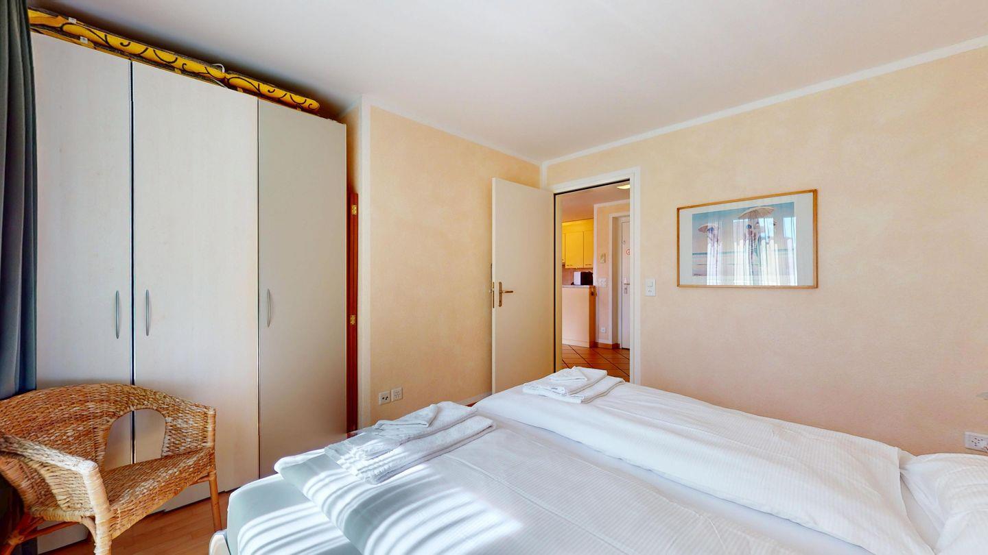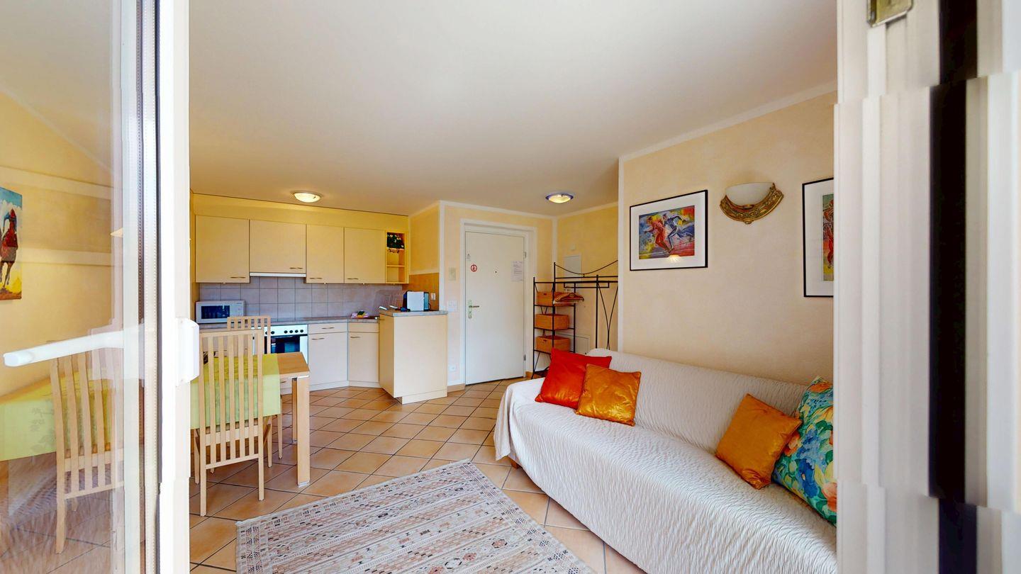 2½ -Zimmerwohnung auf der ersten Etage, mit Lift. Entree mit Garderobe. Wohn-/ Esszimmer mit Ausgang zum Balkon. Radio/TV und Internet. Offene Küche mit Herd, Backofen, Kühlschrank mit kleinem Gefrierfach, Kaffeemaschine. Doppelschlafzimmer mit grossen Fenstern. Badezimmer mit Dusche/WC/Lavabo. Ein Parkplatz in der Garage. Waschküche zur gemeinschaftlichen Benutzung. Ski- und Veloraum. Nichtraucherwohnung. Haustiere sind nicht erlaubt.