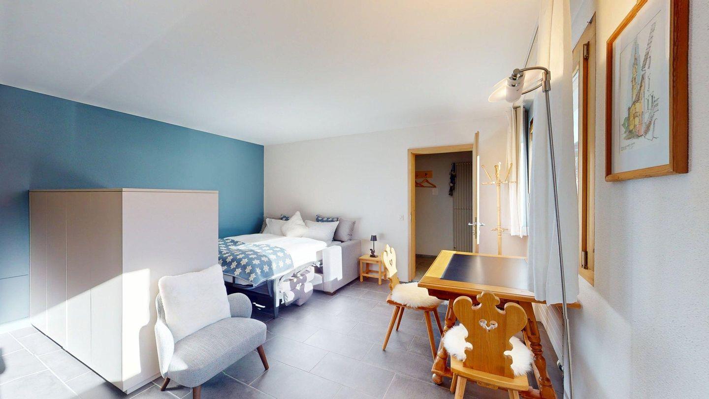 Die stilvolle Einliegerwohnung verfügt über ein hochwertiges Schlafsofa, eine separate Küche sowie ein eigenes Badezimmer – ideal für Gäste oder als zusätzlicher Rückzugsbereich. Zwei Tiefgaragenplätze ( Breite: 2.35 Meter, Höhe: 2.05 Meter) runden das Angebot ab und gewährleisten einen sorgenfreien Aufenthalt.