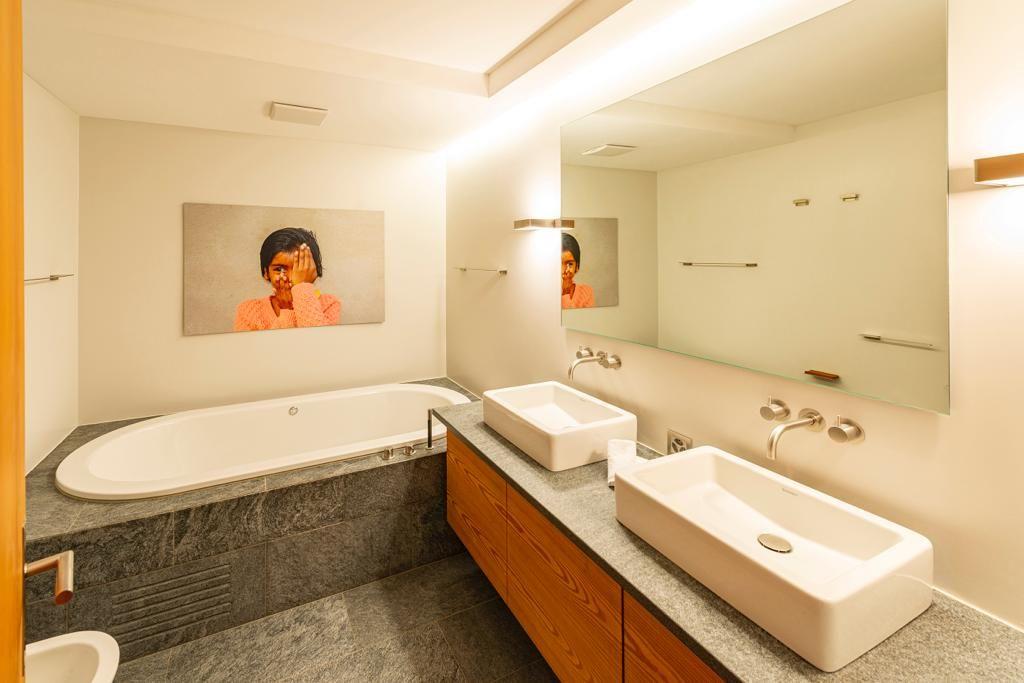 Der offen gestaltete Wohn- /Essbereich mit integrierter Küche ist lichtdurchflutet und lädt zum Verweilen ein. Das Hauptschlafzimmer überzeugt mit herrlicher Aussicht, einem eigenen Balkon sowie einem en-suite Badezimmer mit Dusche/WC. Ein zweites Schlafzimmer verfügt ebenfalls über einen eigenen Balkon und ein privates Bad mit Dusche/WC. Das dritte Schlafzimmer eignet sich ideal für Gäste, Kinder oder als Rückzugsort. Zur Wohnung gehören zwei Garagenplätze. Ein Lift sorgt für einen bequemen Zugang bis zur Wohnung. Als besonderes Highlight steht den Gästen ein grosszügiges hauseigenes Schwimmbad, eine Sauna sowie ein Fitnessraum zur Verfügung – perfekt für Erholung nach einem aktiven Tag in den Bergen.