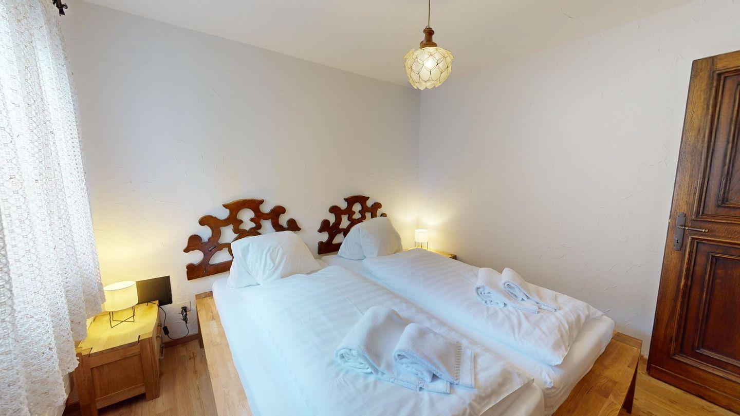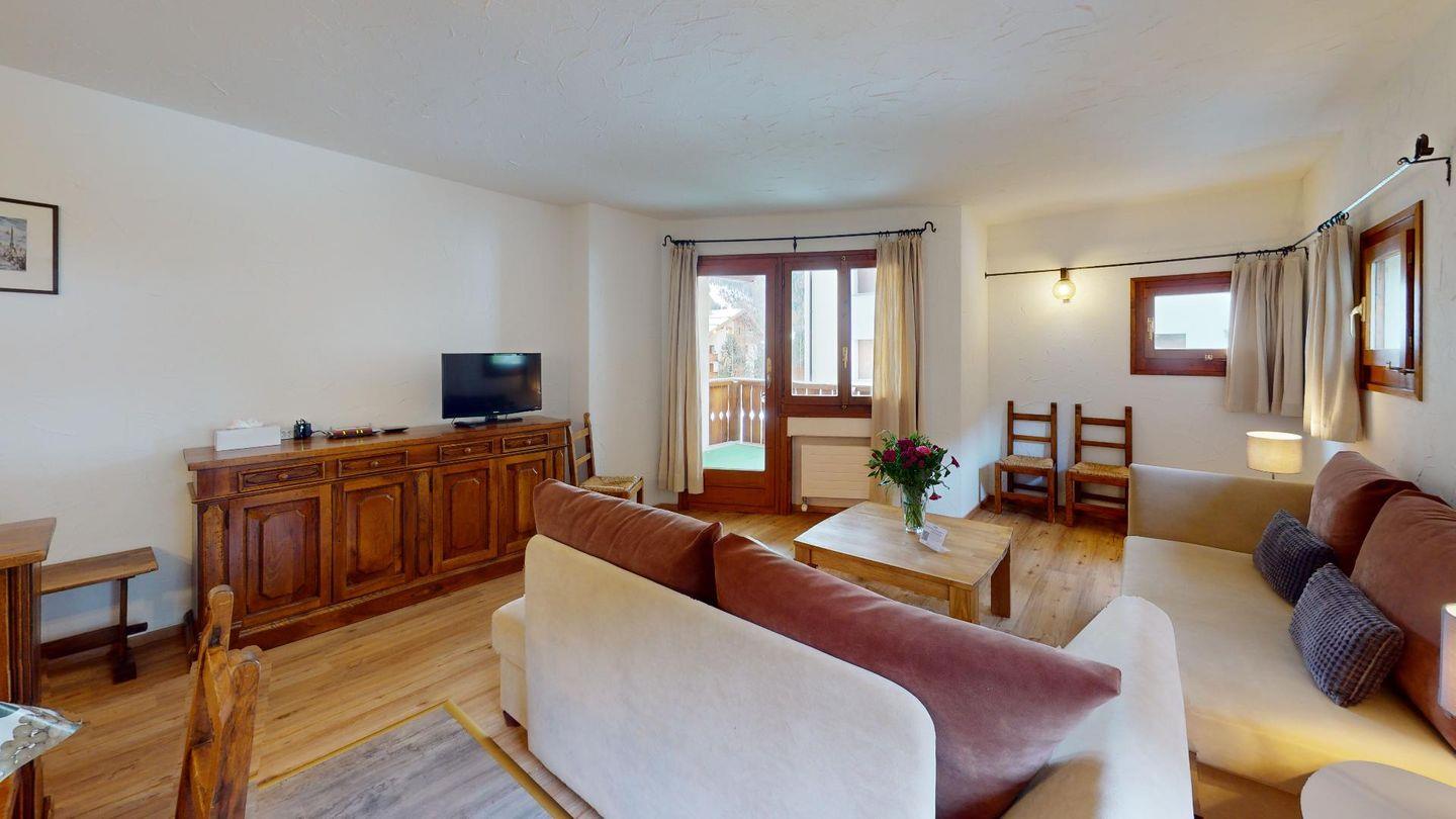 Sympatische, grosszügige 2- Zimmer Ferienwohnung im 2. Stock eines authentischen Engadinerhauses. Wohn- /Esszimmer mit Sofabett, Balkon. Offene Küche. Doppelschlafzimmer, Bad/Dusche. Lift. Garage.