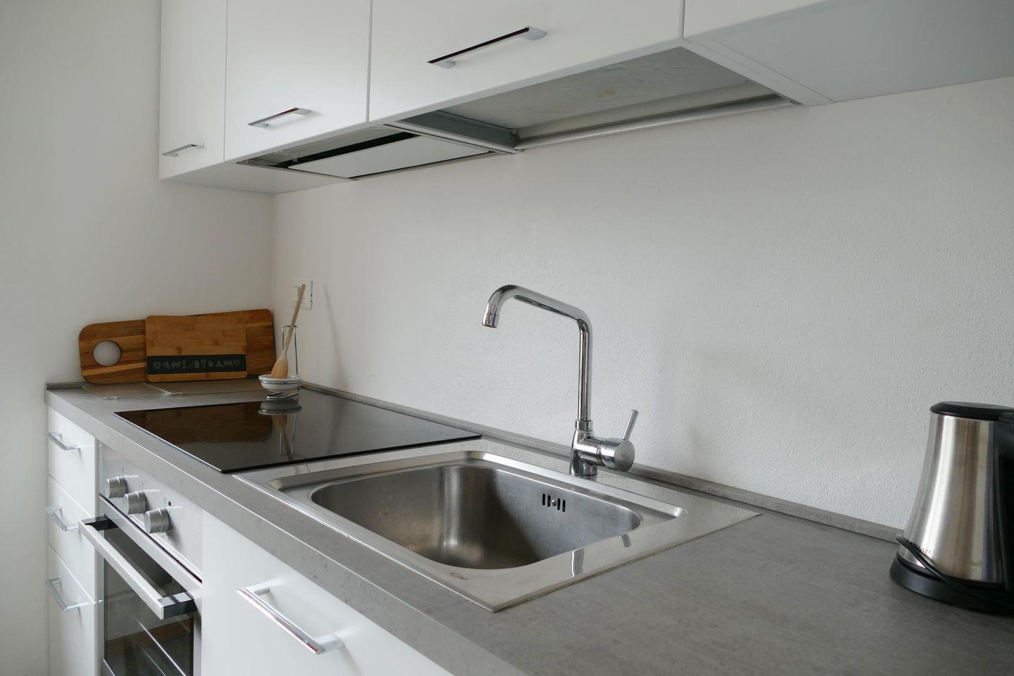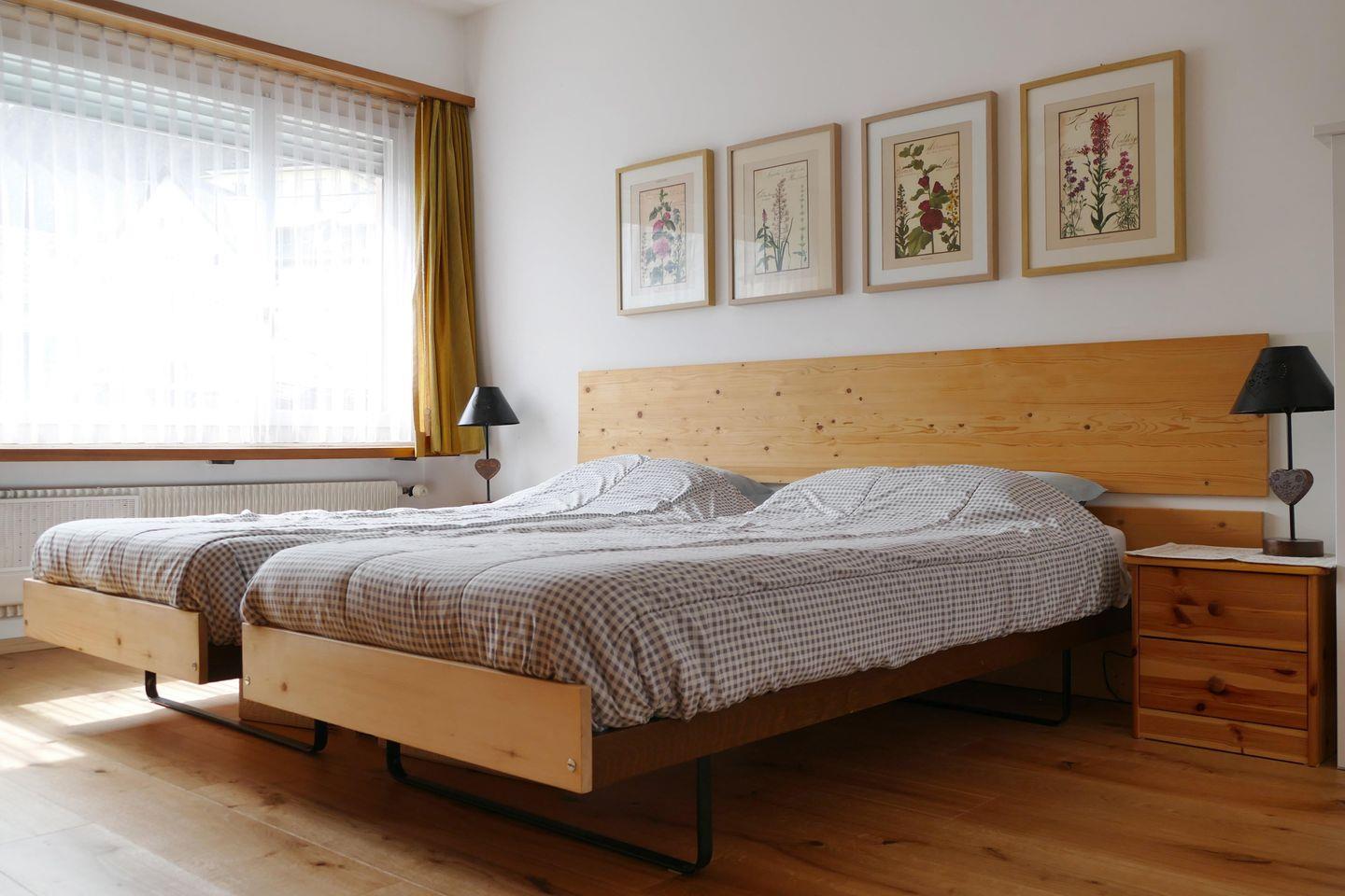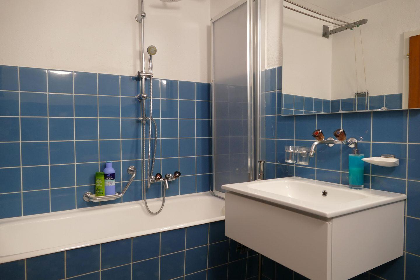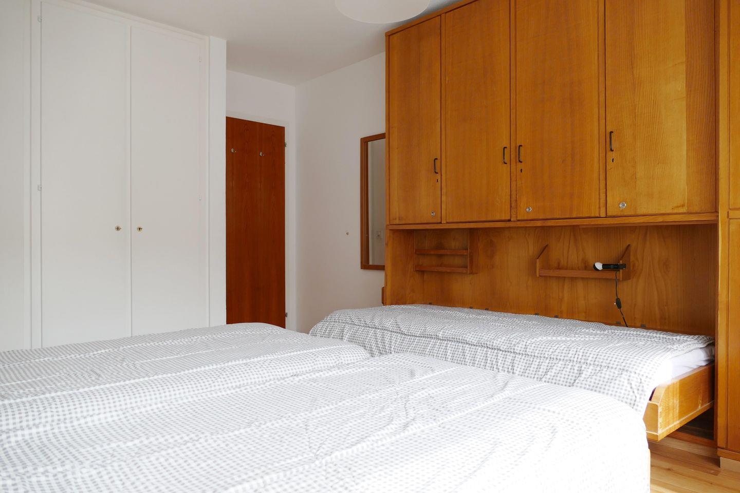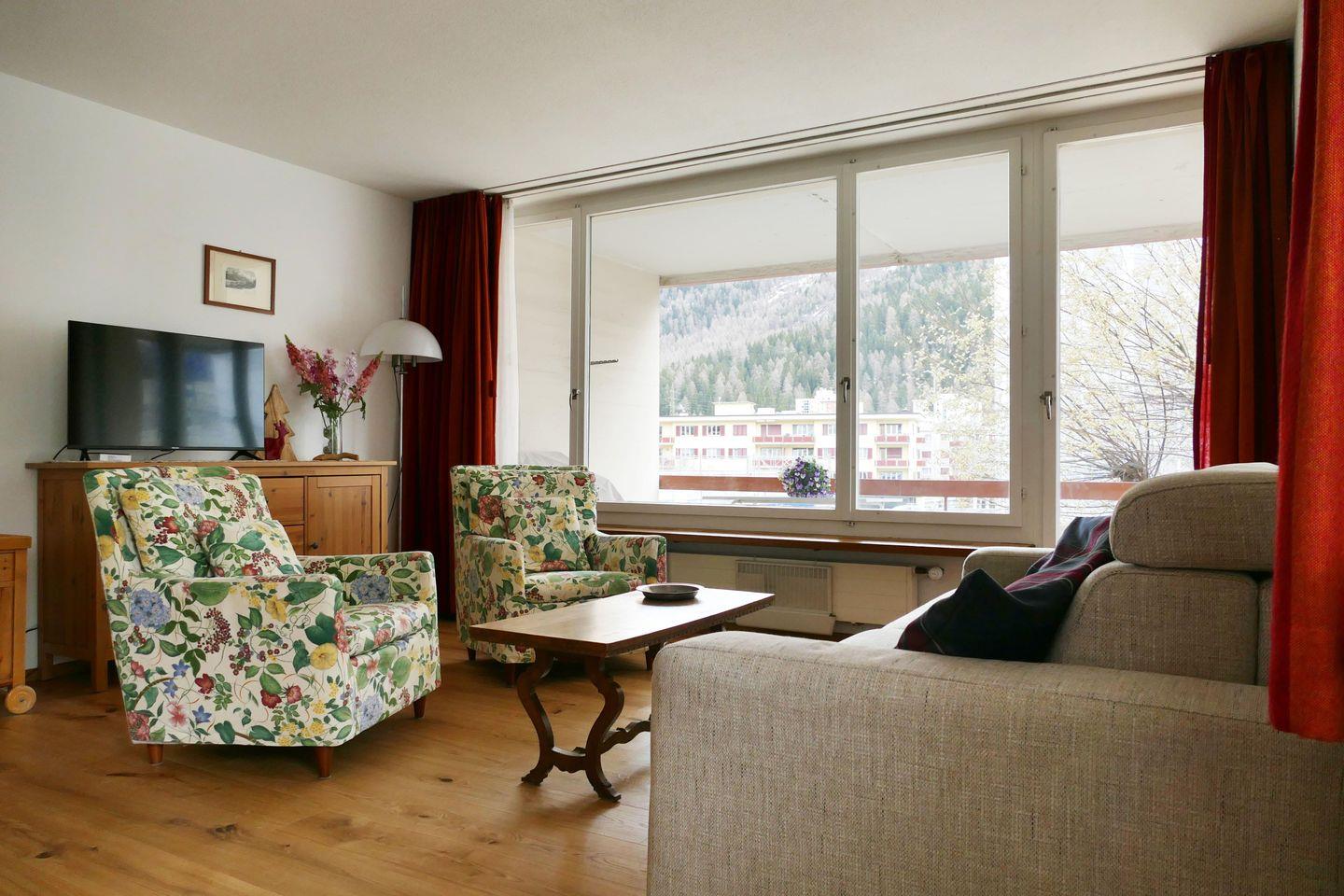 Zweckmässige 2-Zimmer Ferienwohnung im 1. Stock. Ca. 54 m2. Wohn-/ Esszimmer mit Sofabett. Doppelschlafzimmer. Balkon Süd. Separate Küche mit Geschirrspüler, Bad/Dusche, WC. Lift.